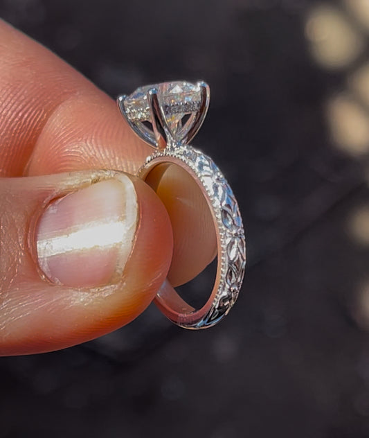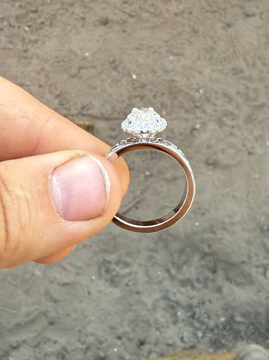 Tines Ranch Co Engagement Rings set in S925 Sterling Silver with D Colorless GRA Certified Lab Created Moissanite Stones. Exclusively by Tines Ranch Co. Sterling Silver is a Softer Metal than Solid Gold. Sterling will need to be Replated over time.