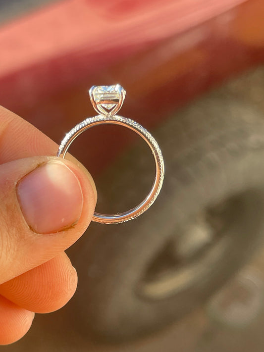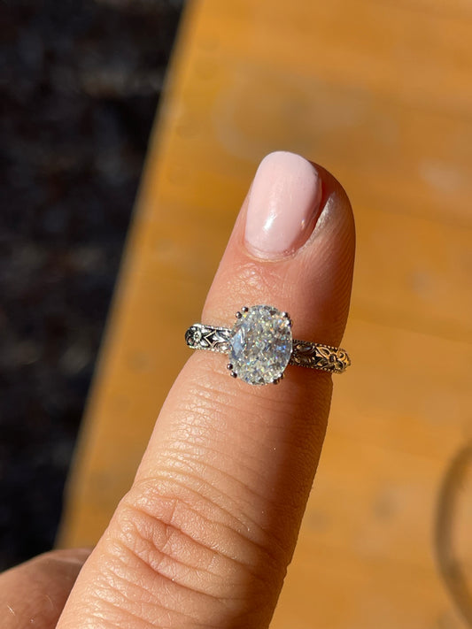 Tines Ranch Co Engagement Rings set in S925 Sterling Silver with D Colorless GRA Certified Lab Created Moissanite Stones. Exclusively by Tines Ranch Co. Sterling Silver is a Softer Metal than Solid Gold. Sterling will need to be Replated over time.