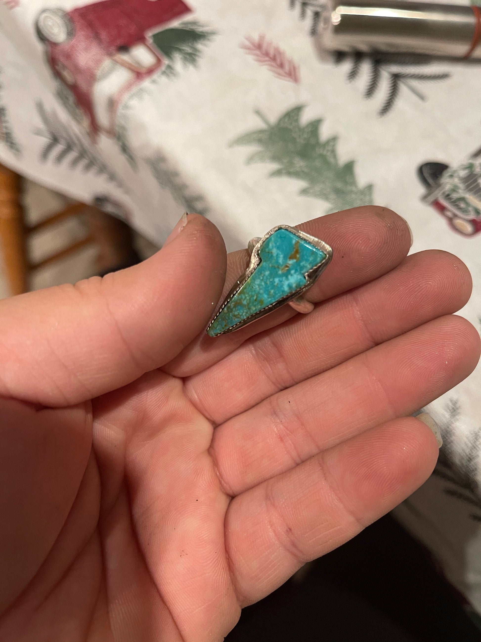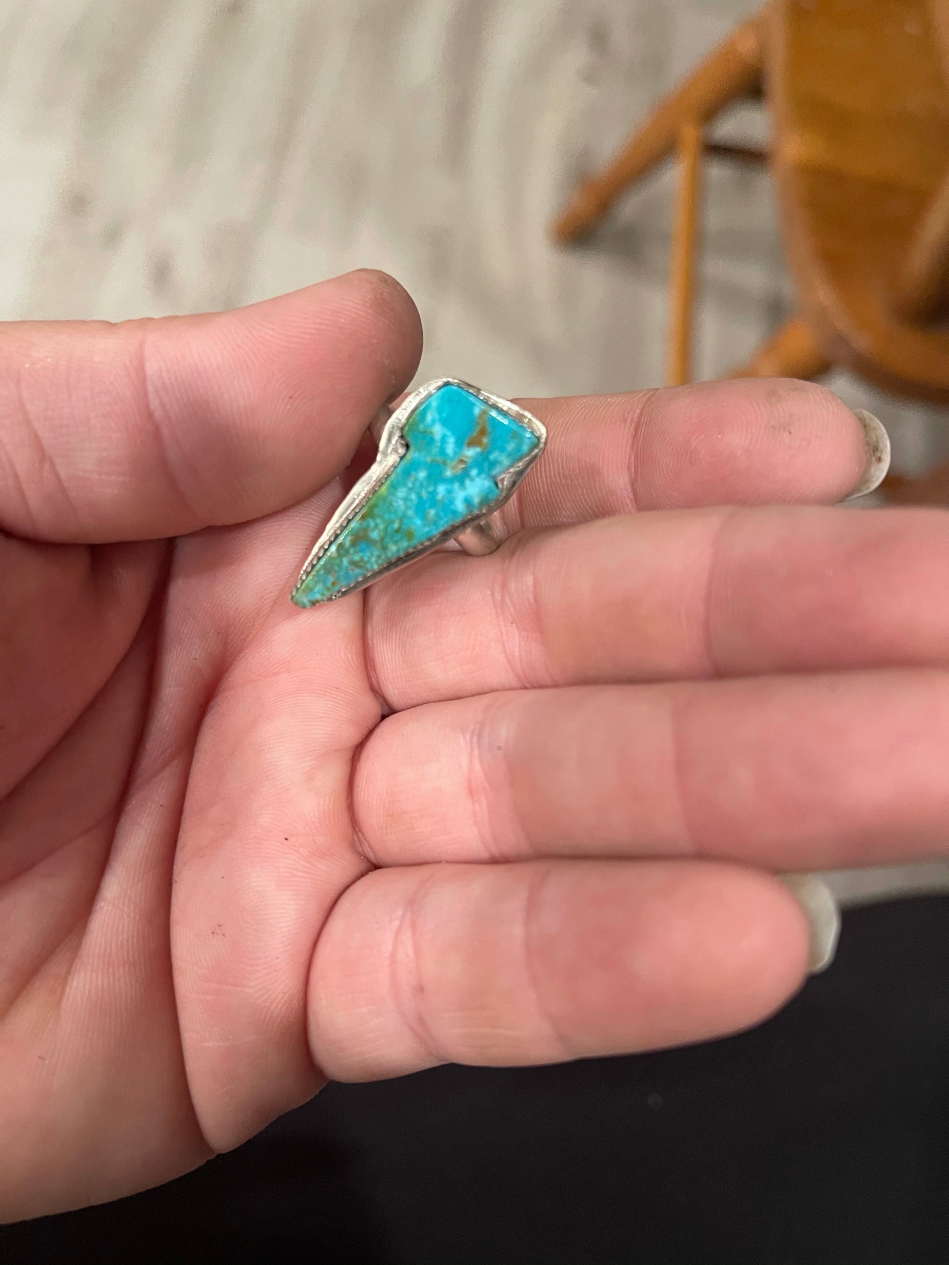 7.5US Granger Thunderbolt Kingsman Turquoise Sterling Silver Double Band Ring