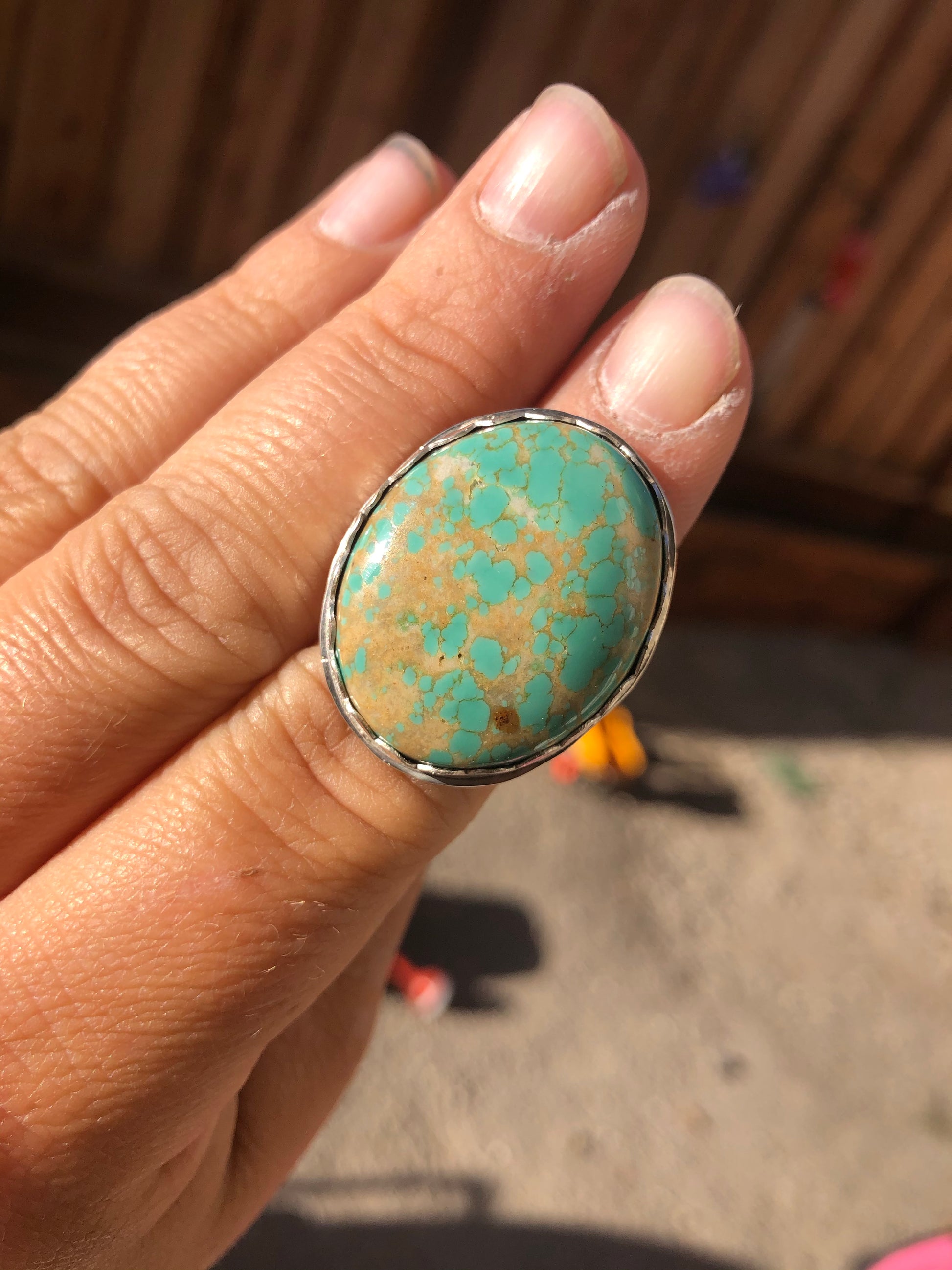 7US Dottie Royston Turquoise w/ Rainy Band Turquoise Sterling Silver Ring