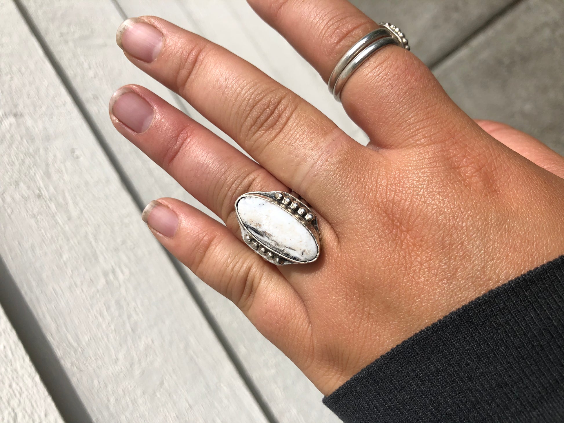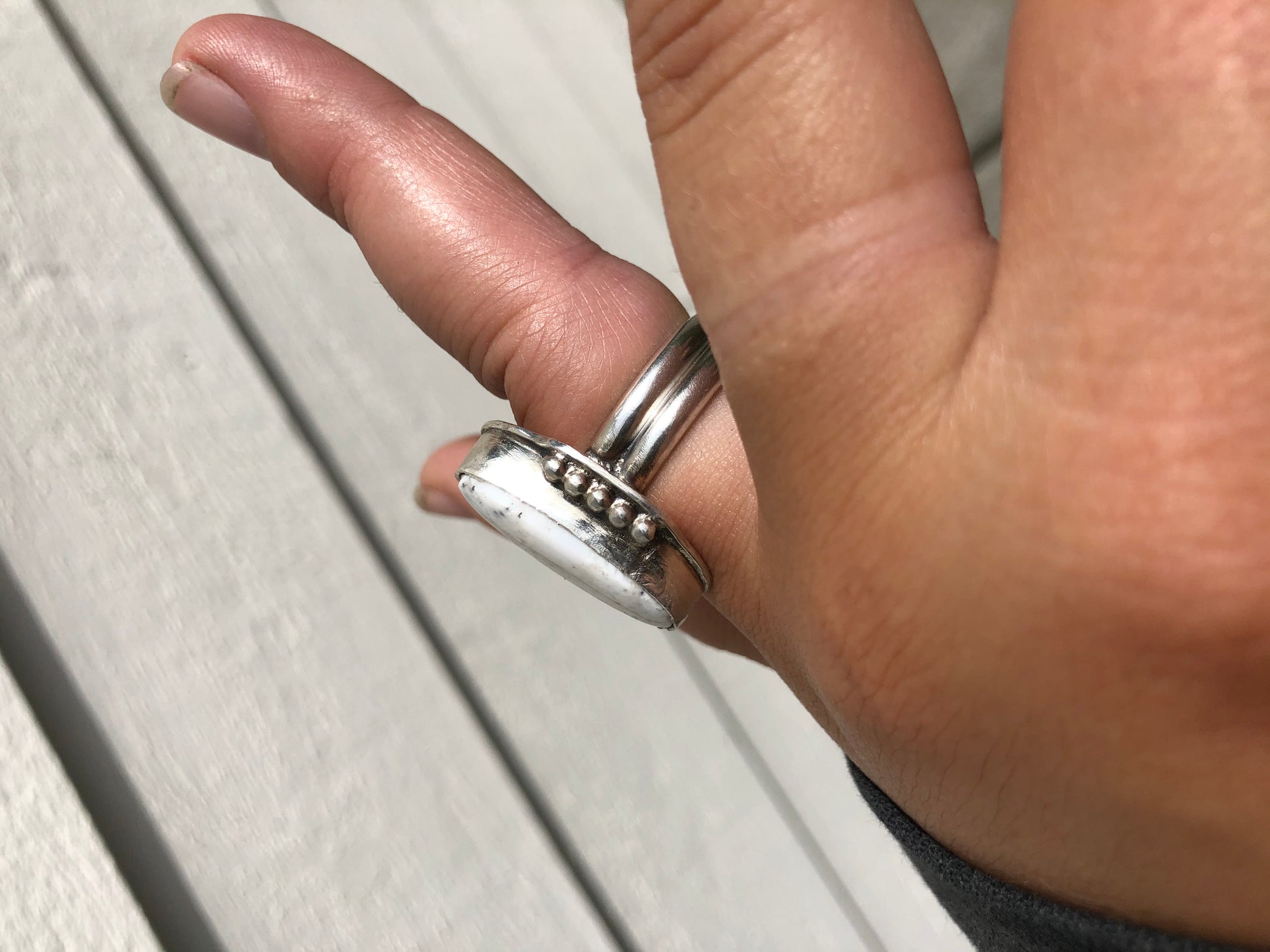8US Kassie White Buffalo Turquoise Sterling Silver Ring