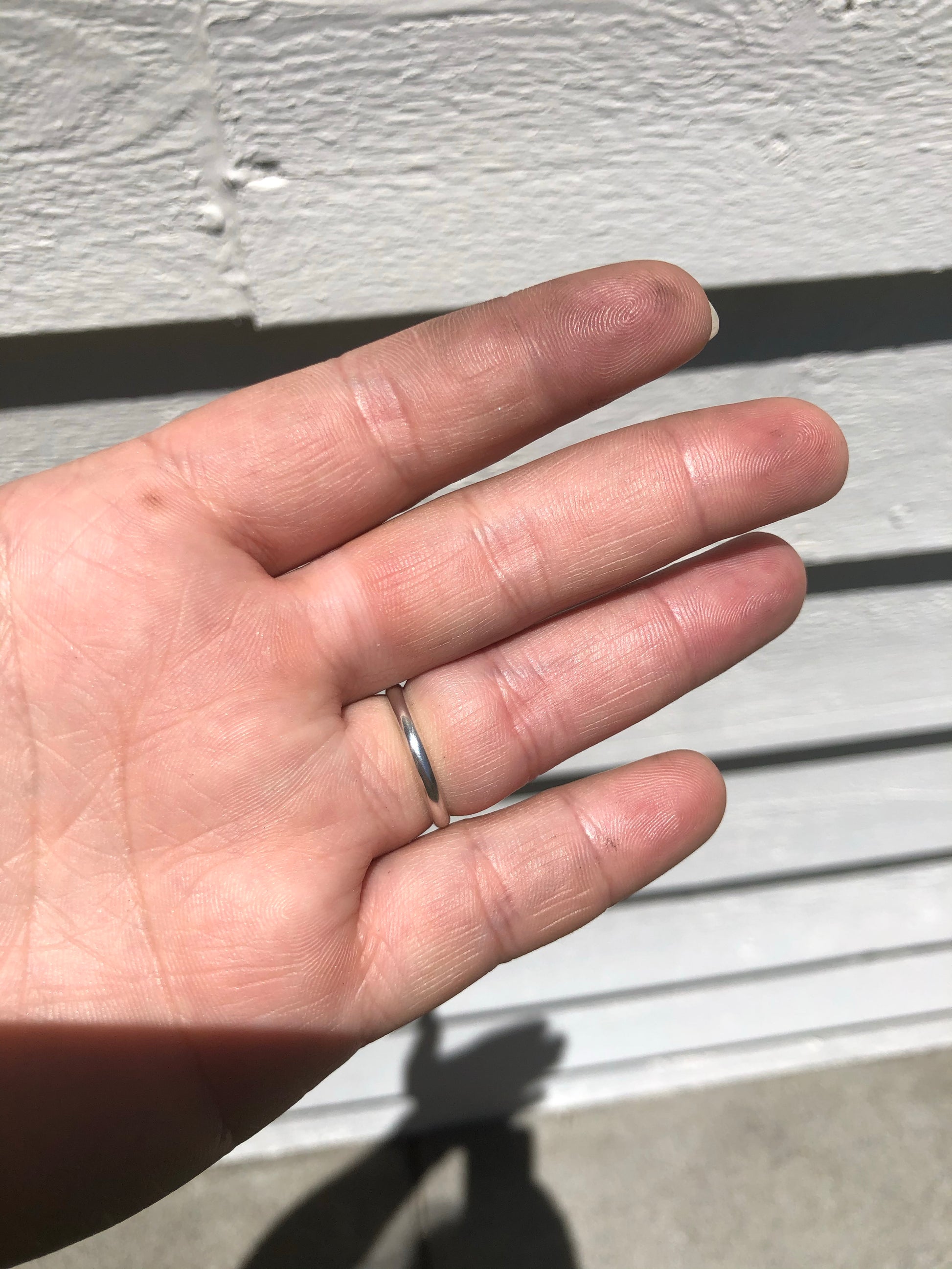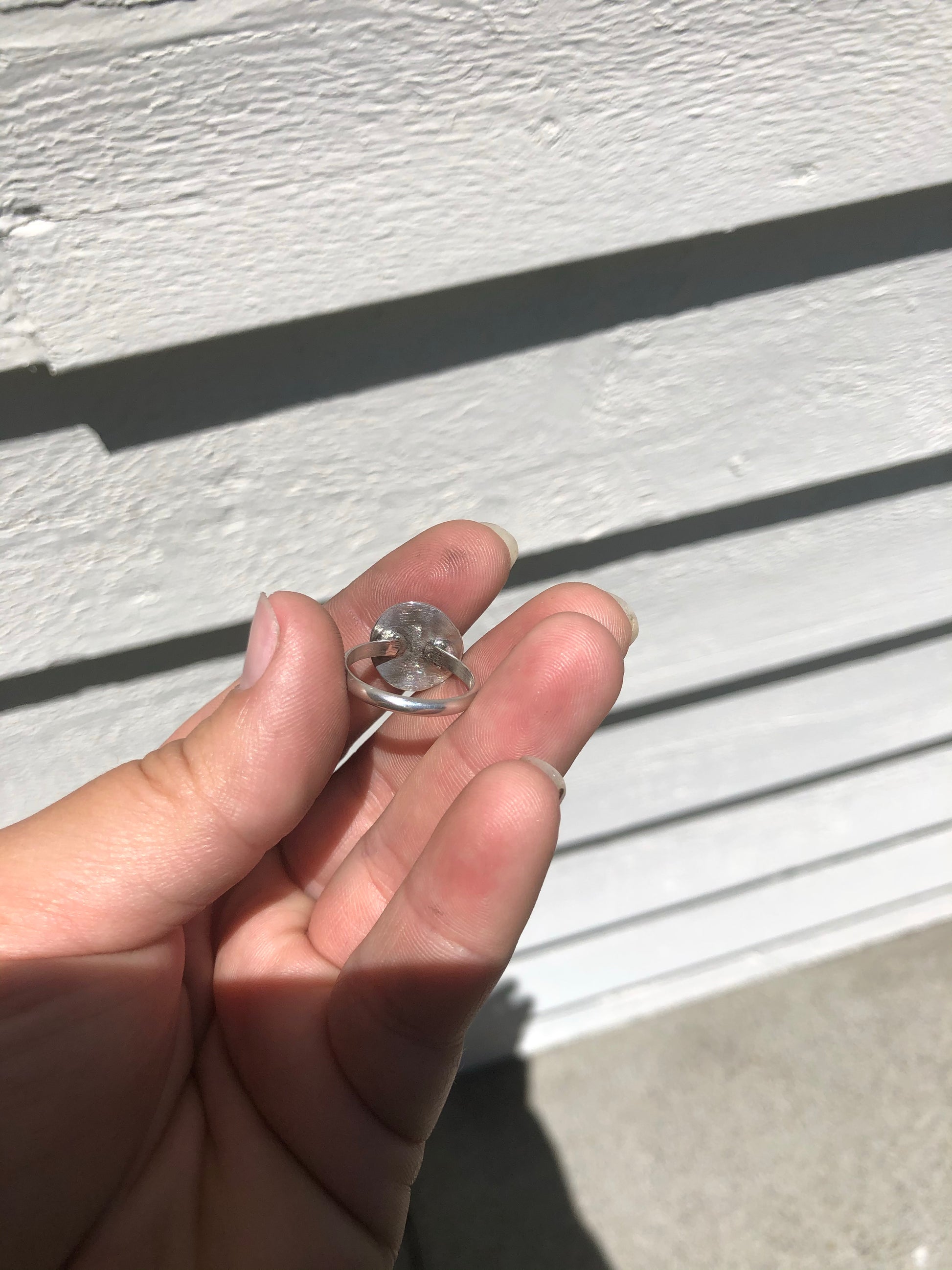 **Sterling silver is an alloy containing metals that react with chemicals found in air and produce tarnish; high moisture levels, exposure to sunlight and contaminants such as salt water increase this reaction. Properly care for ring by polishing with sterling silver polish & a clean cotton cloth.