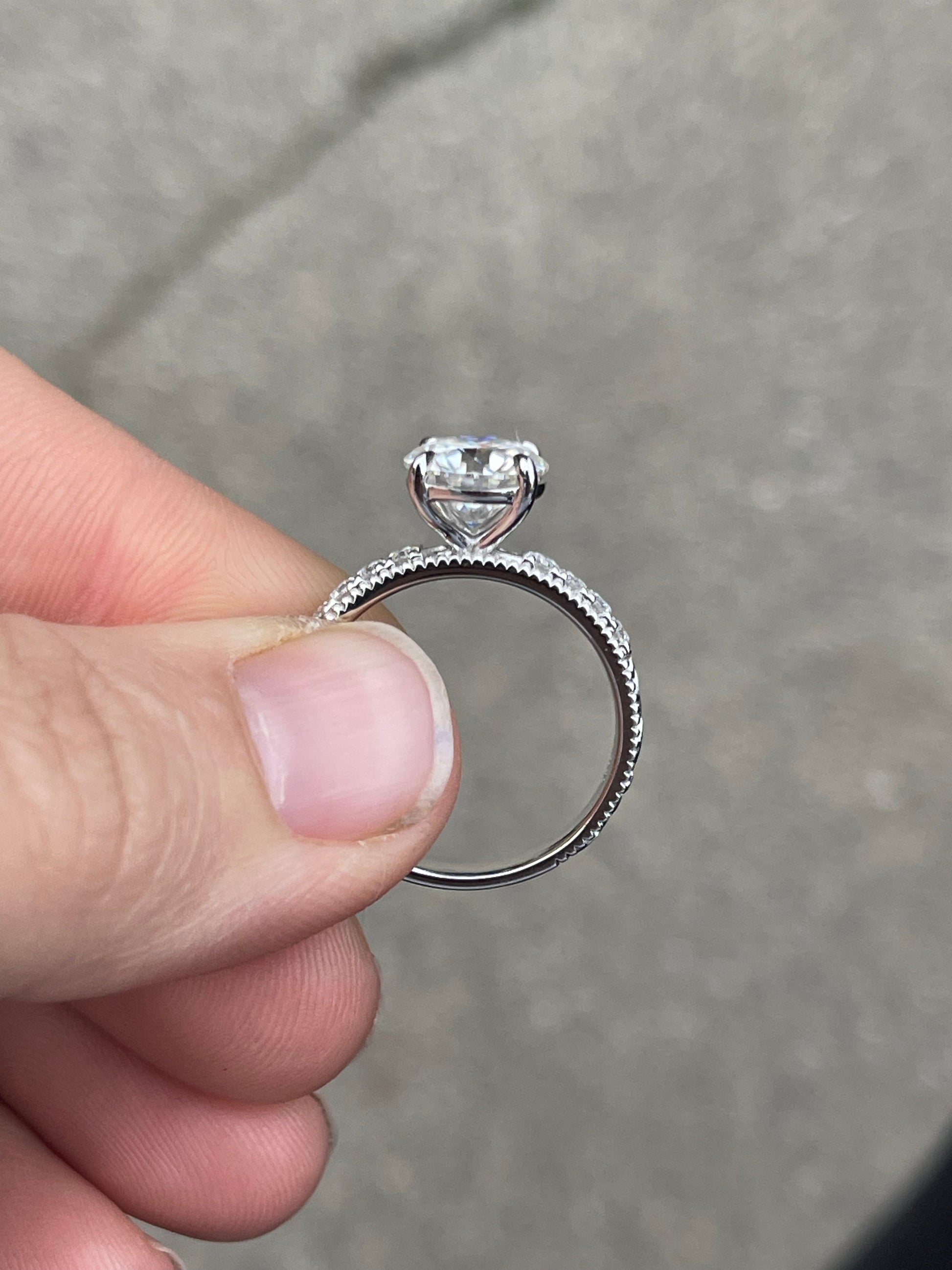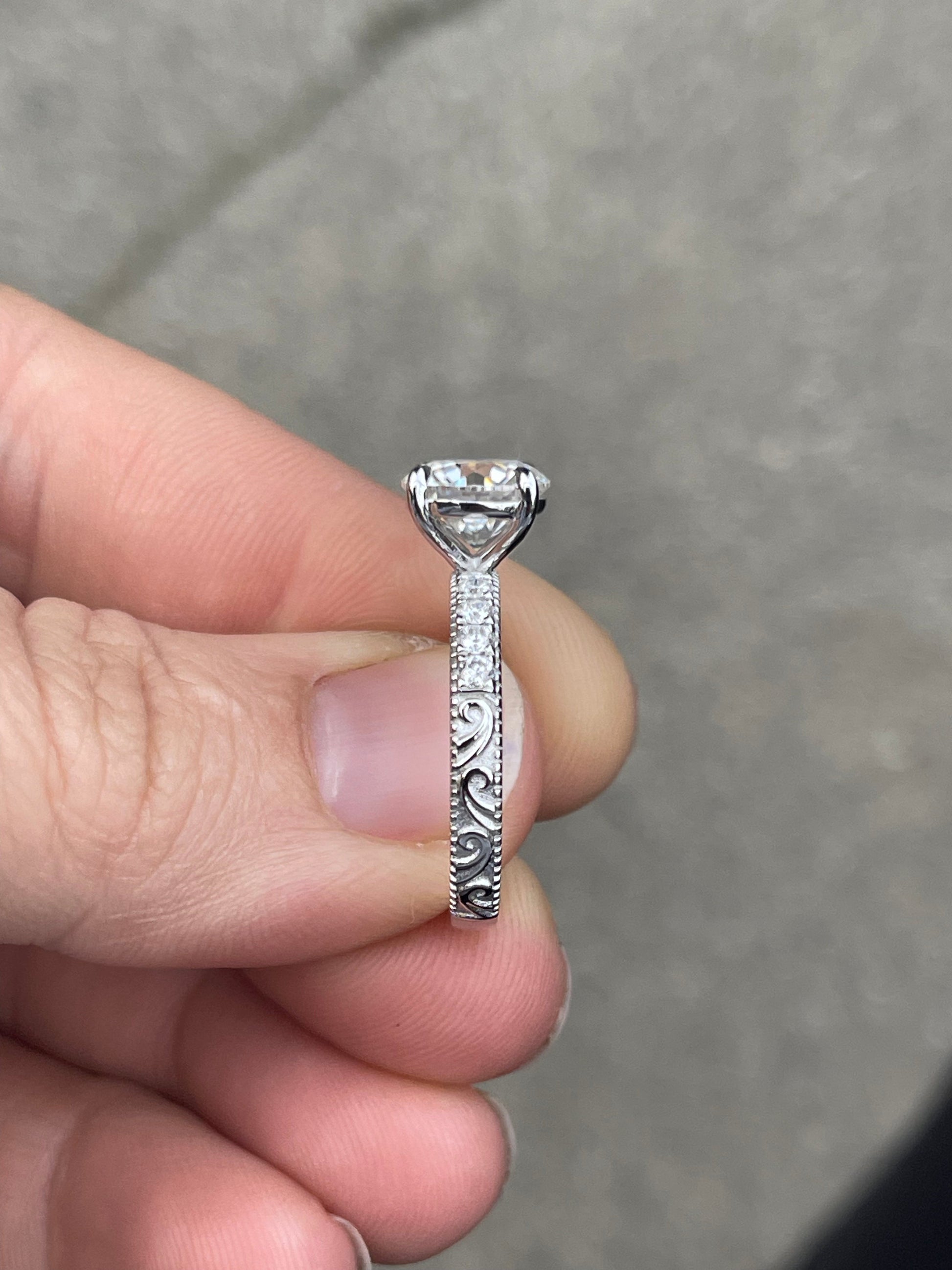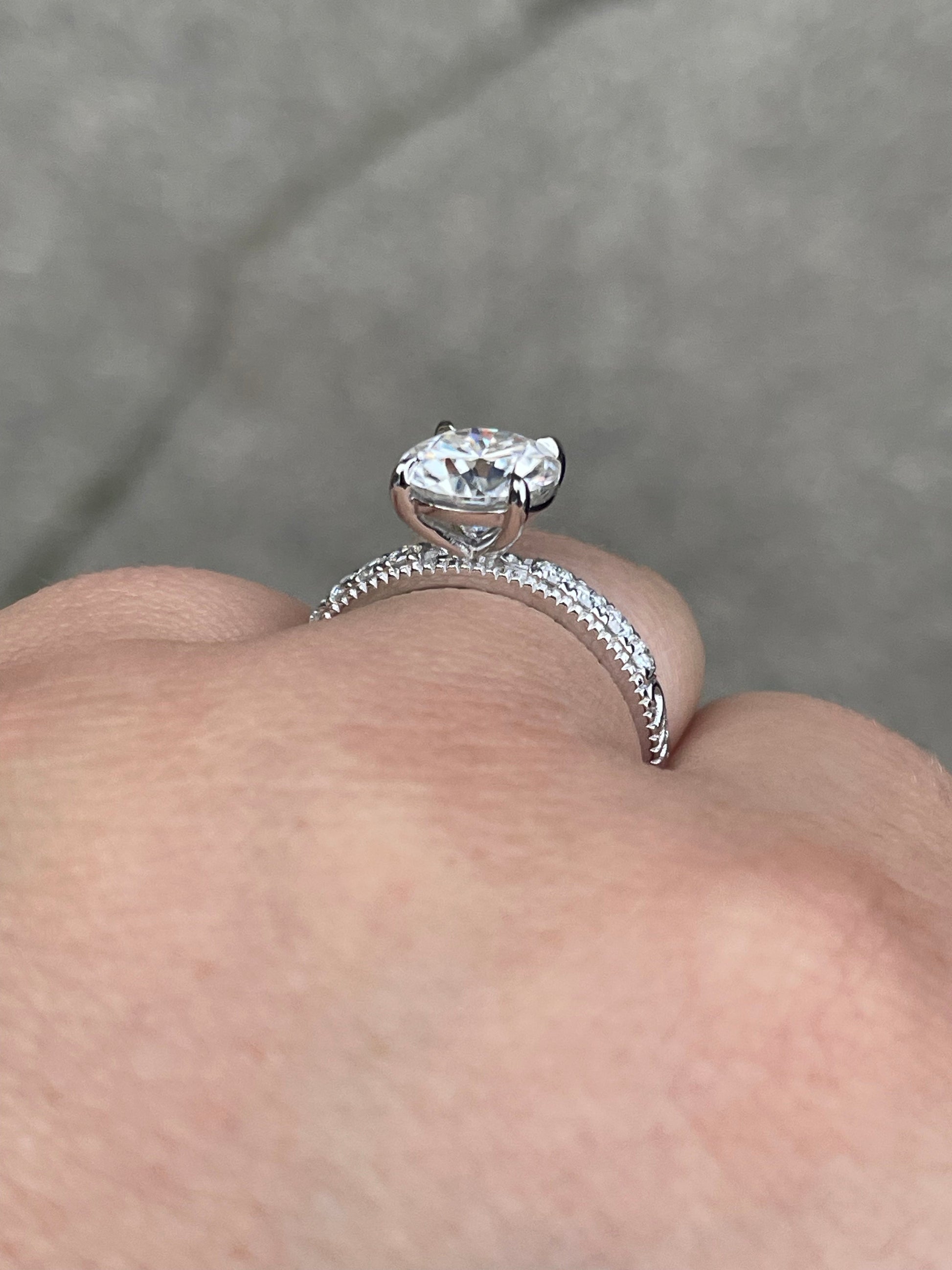 3Ct Round Cut Moissanite with Moissanite Pave Setting on 3mm Pattern Band