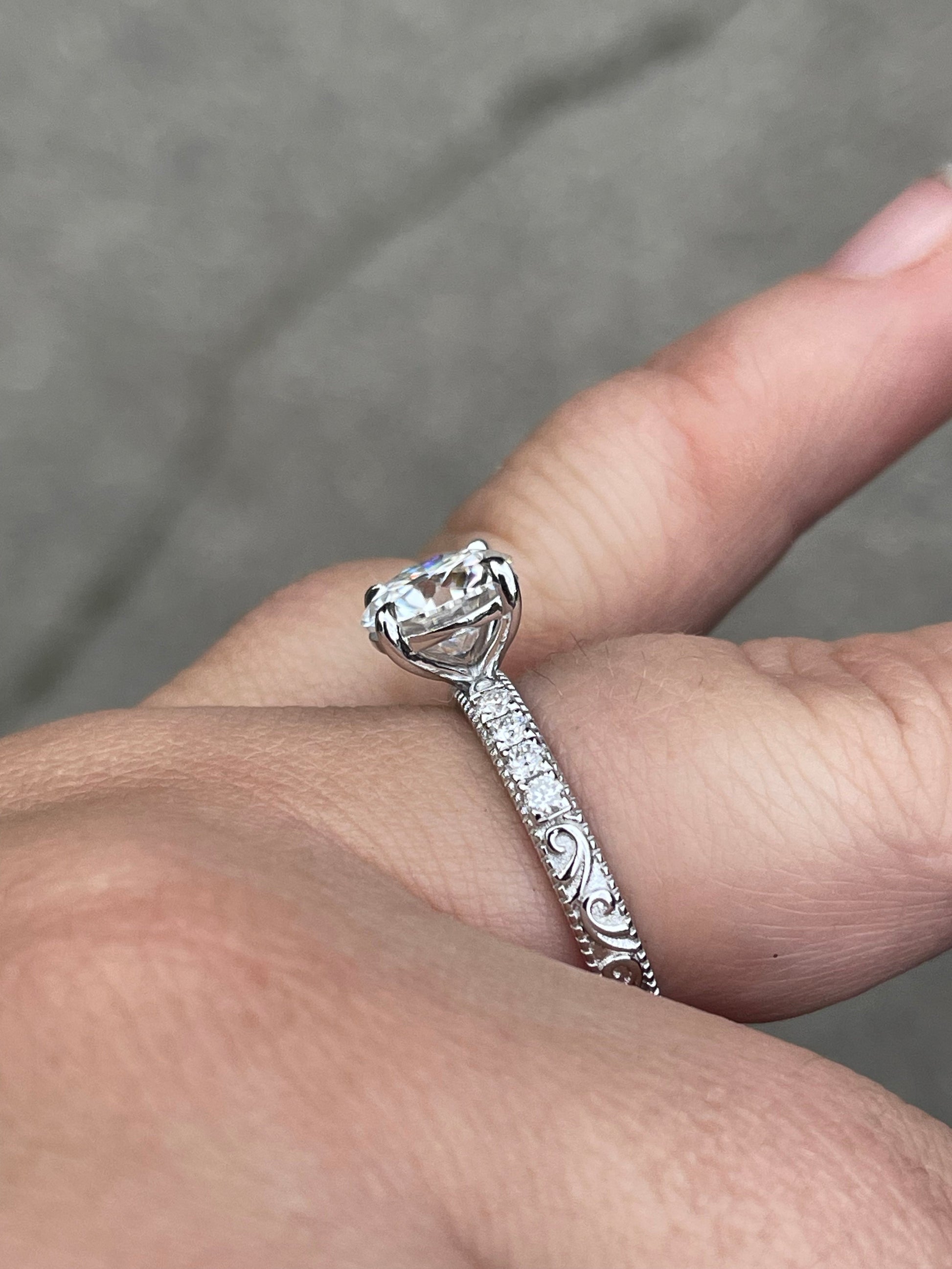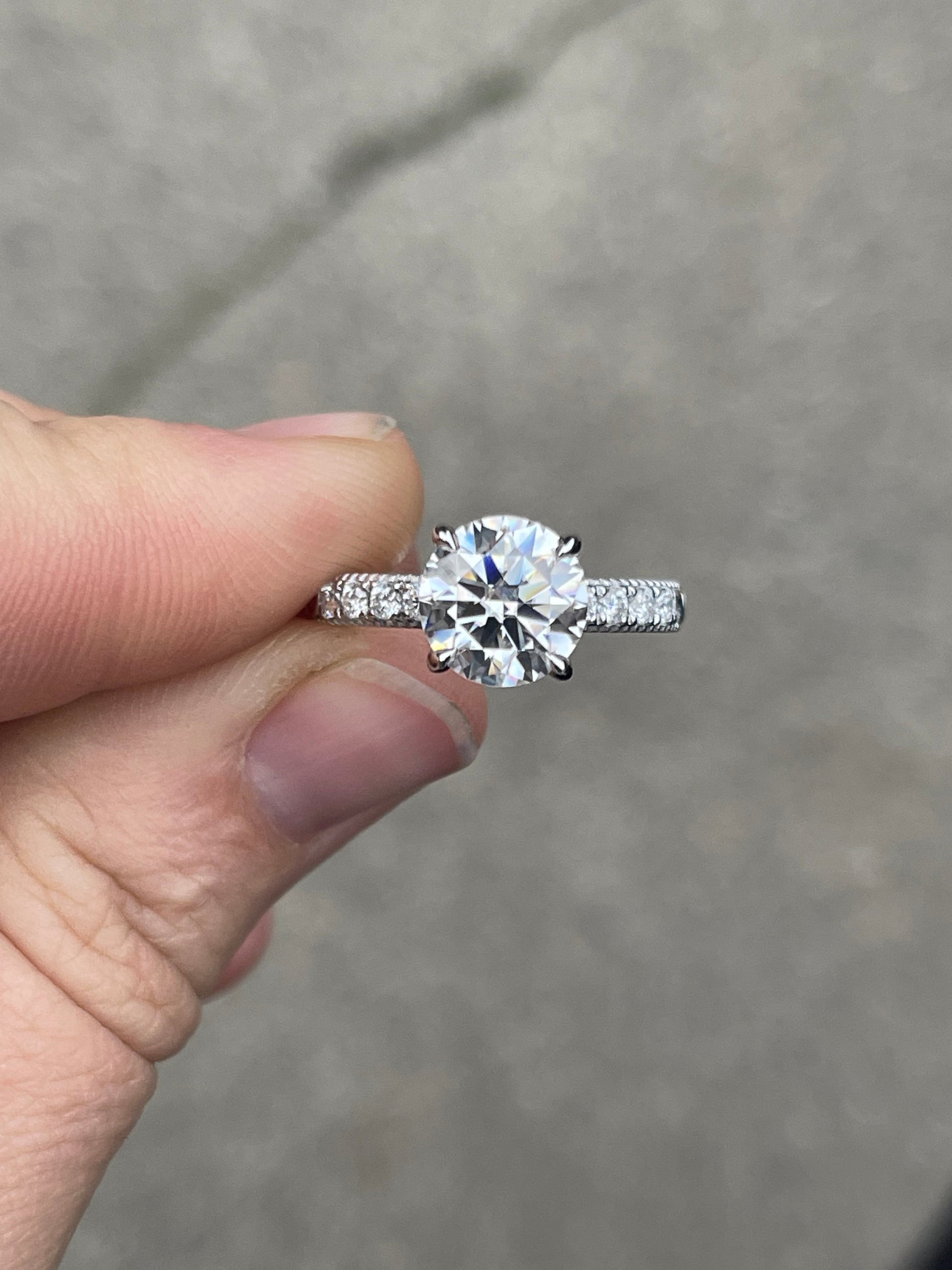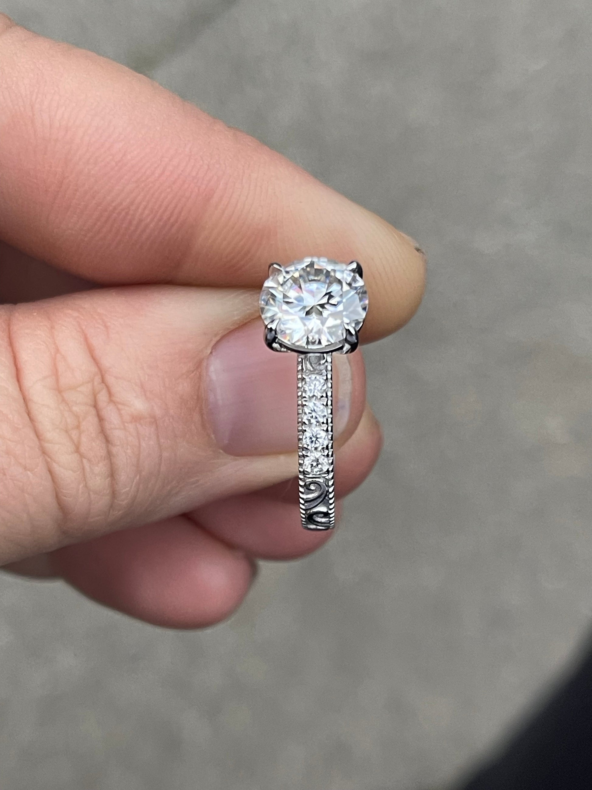 3Ct Round Cut Moissanite with Moissanite Pave Setting on 3mm Pattern Band