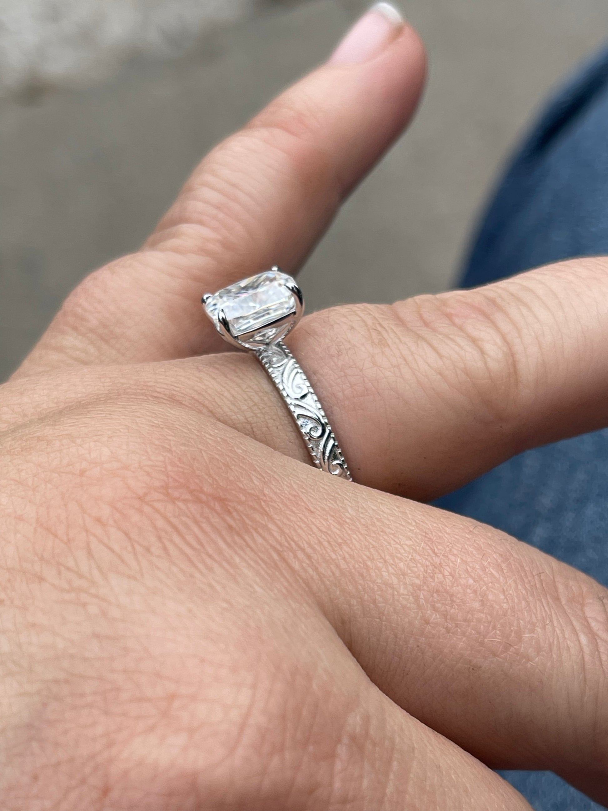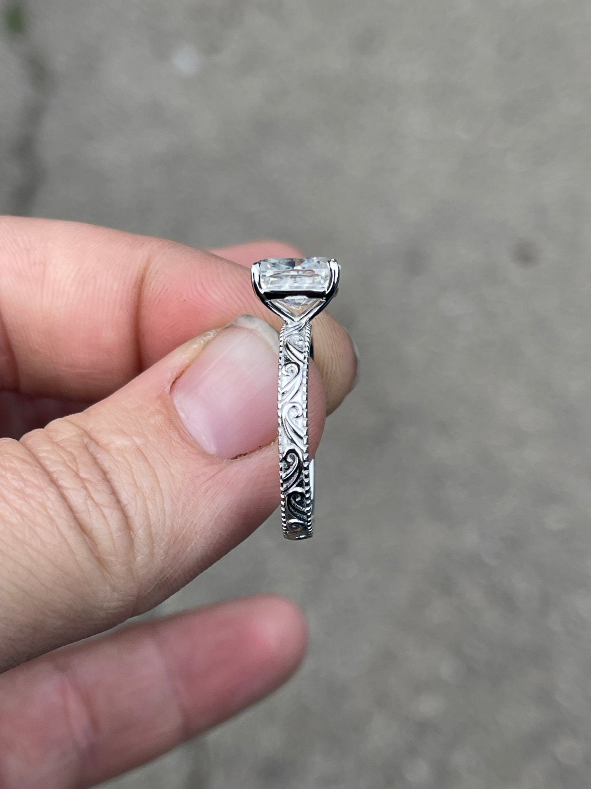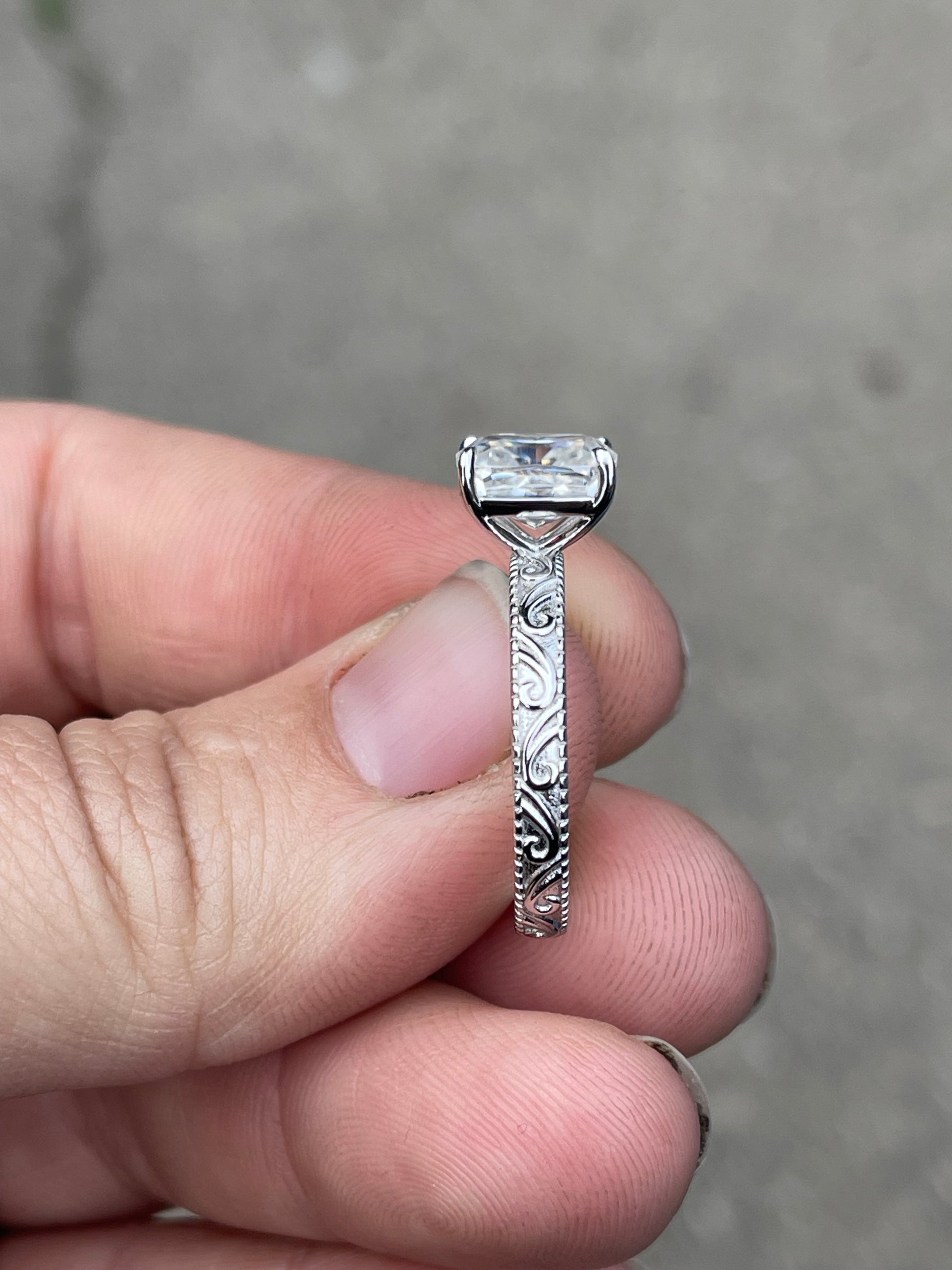 3ct Cushion Cut Moissanite 7*9mm with Pattern Band
