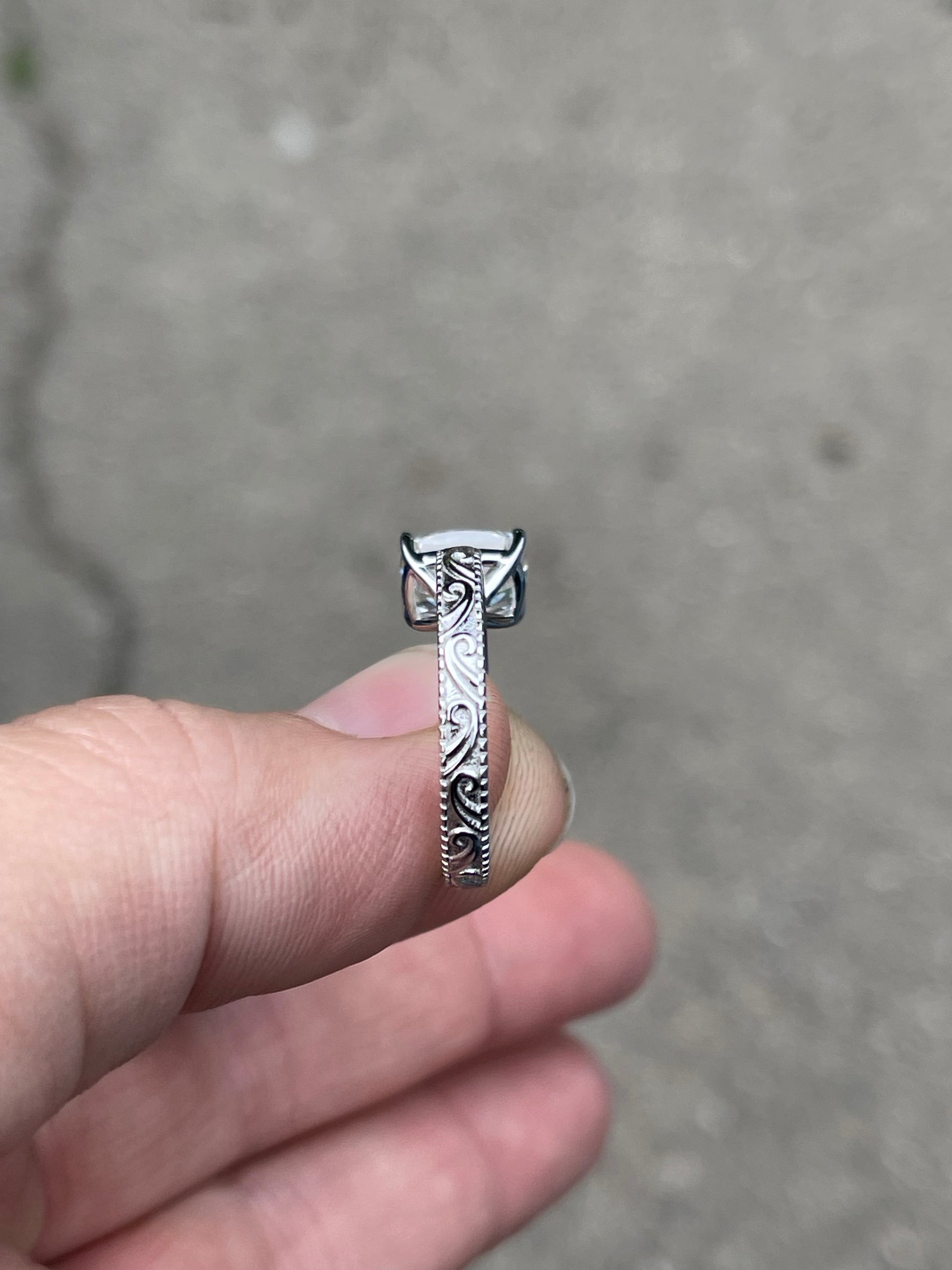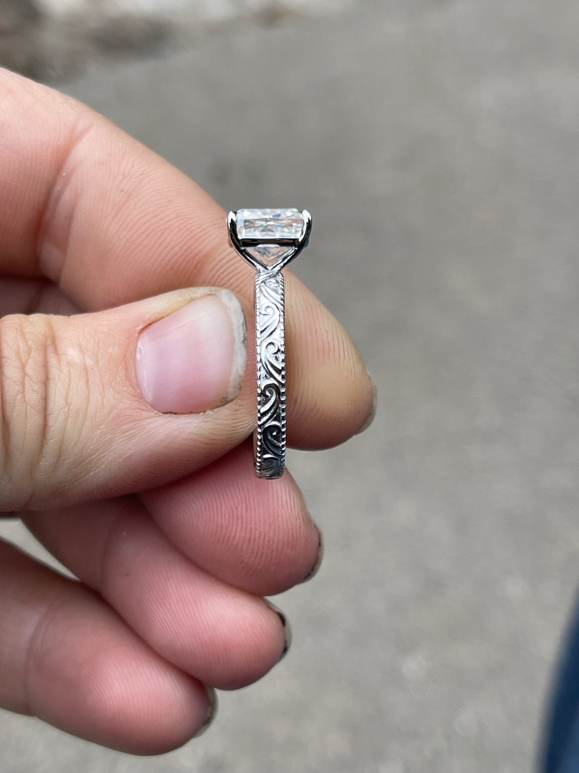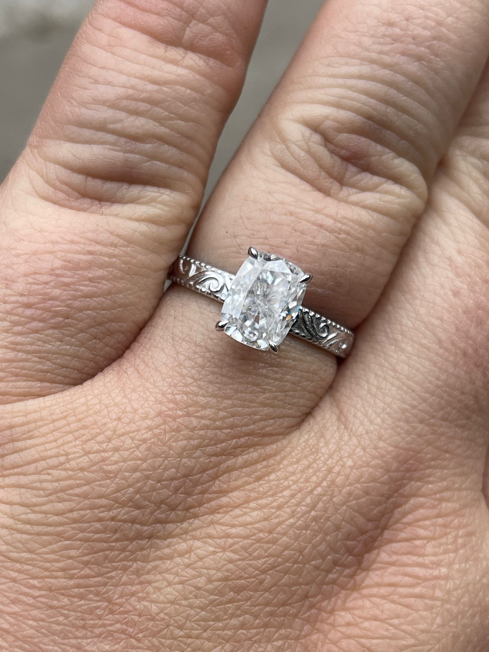 3ct Cushion Cut Moissanite 7*9mm with Pattern Band