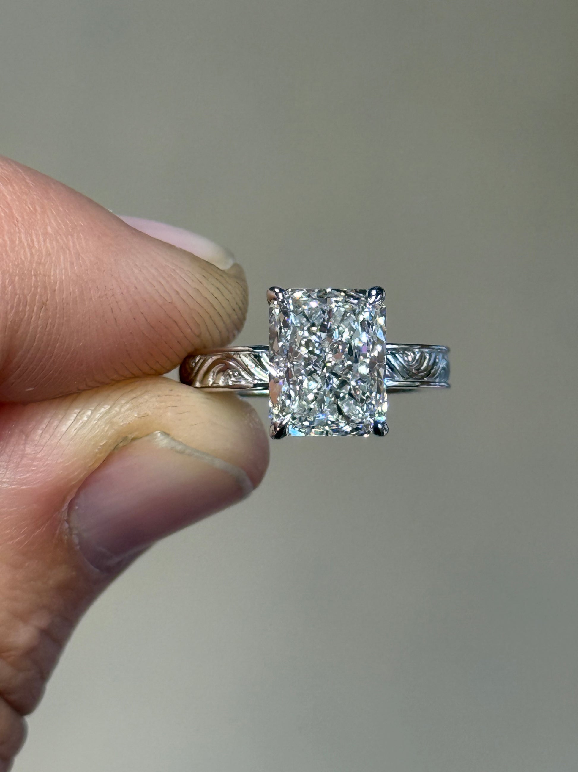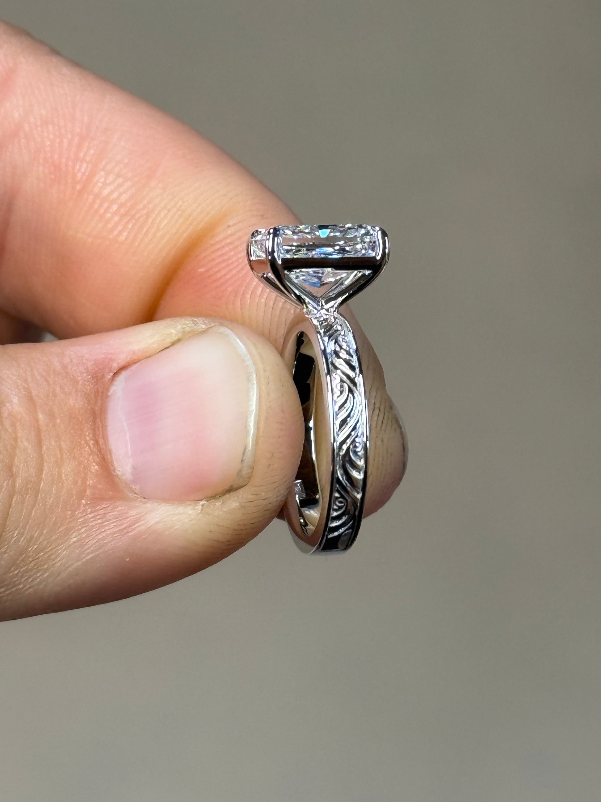 3ct Cut Lab Diamond with 3mm Pattern Band