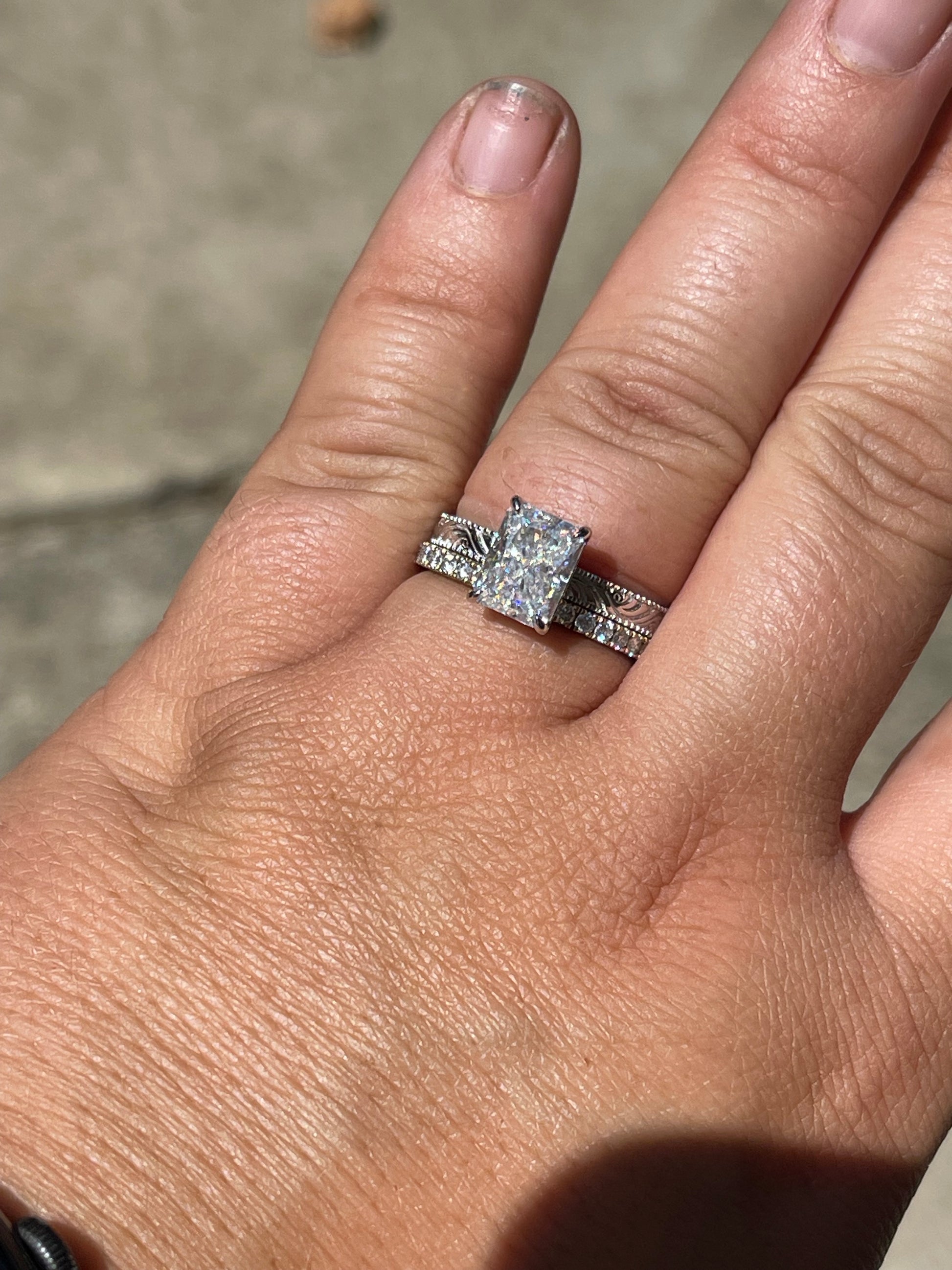 3ct Radiant Cut Lab Diamond with 3mm Pattern Band