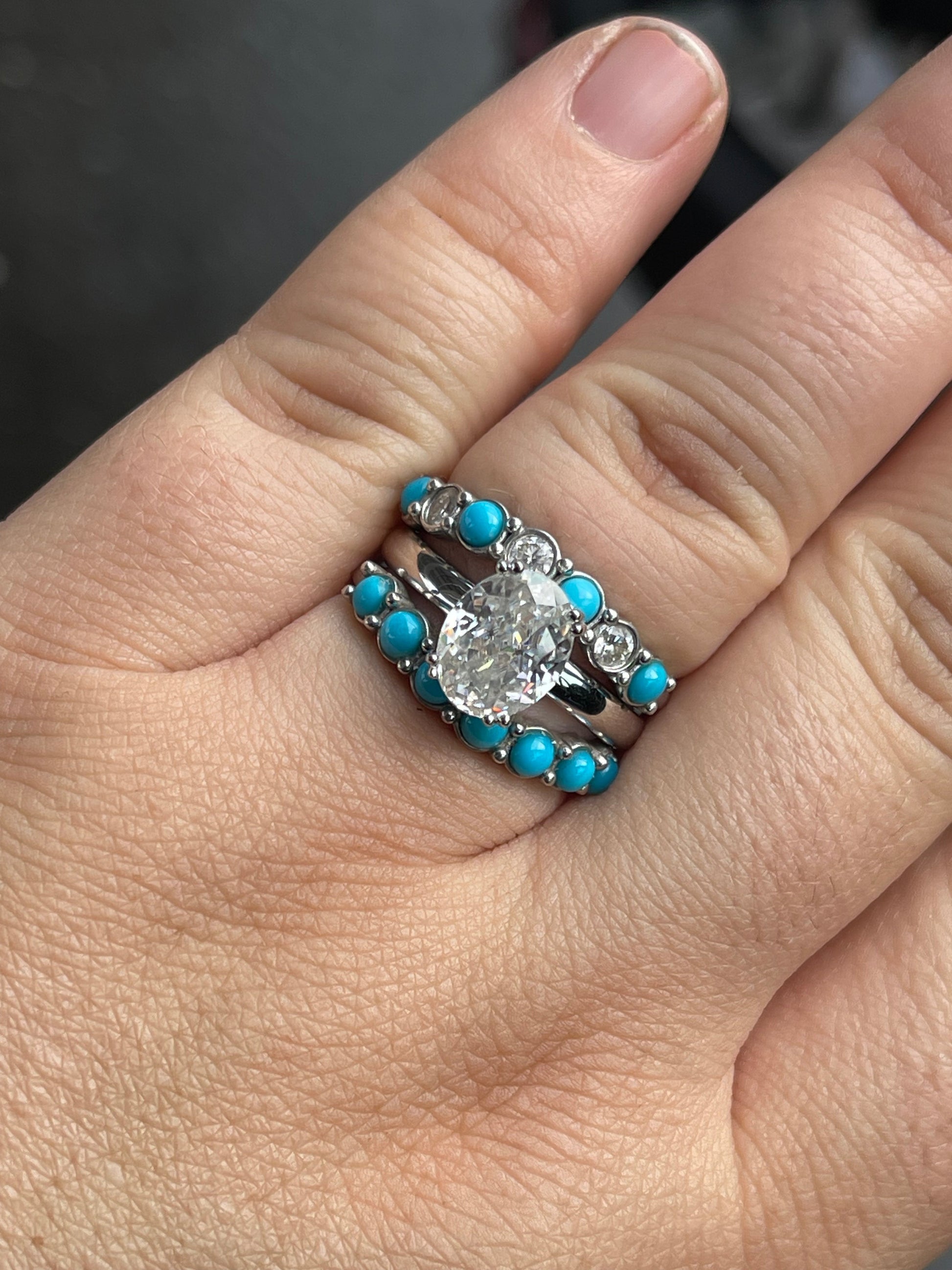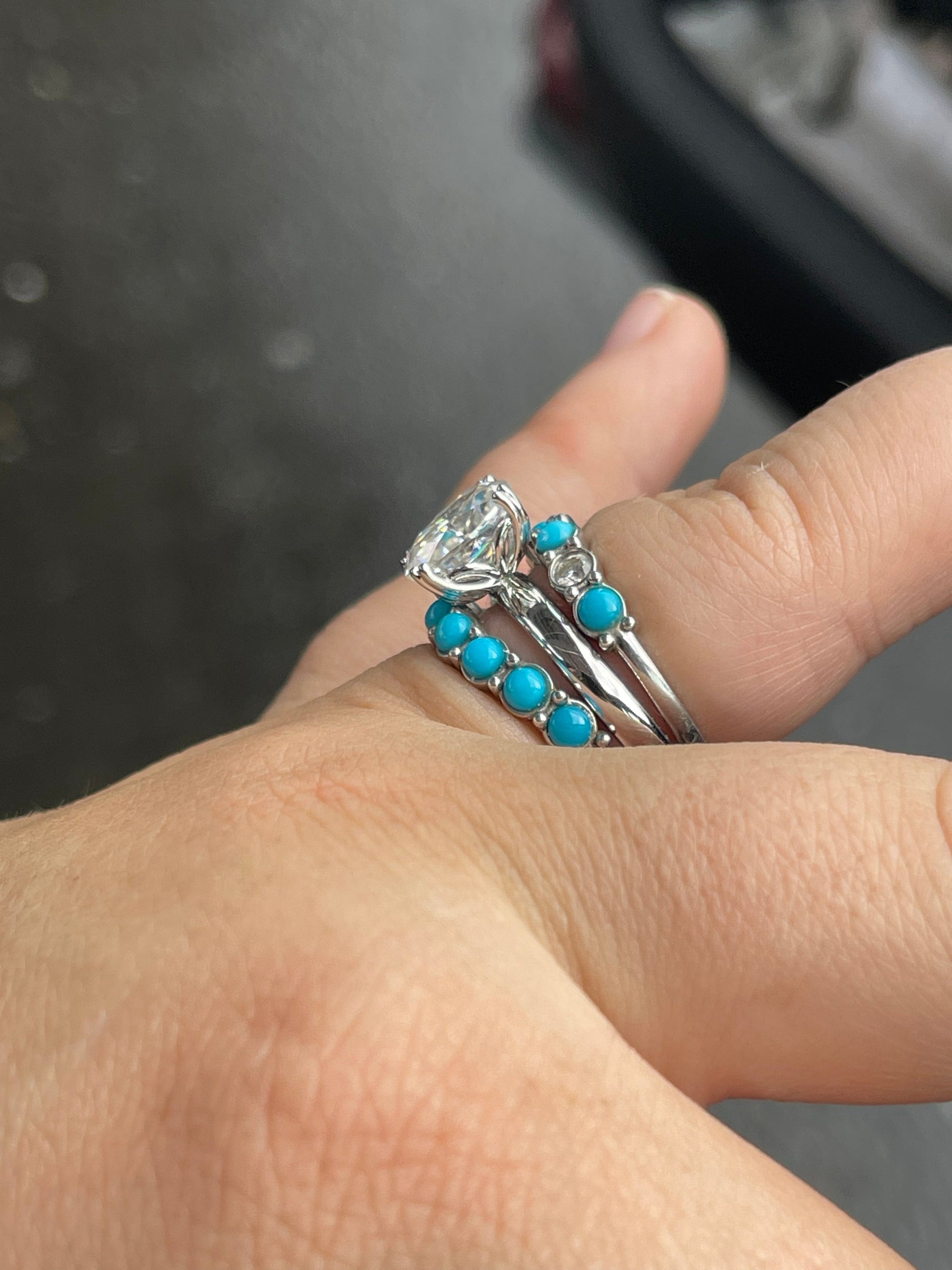 **Sterling Silver can react with chemicals found in air and produce tarnish and oxidize; high moisture levels, exposure to sunlight and contaminants such as salt water increase this reaction. Properly care for ring by polishing with polish & a clean cotton cloth.