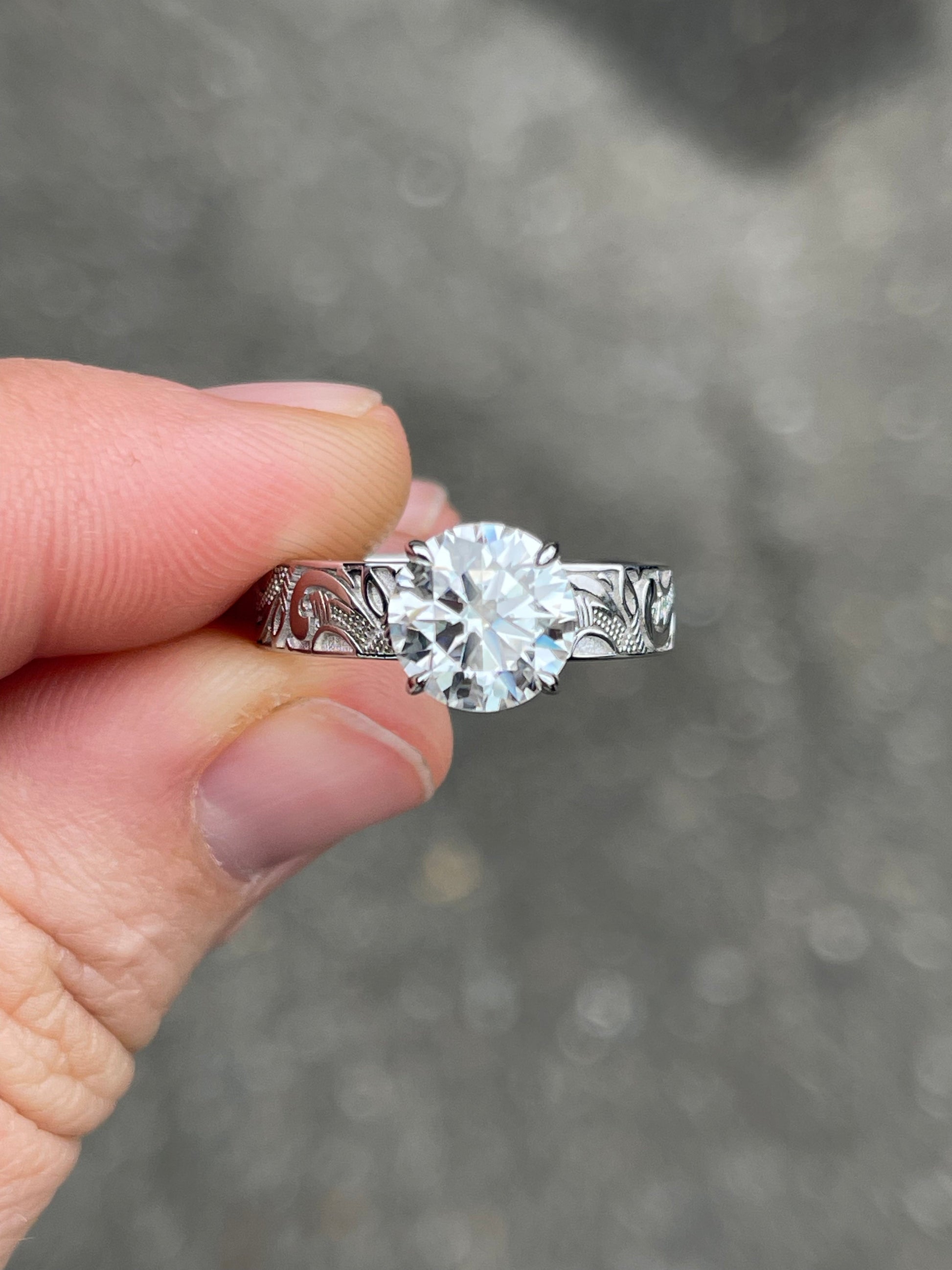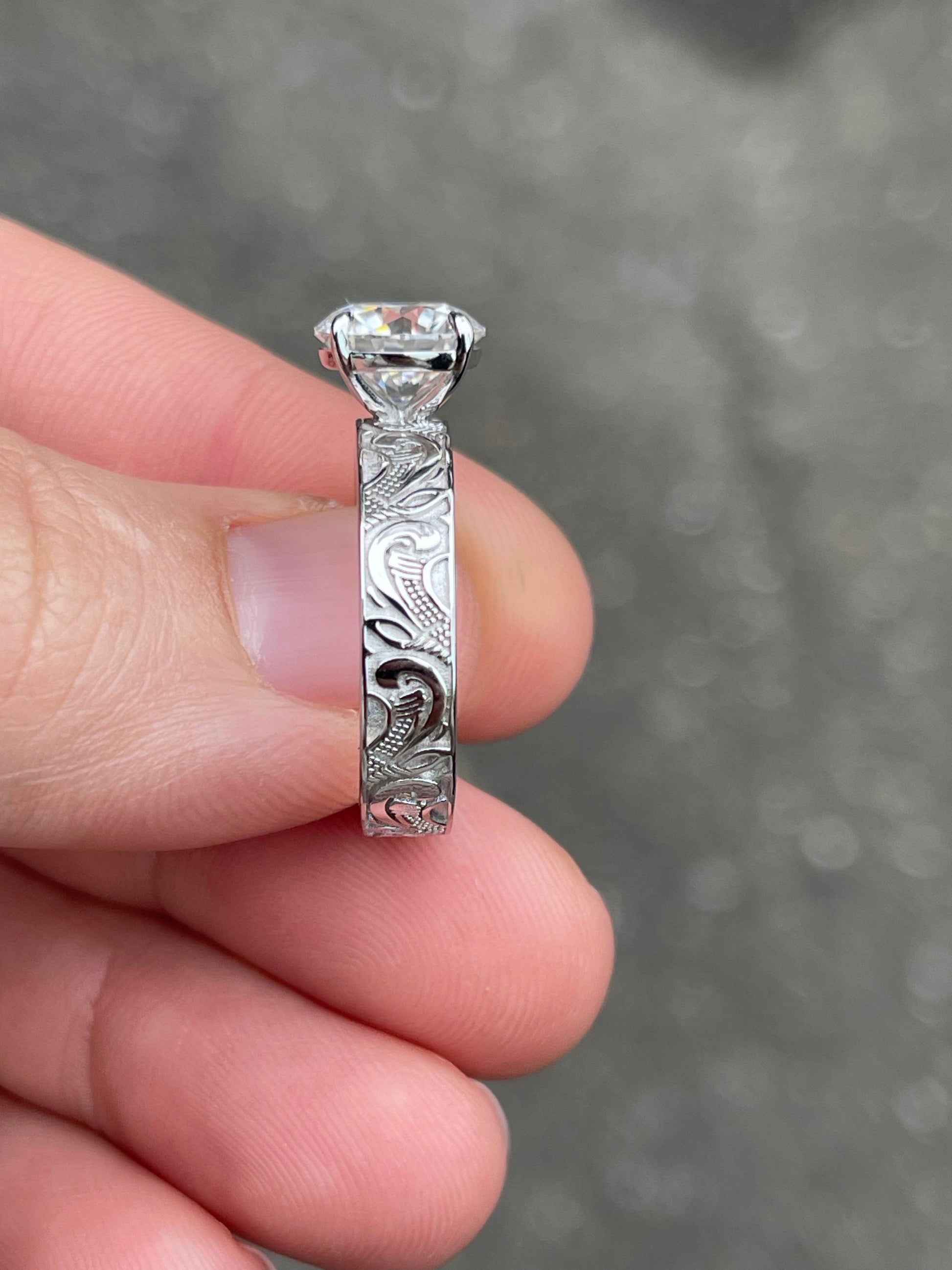 3ct Round Cut Moissanite 9mm with 5mm Pattern Band