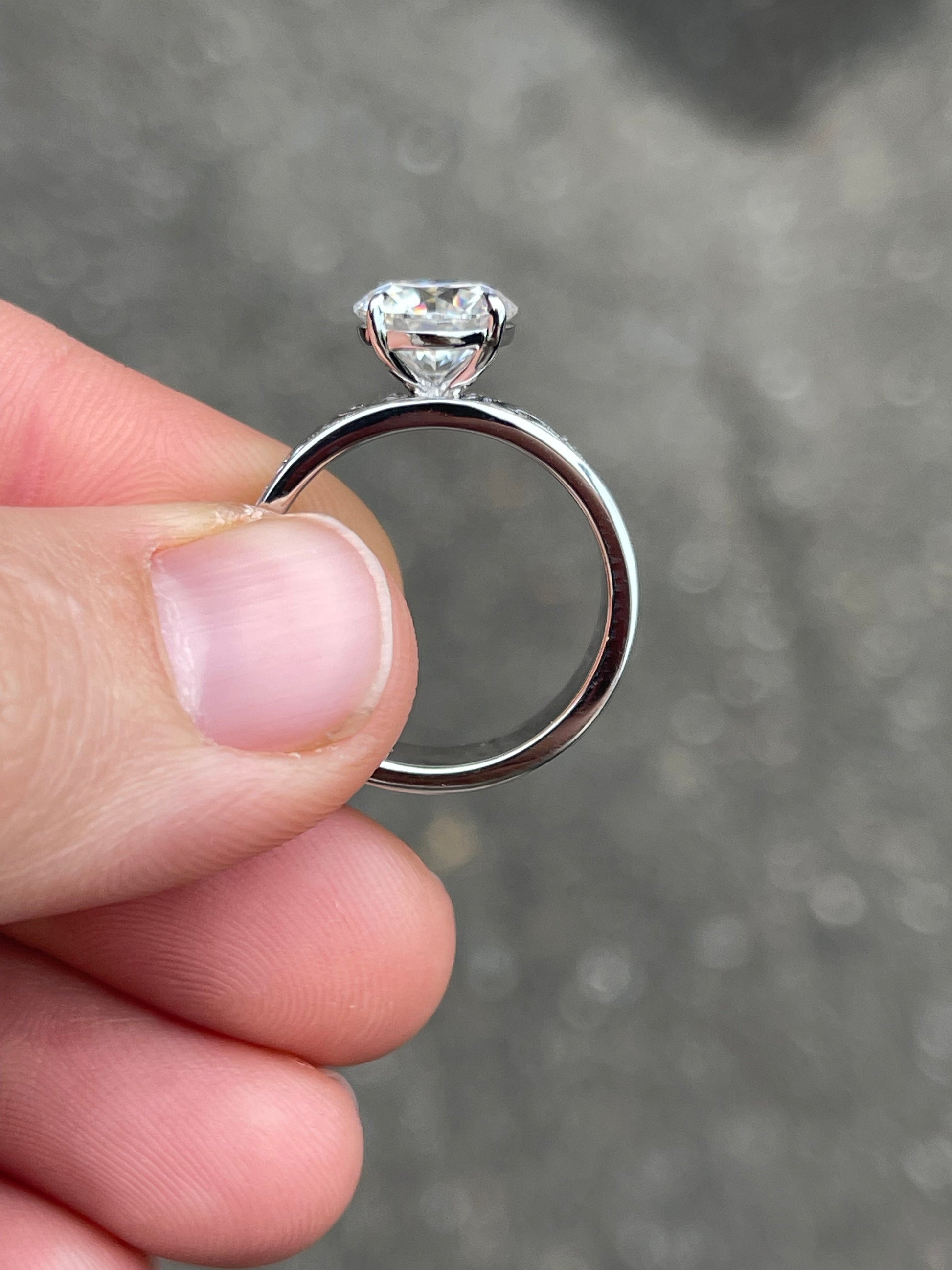 Center Stone: 3ct Moissanite 9mm (GRA Certified)