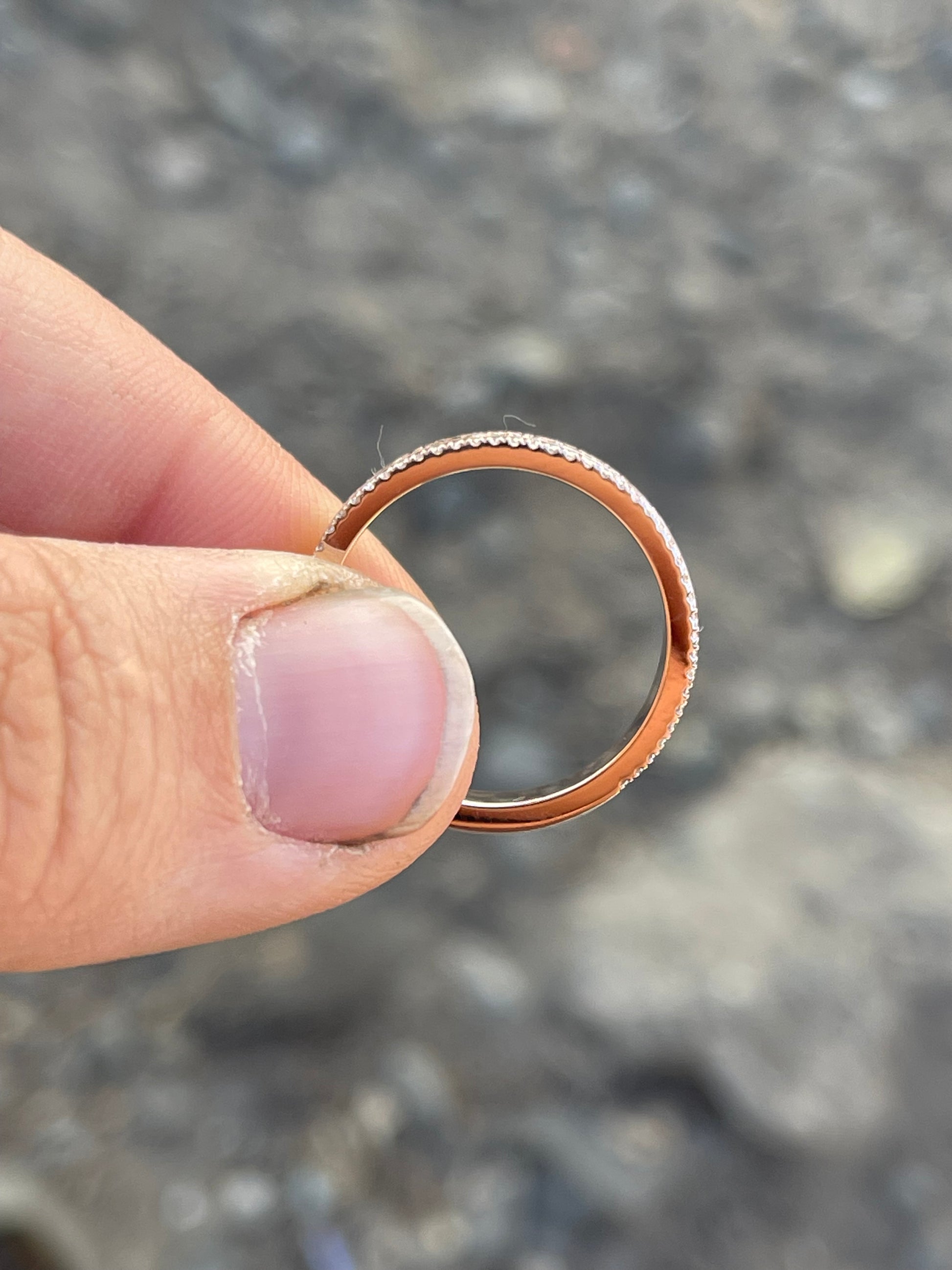 **Gold can react with chemicals found in air and produce tarnish; high moisture levels, exposure to sunlight and contaminants such as salt water increase this reaction. Properly care for ring by polishing with polish & a clean cotton cloth.