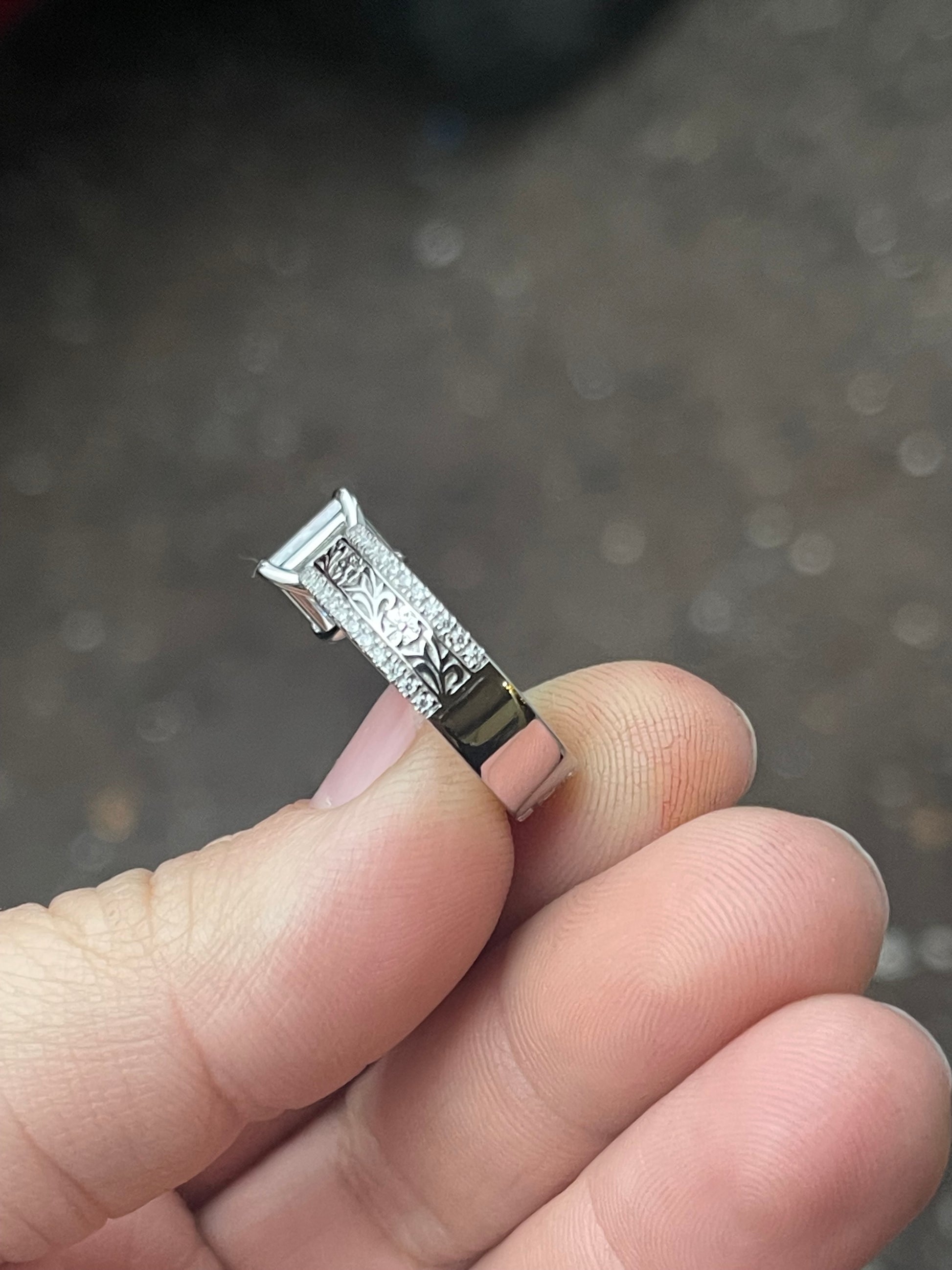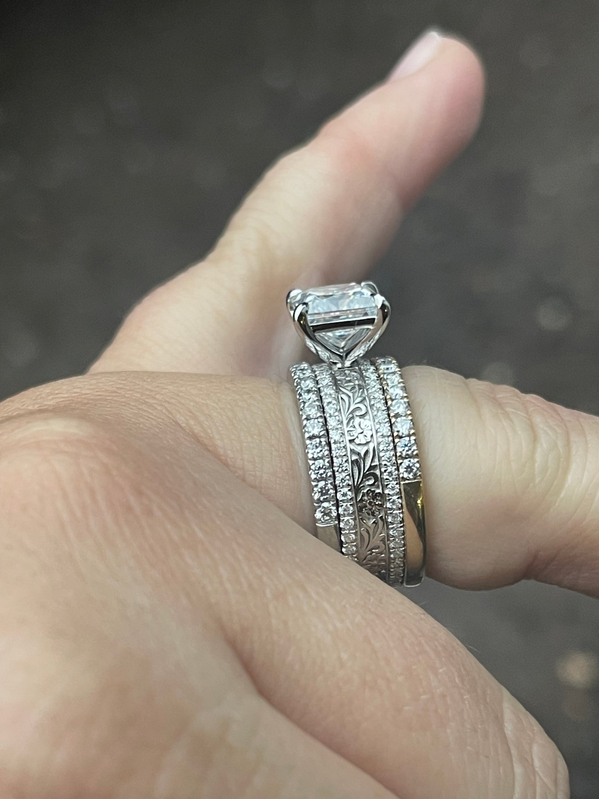 3ct Princess Cut Moissanite with 5.8mm Pattern Band