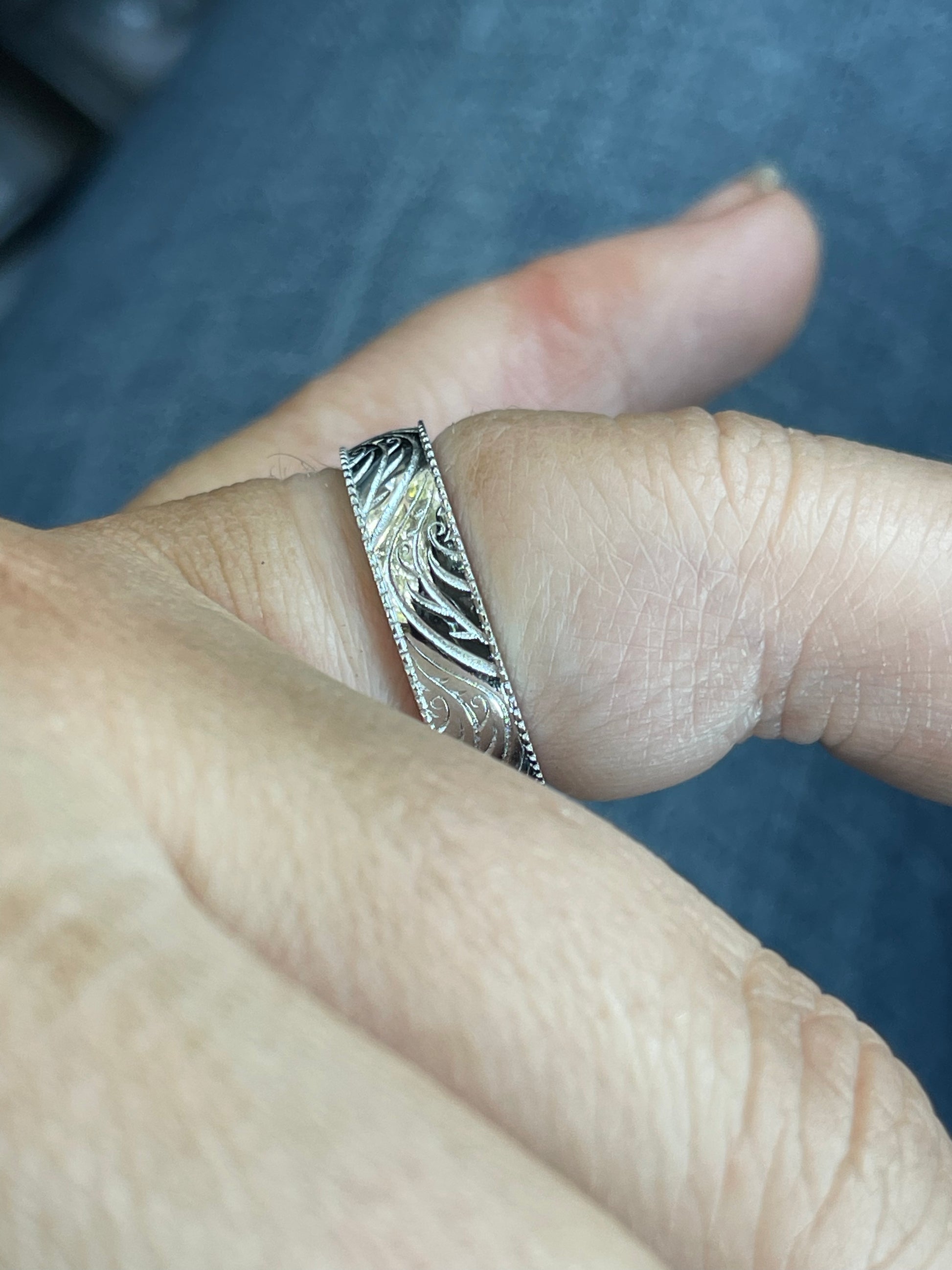 **Sterling silver is an alloy containing metals that react with chemicals found in air and produce tarnish; high moisture levels, exposure to sunlight and contaminants such as salt water increase this reaction. Properly care for ring by polishing with sterling silver polish & a clean cotton cloth.