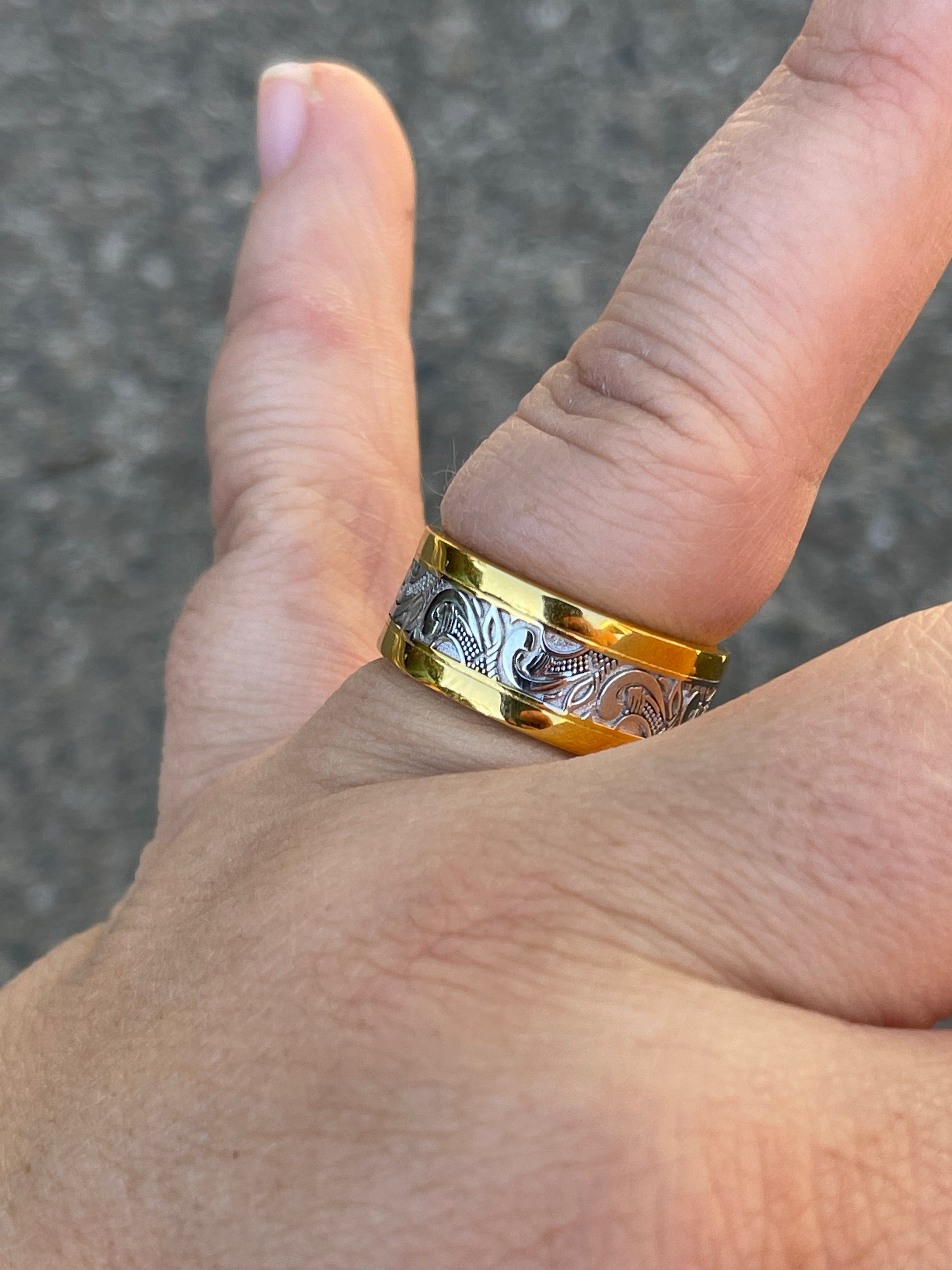 9mm Wedding Band 2 Toned 10K Solid Yellow or White Gold.