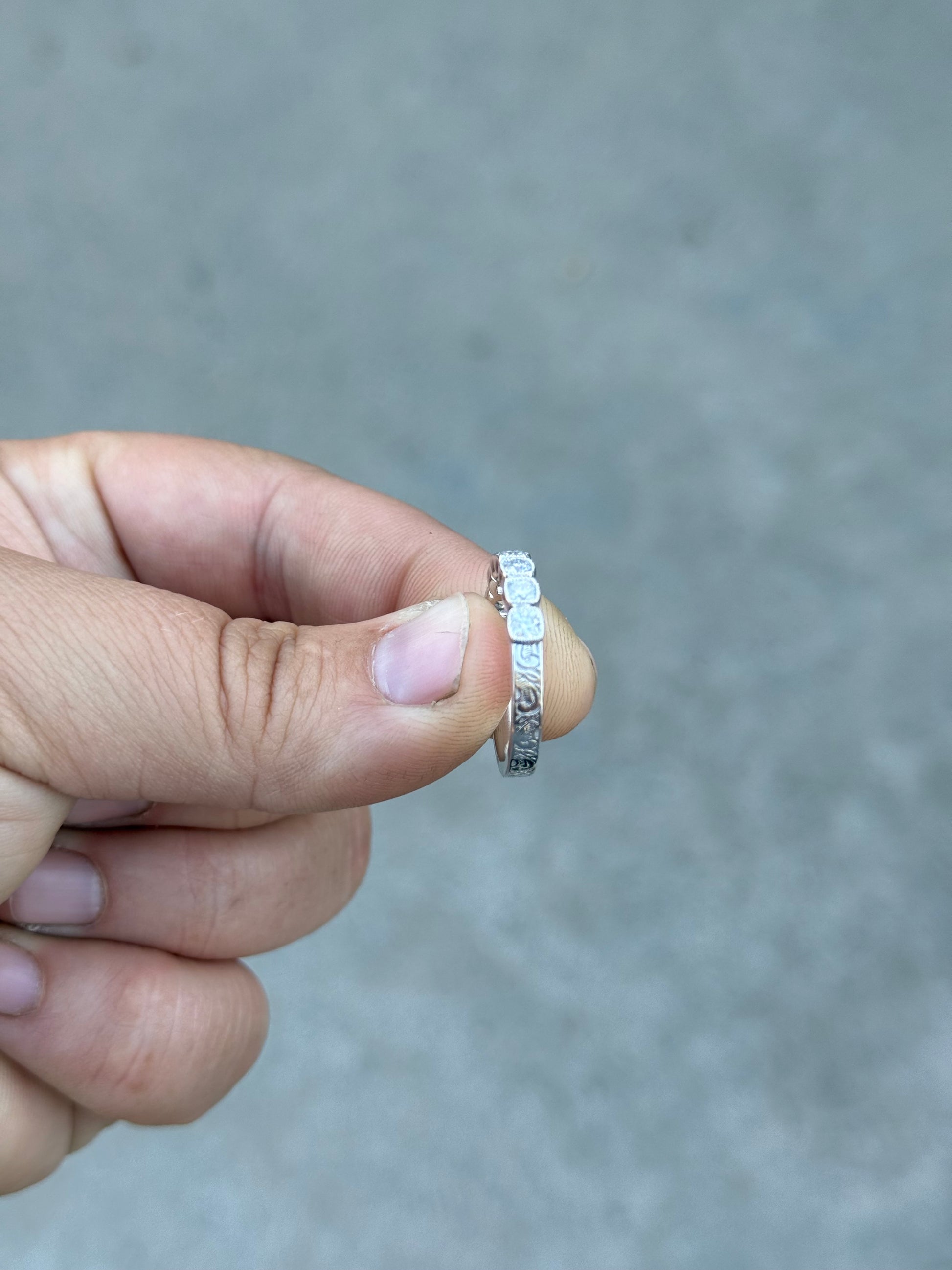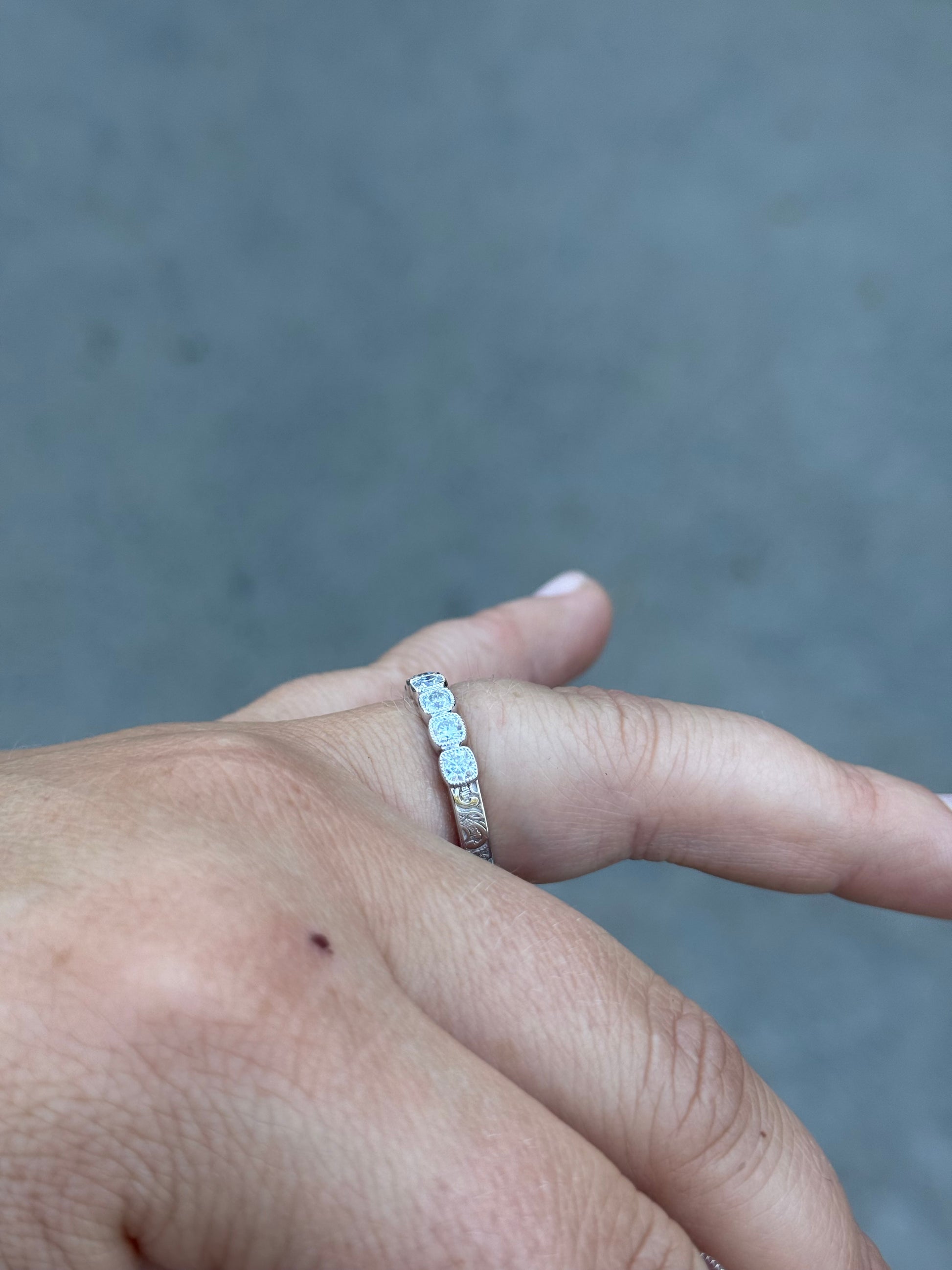 3mm Pattern Band with 3mm Cushion Cut Moissanite Stones