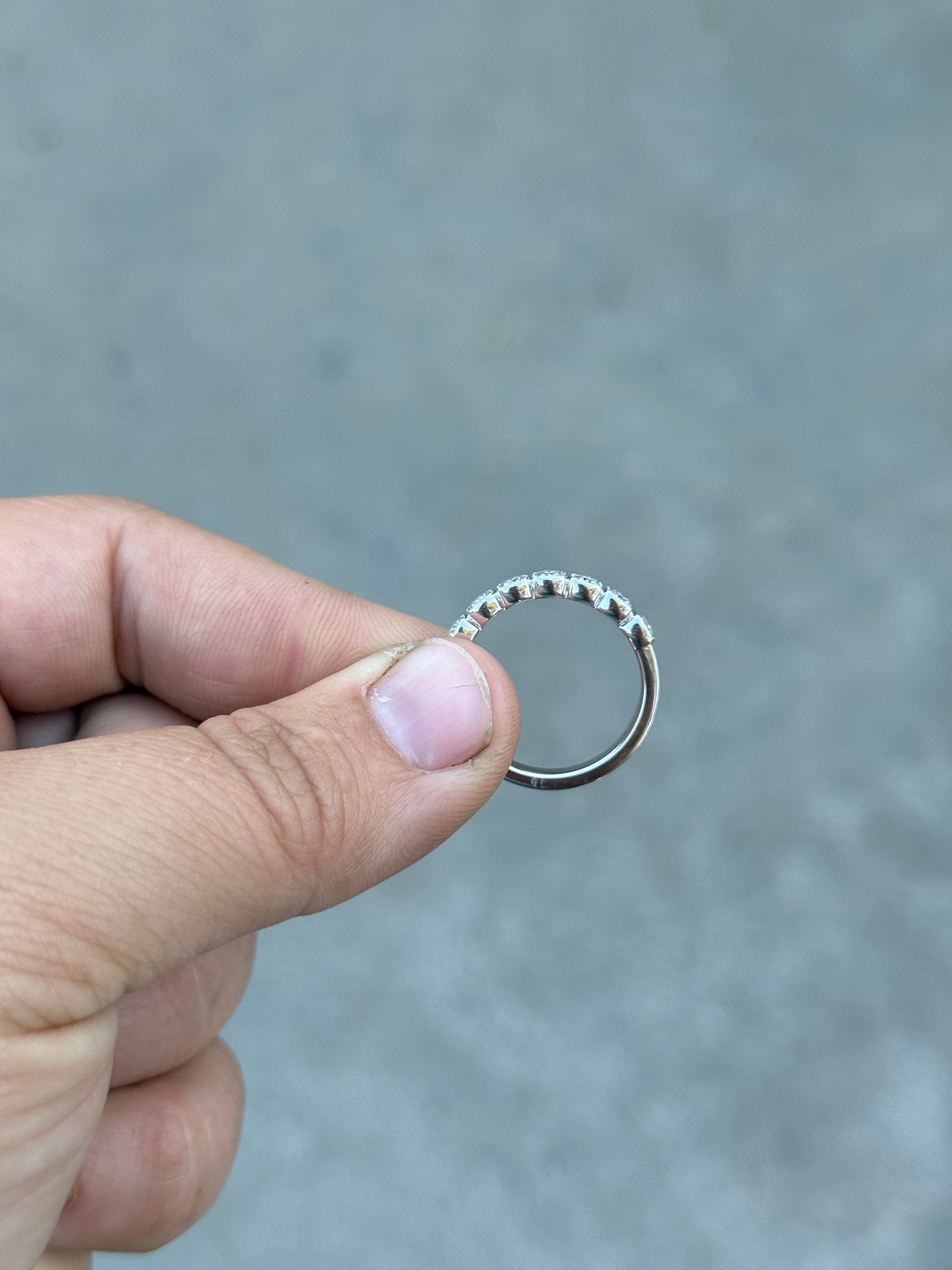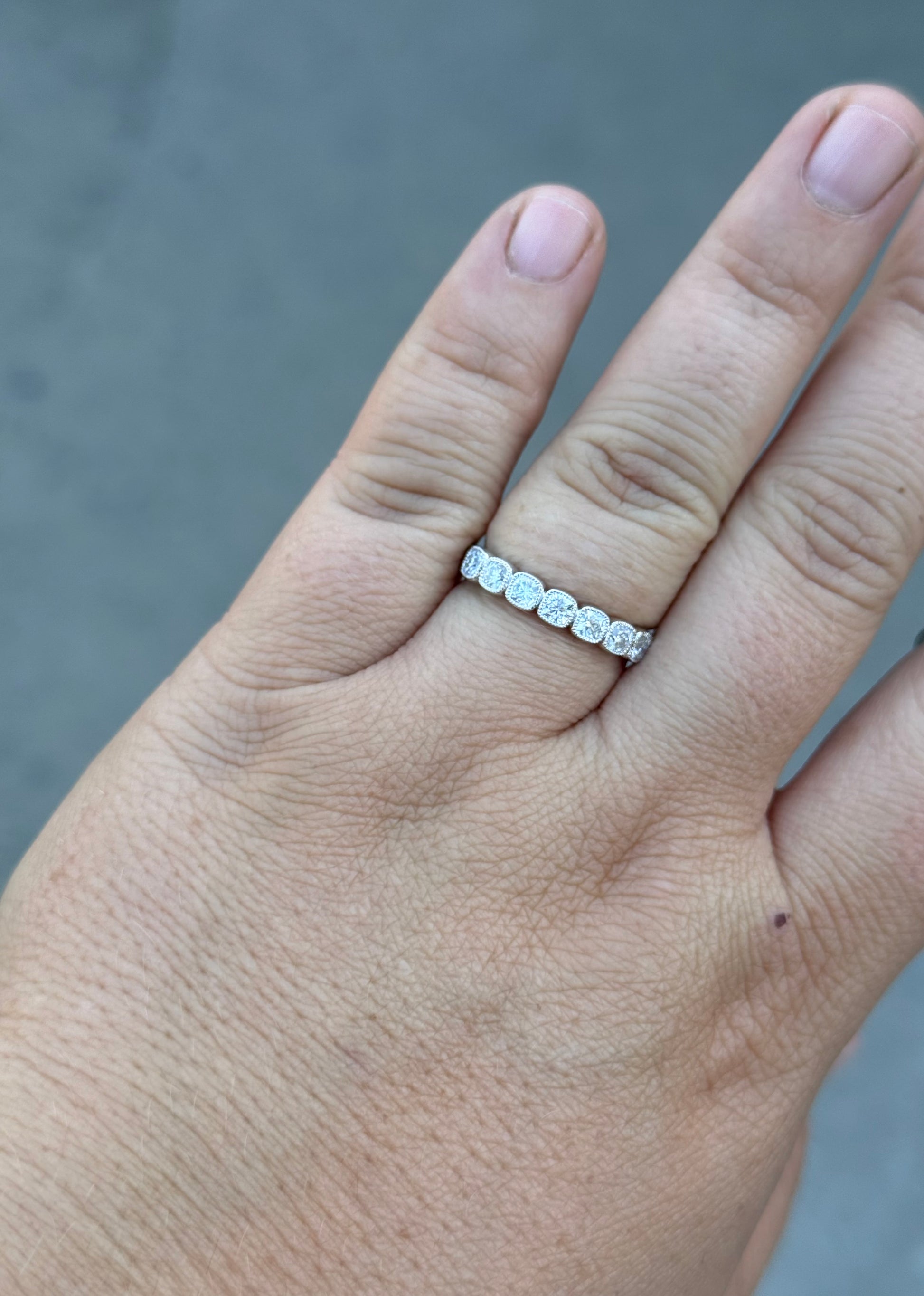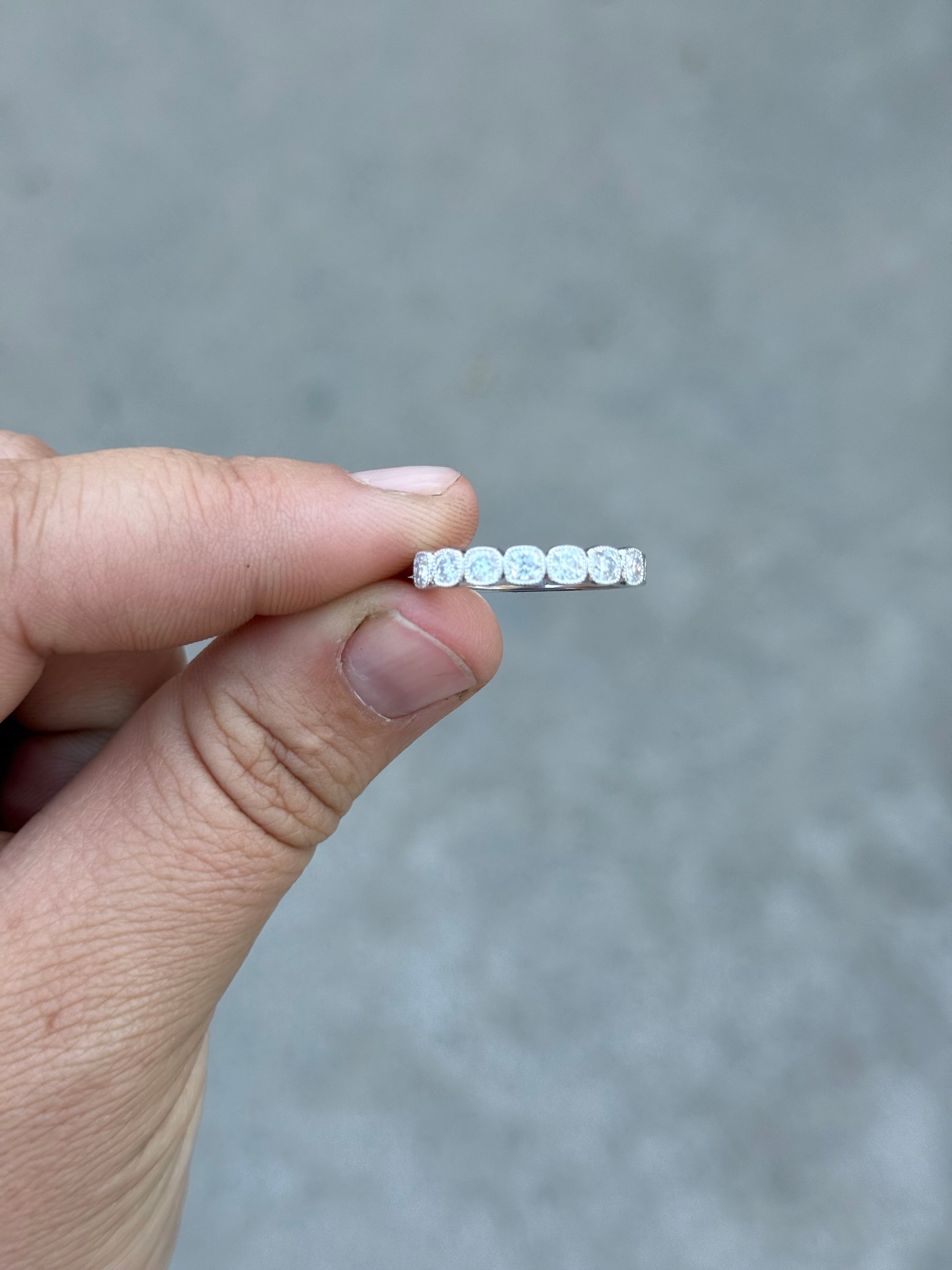 3MM Band in S925 Sterling Silver with 7 3mm Cushion Cut Moissanite Stones.