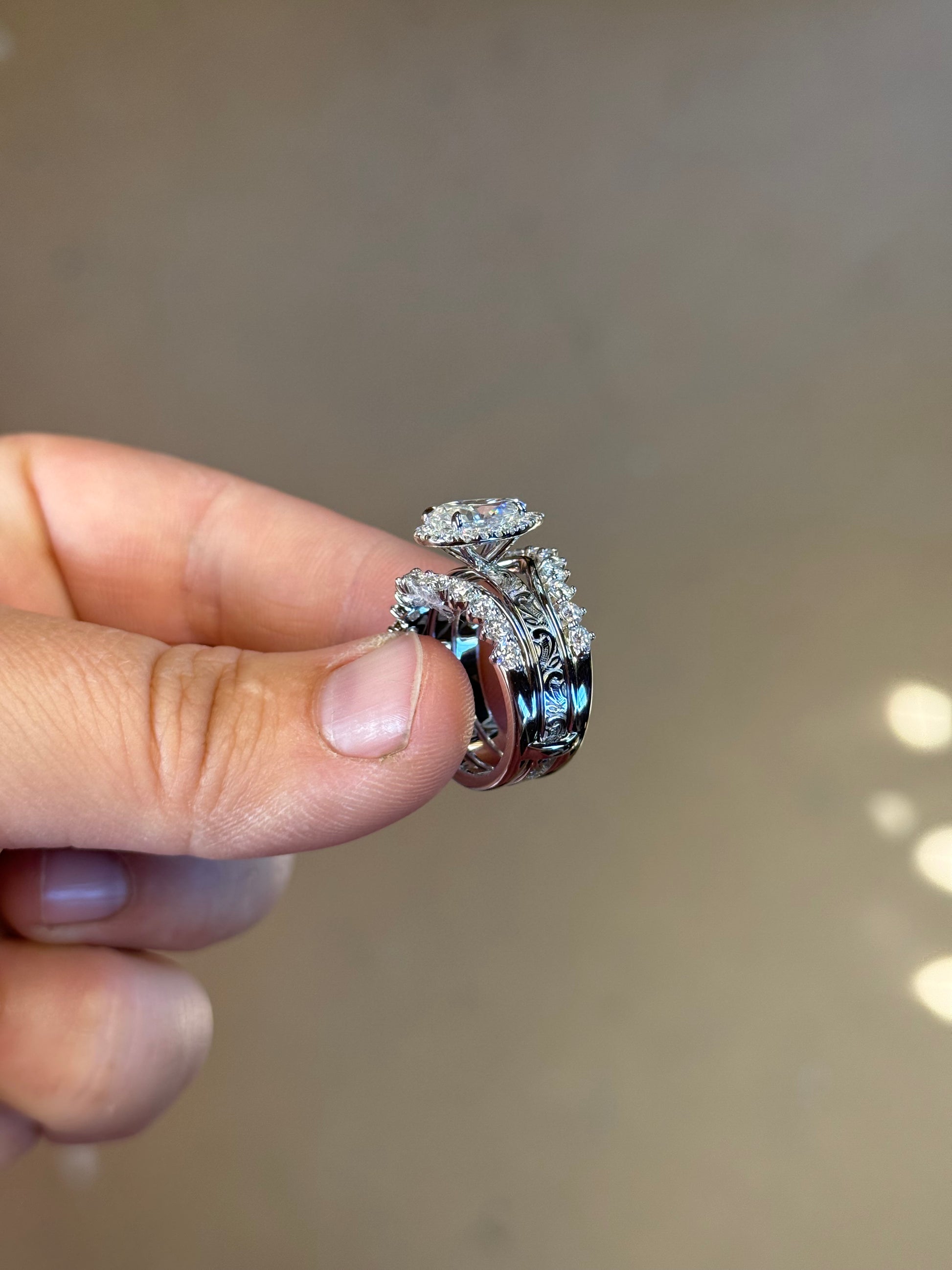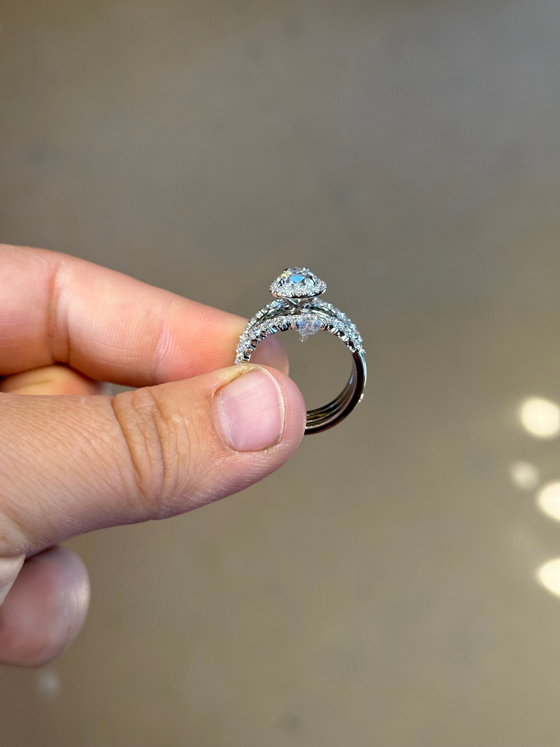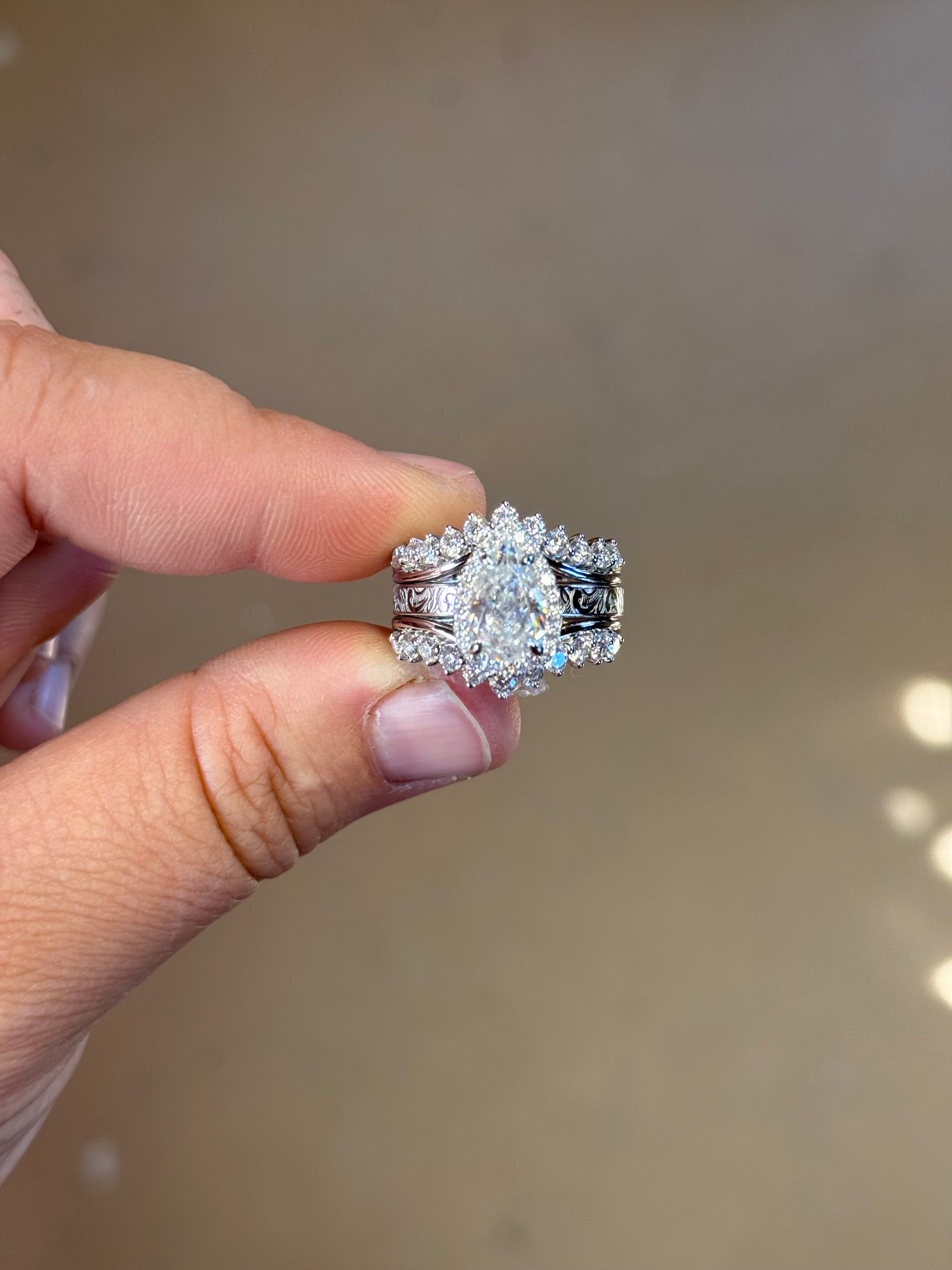 3ct Pear Cut Moissanite Danner Engagement Ring with 1 Danette Insert Wedding Band 2 RINGS TOTAL