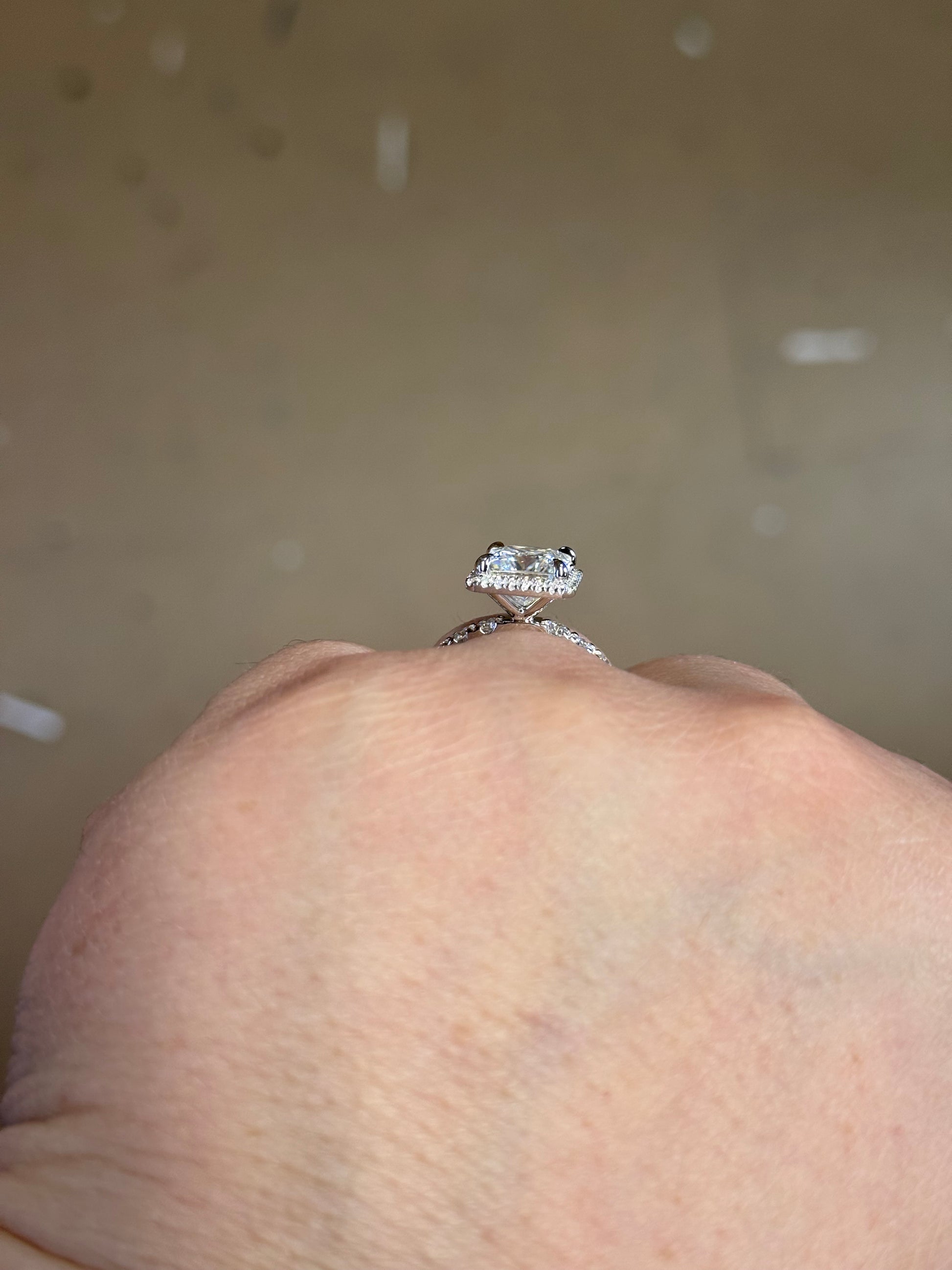 3ct Radiant Cut Moissanite Halo with 3mm Channel Pattern Band