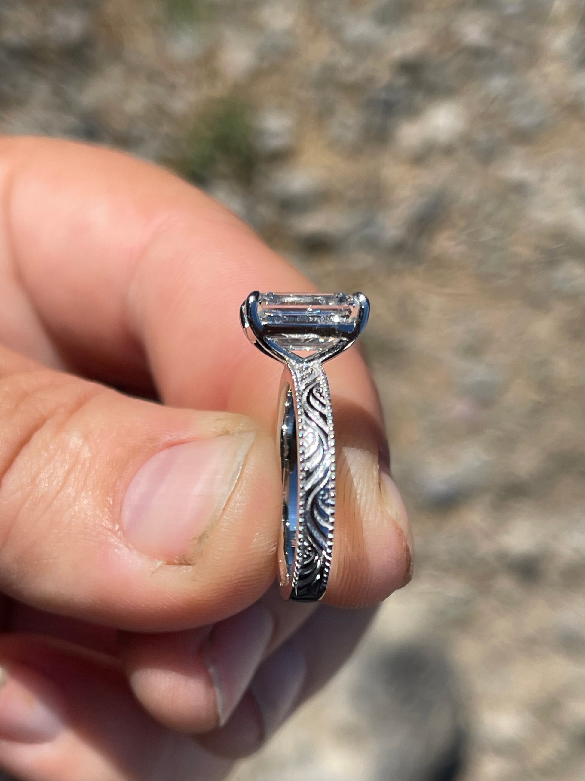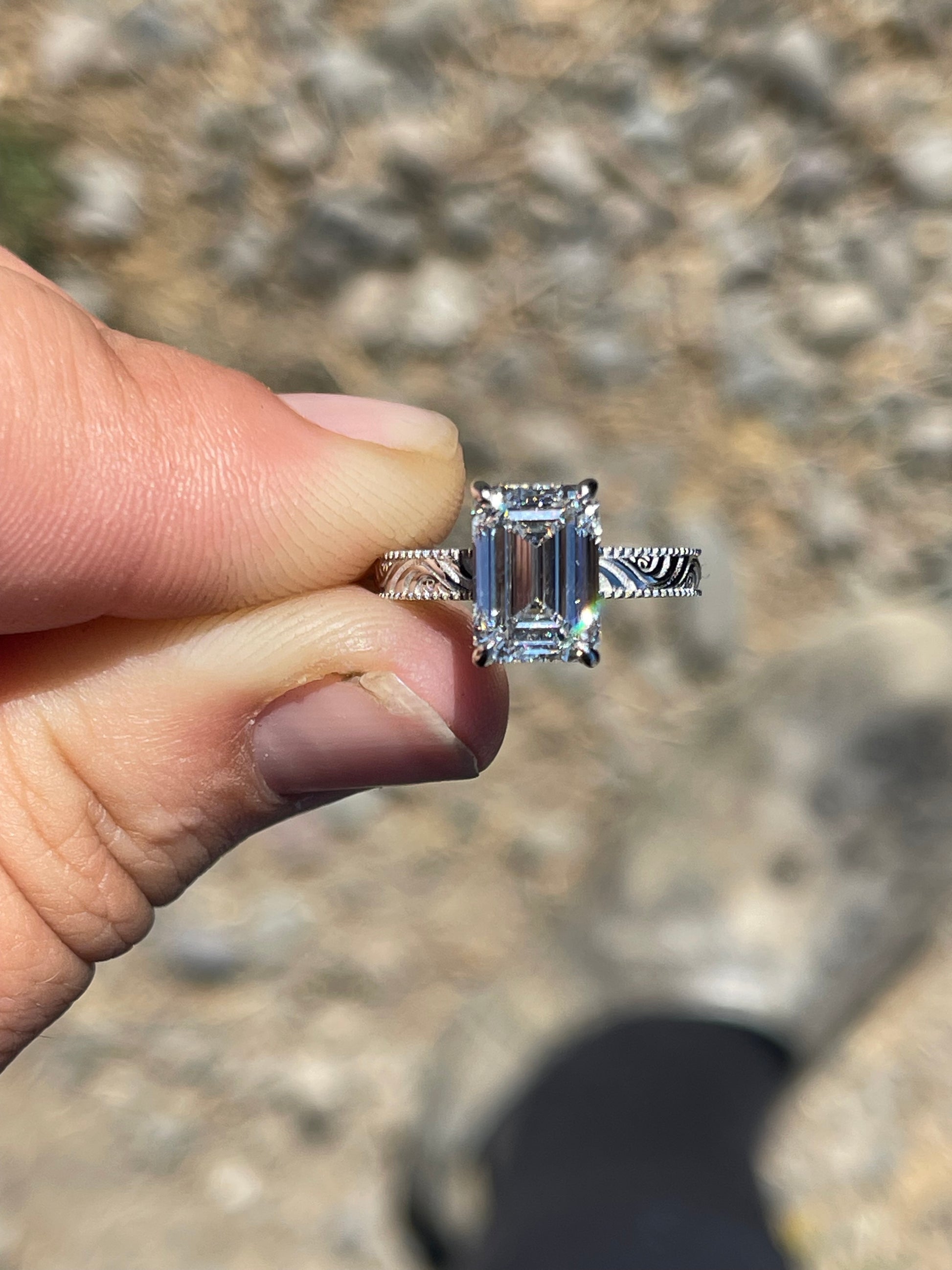 3ct Emerald Cut Lab Diamond with 3mm Pattern Band