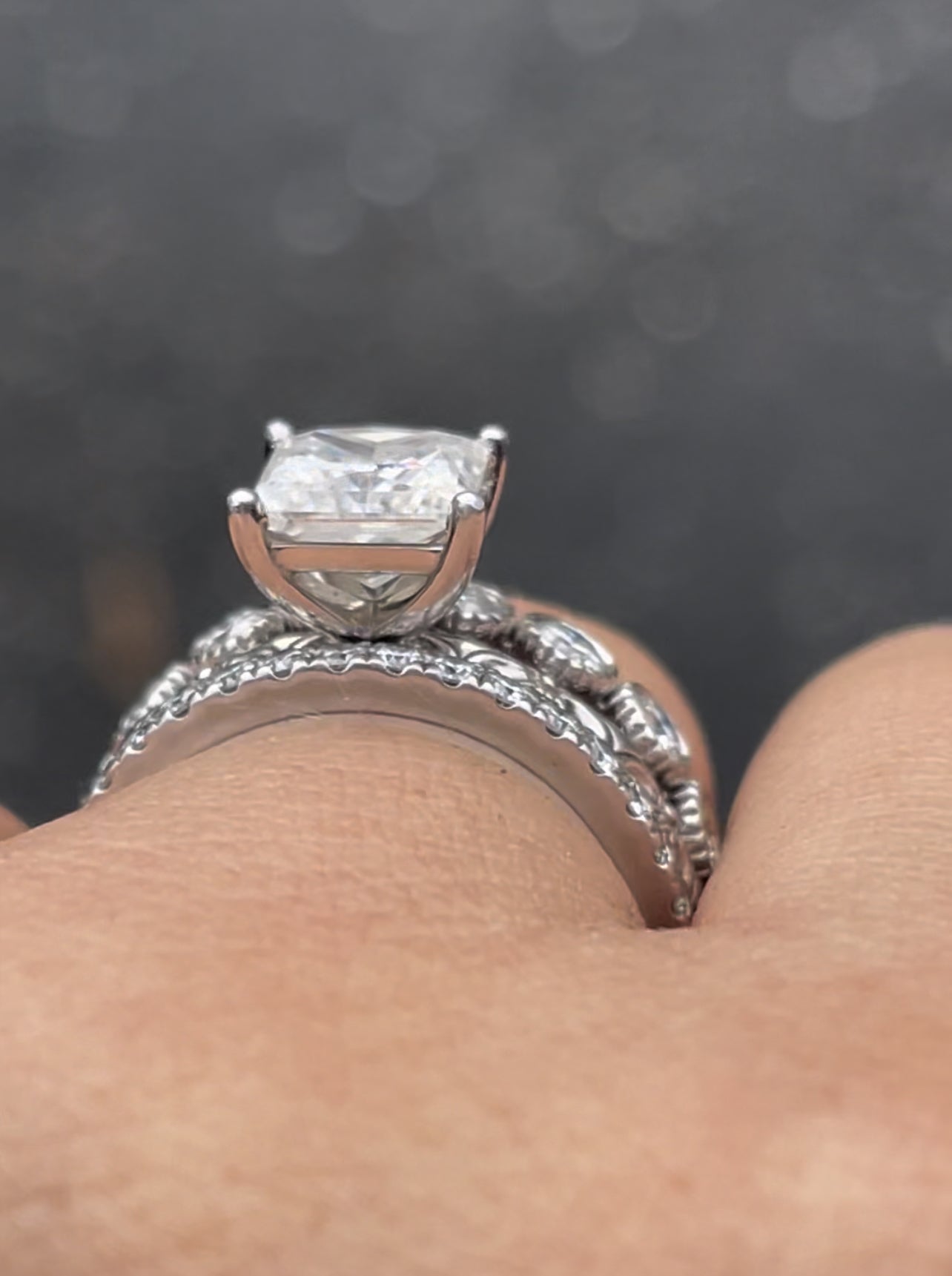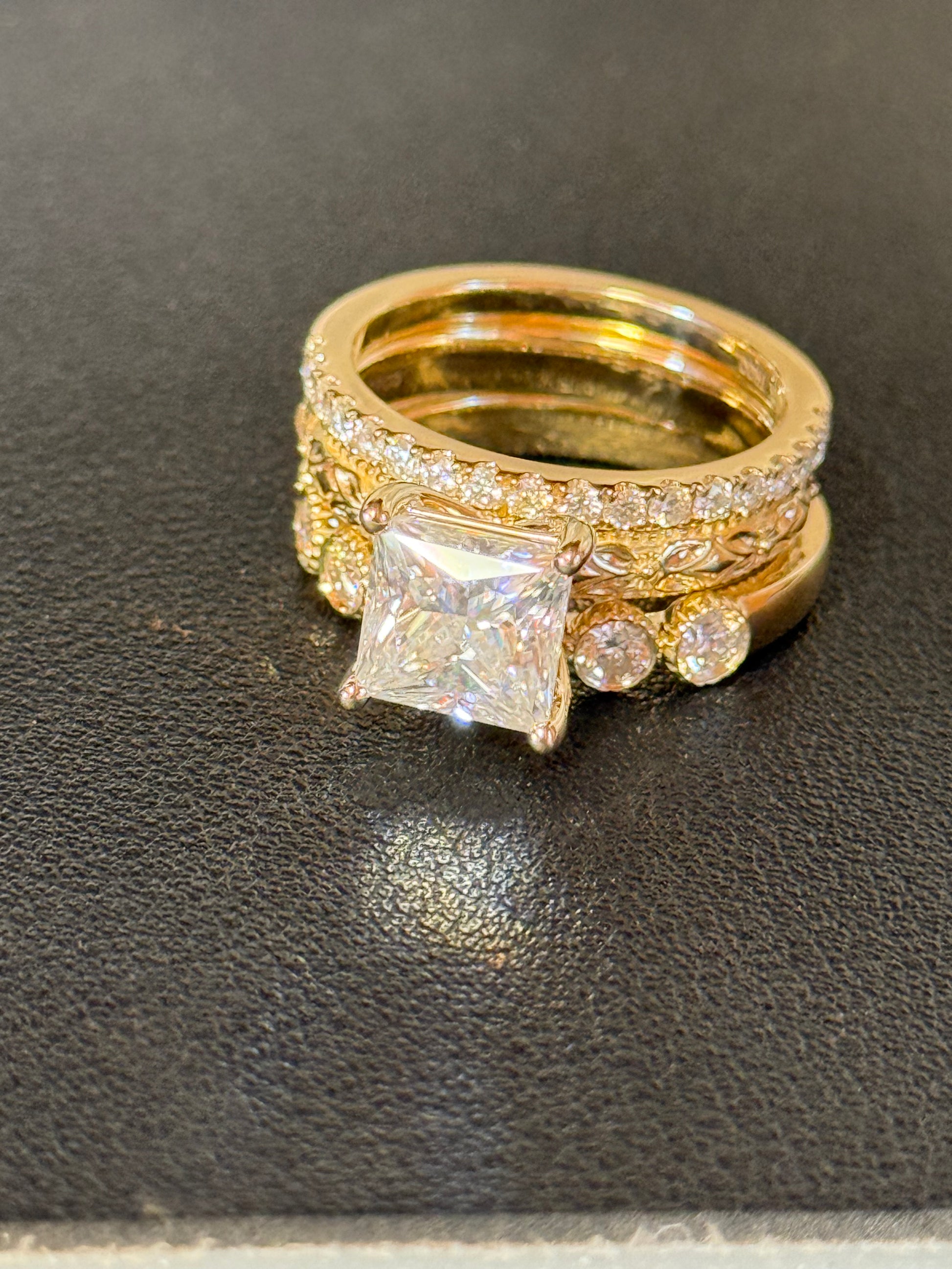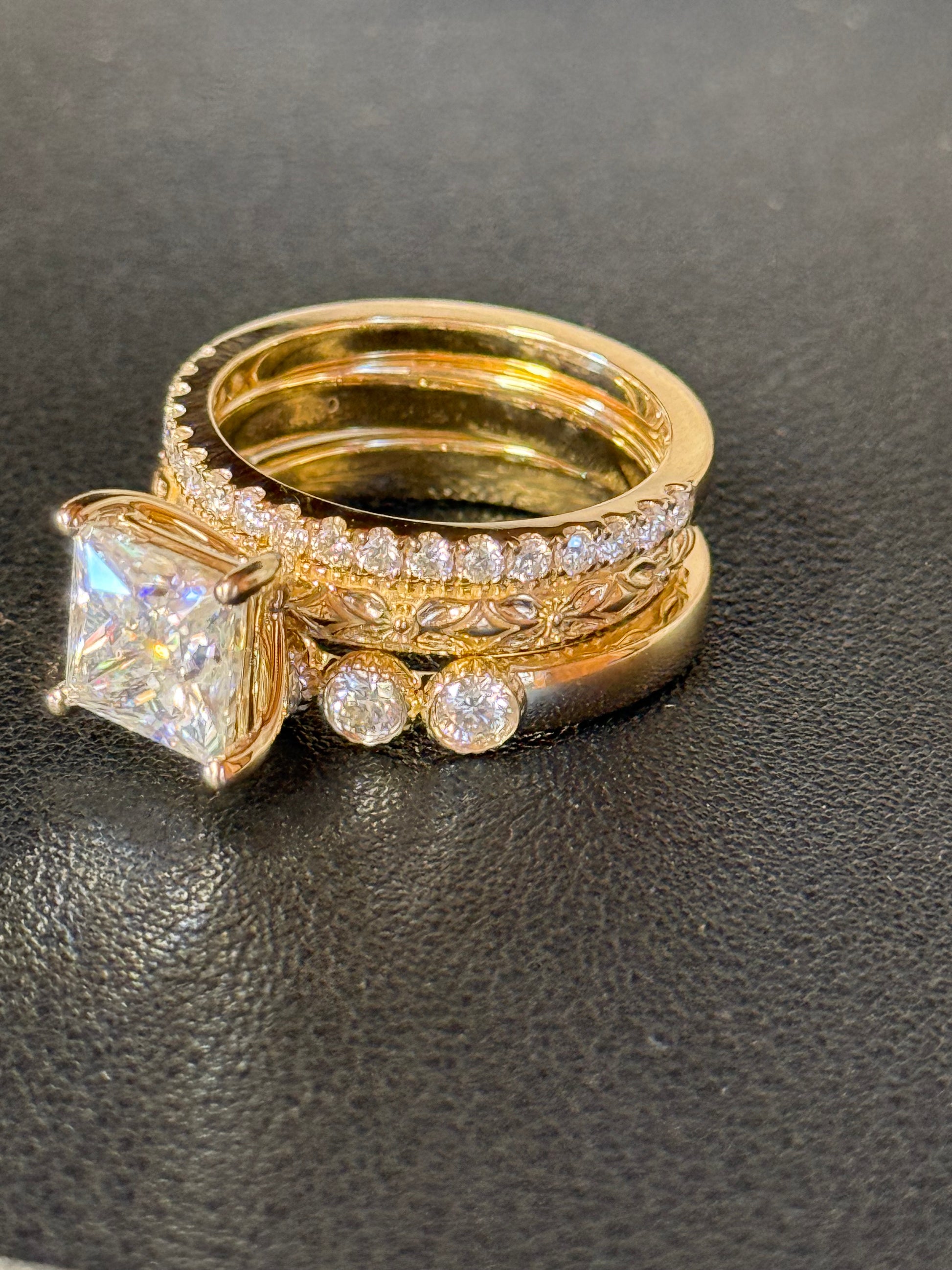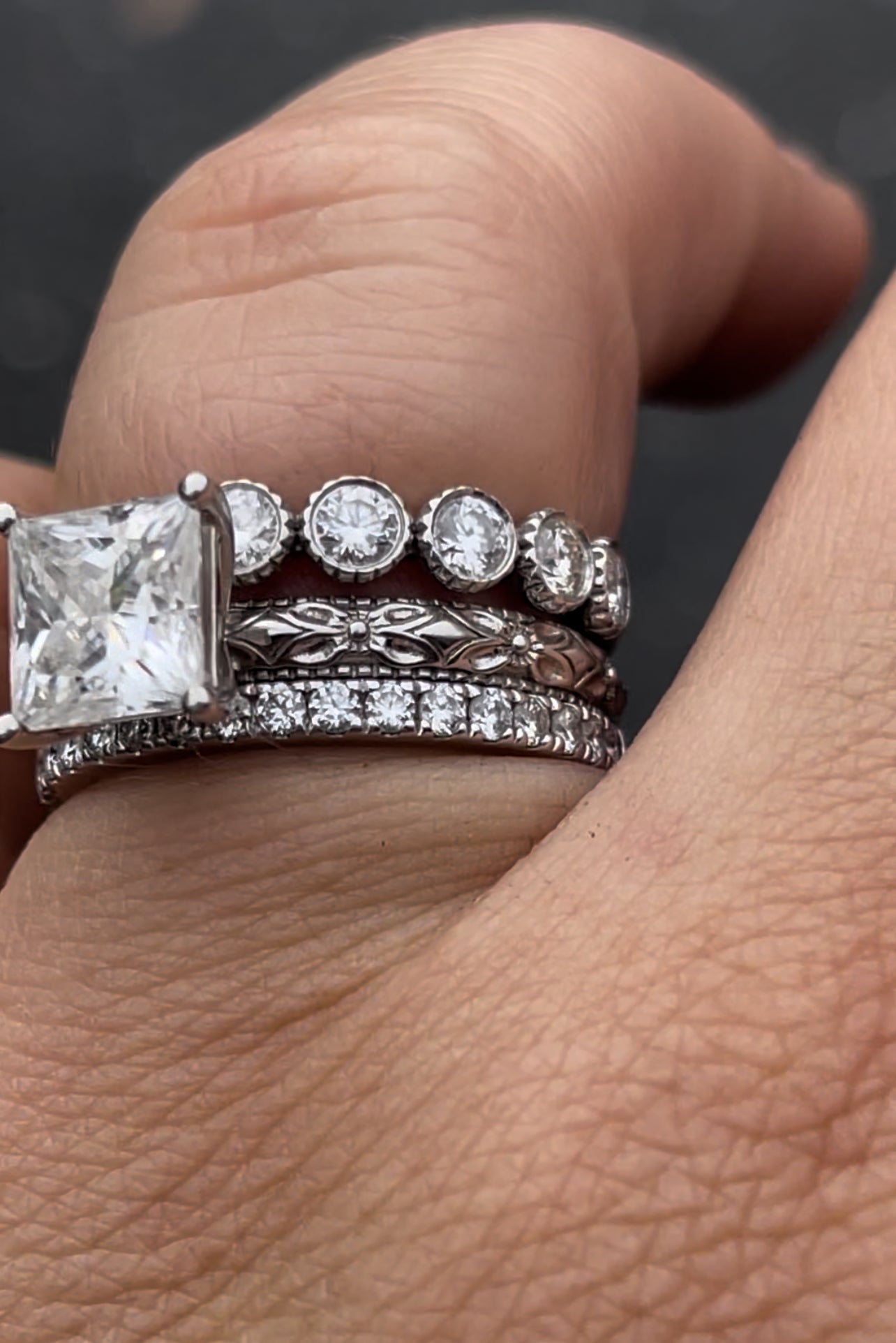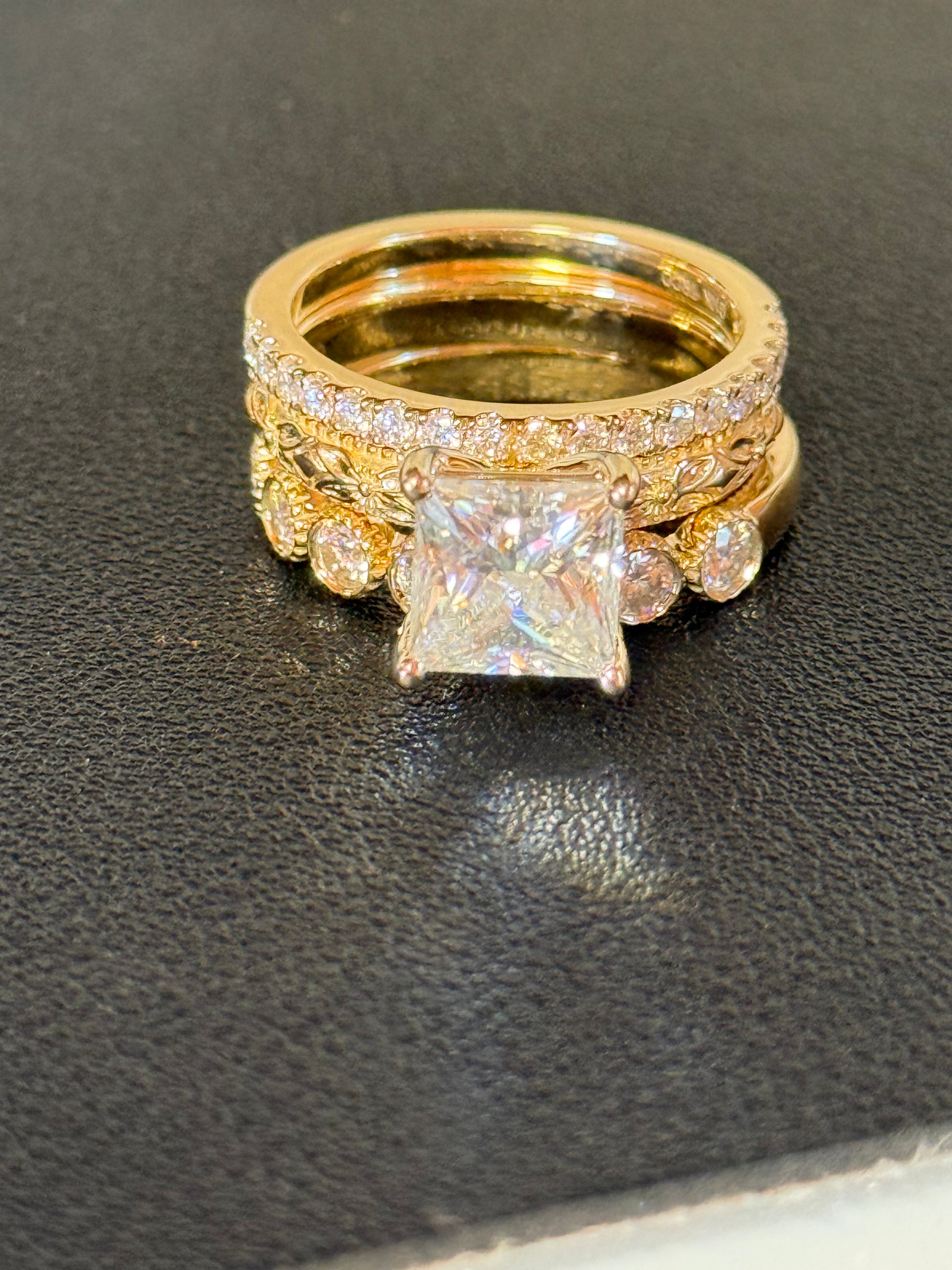 3CT Princess Cut Moissanite Ember Engagement Ring with 1 Rylee Band & 1 Minnie 7 Stone Band- SET OF 3 RINGS TOTAL