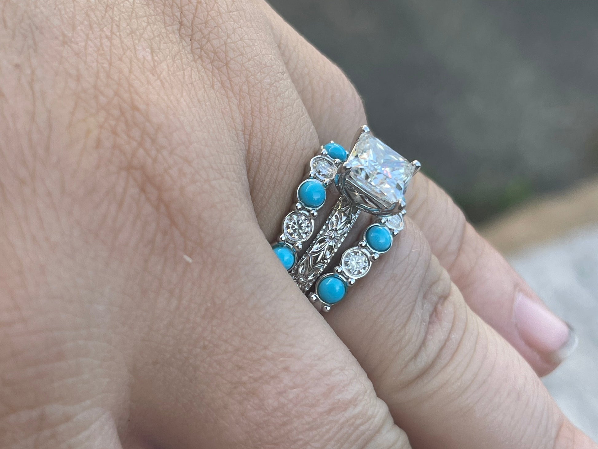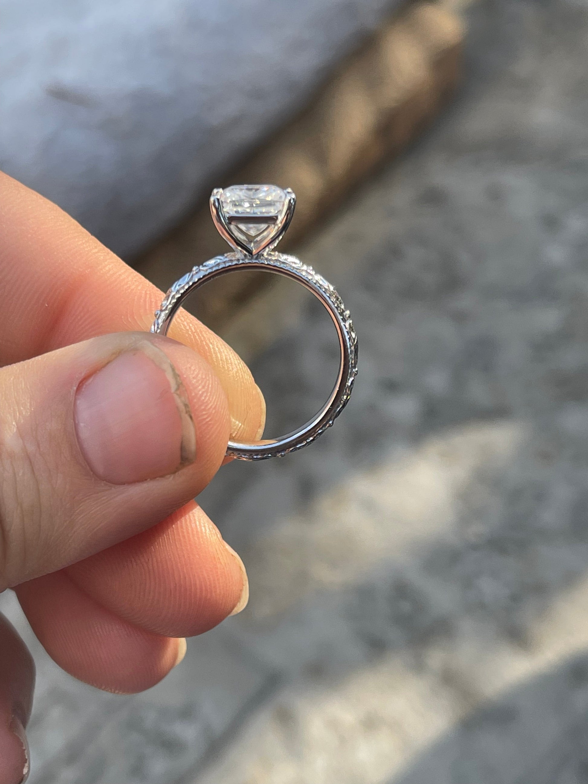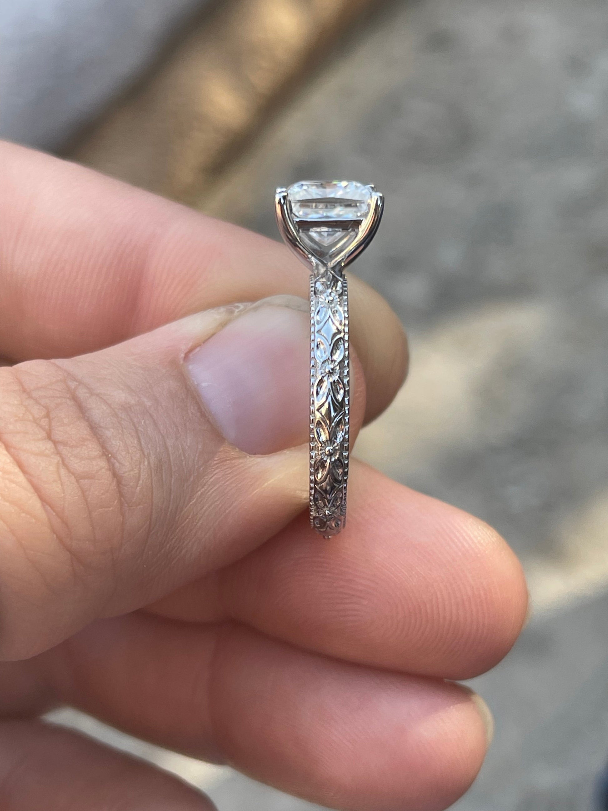 2.5ct Princess Cut Moissanite 7.5*7.5mm with 3mm Pattern Band
