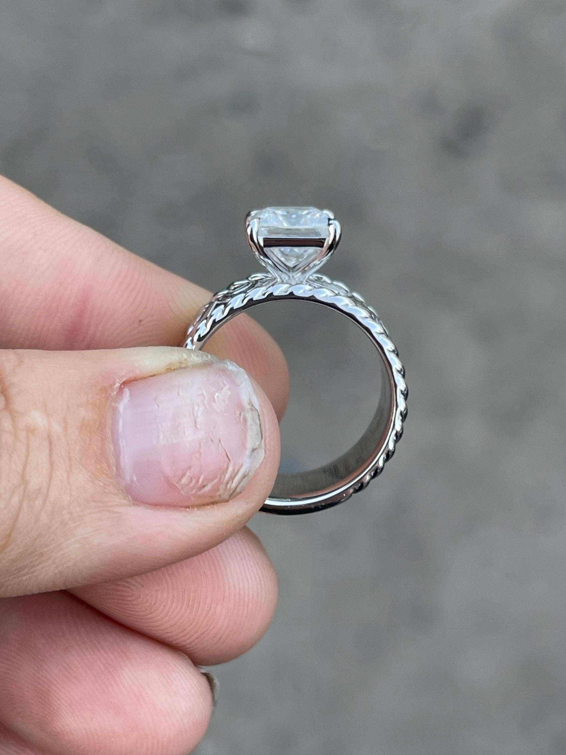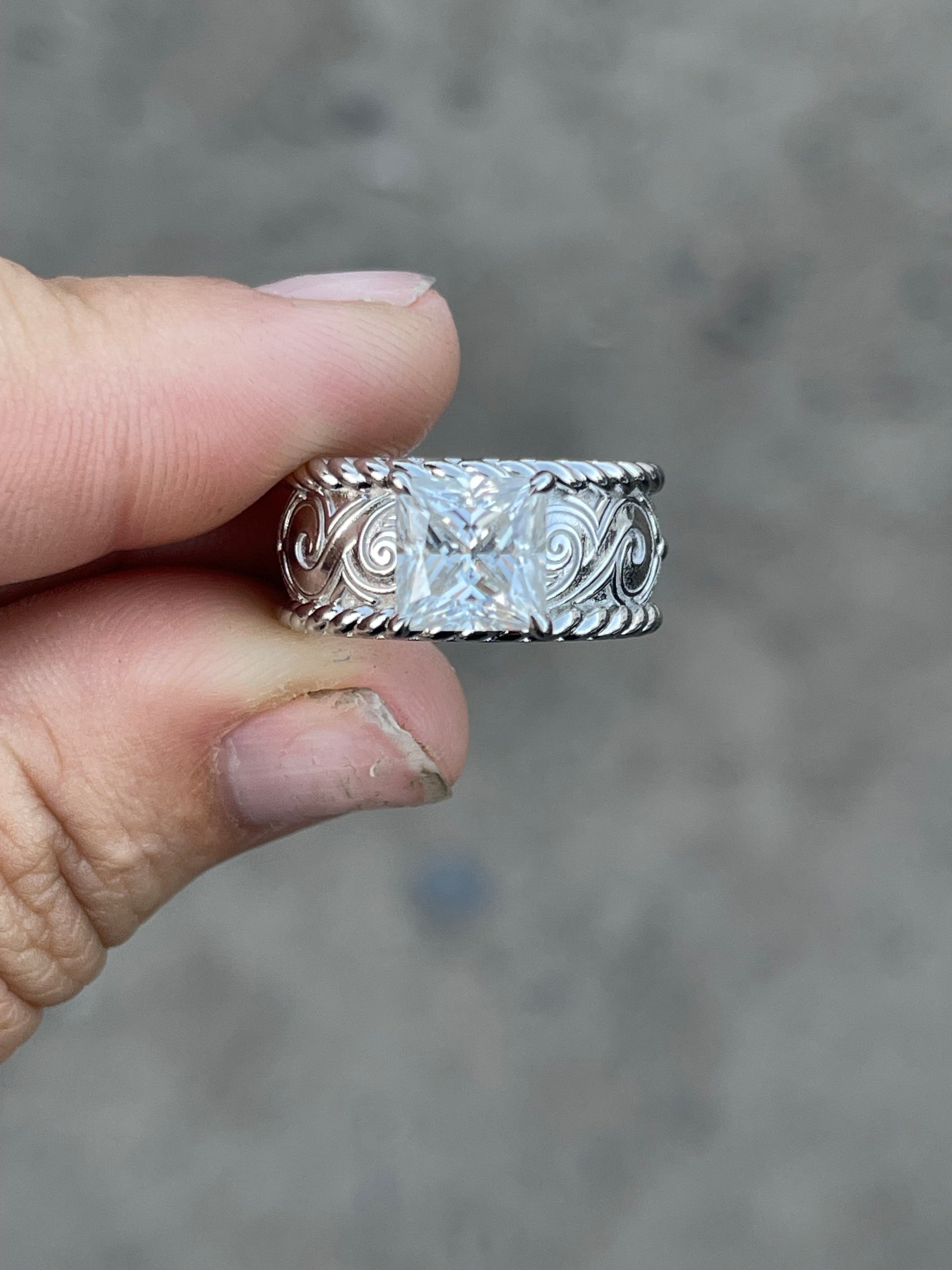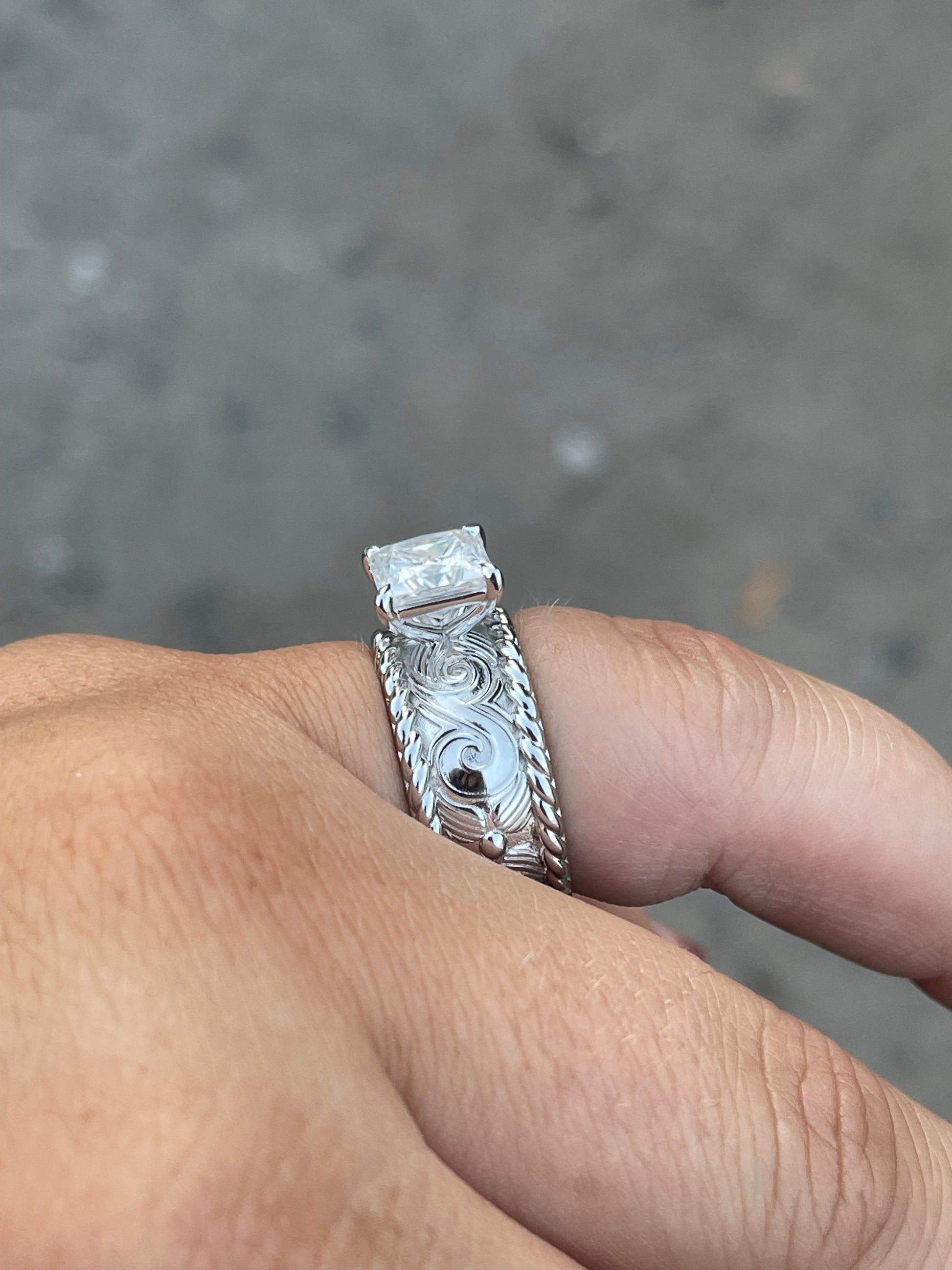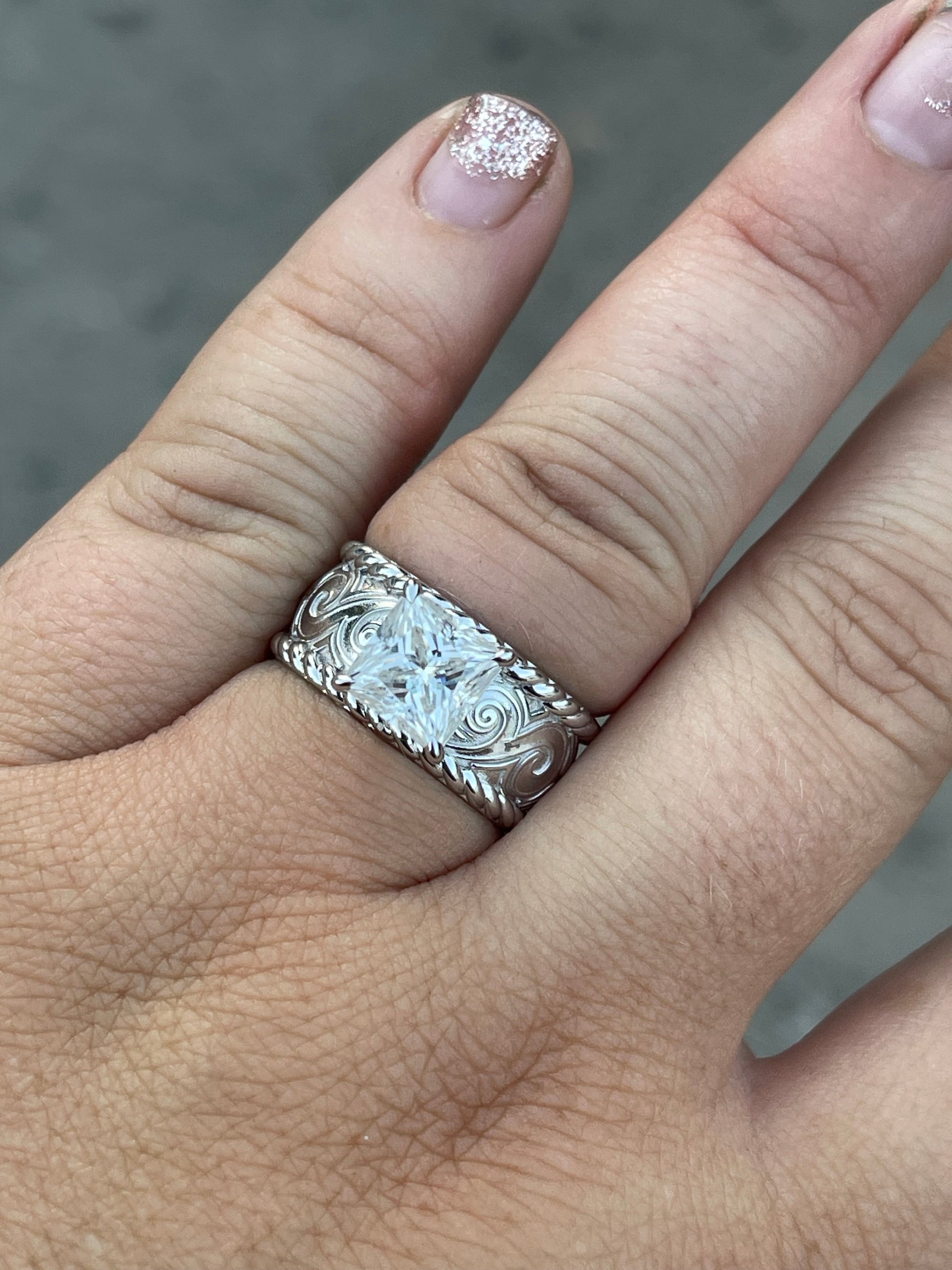 3ct Princess Cut Moissanite with 8mm Pattern Band