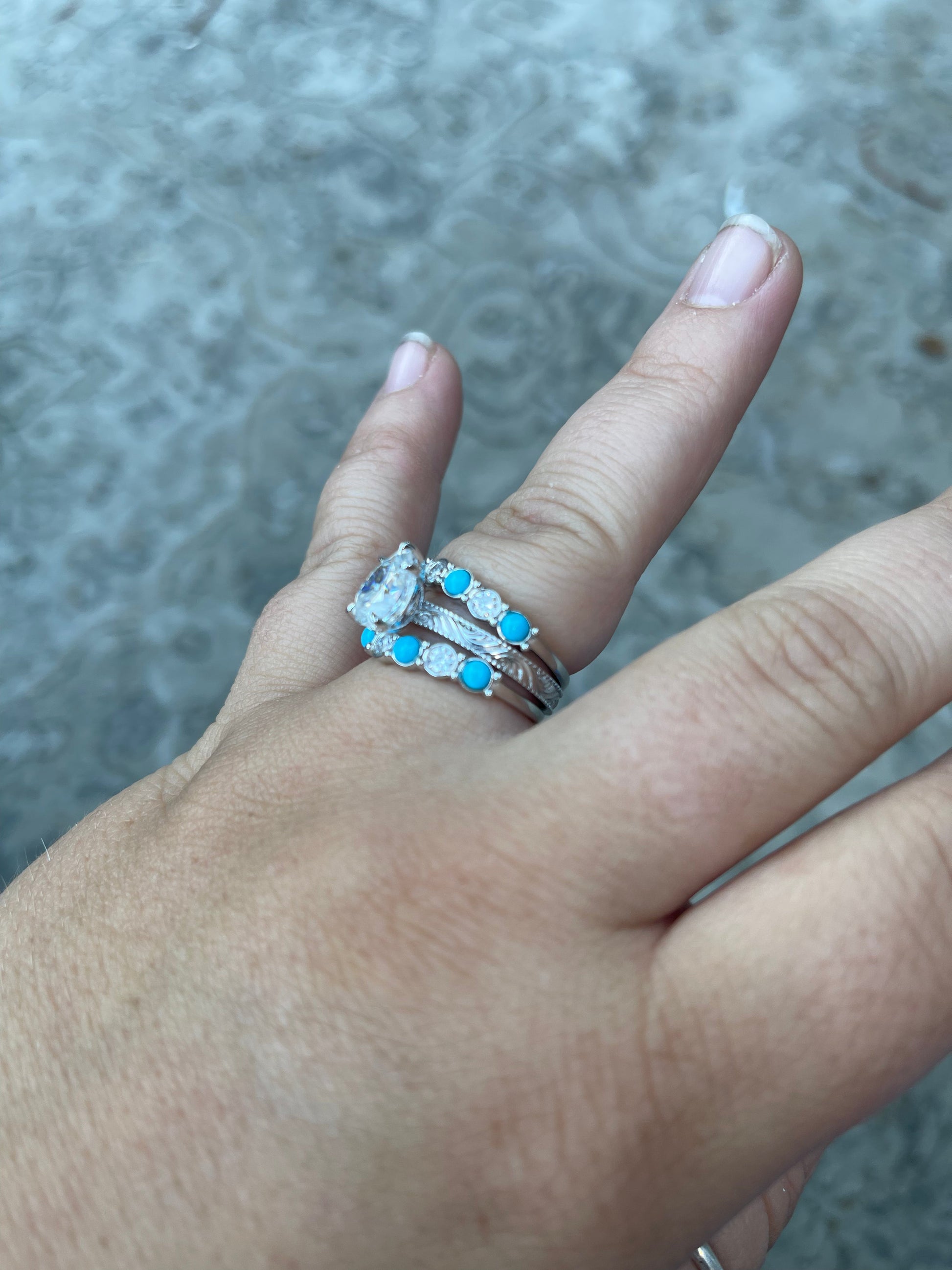 **Sterling Silver can react with chemicals found in air and produce tarnish and oxidize; high moisture levels, exposure to sunlight and contaminants such as salt water increase this reaction. Properly care for ring by polishing with polish & a clean cotton cloth.
