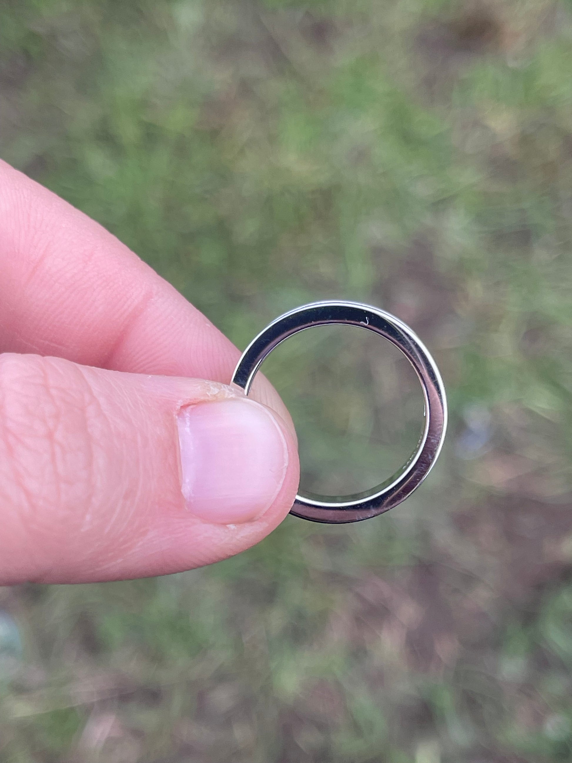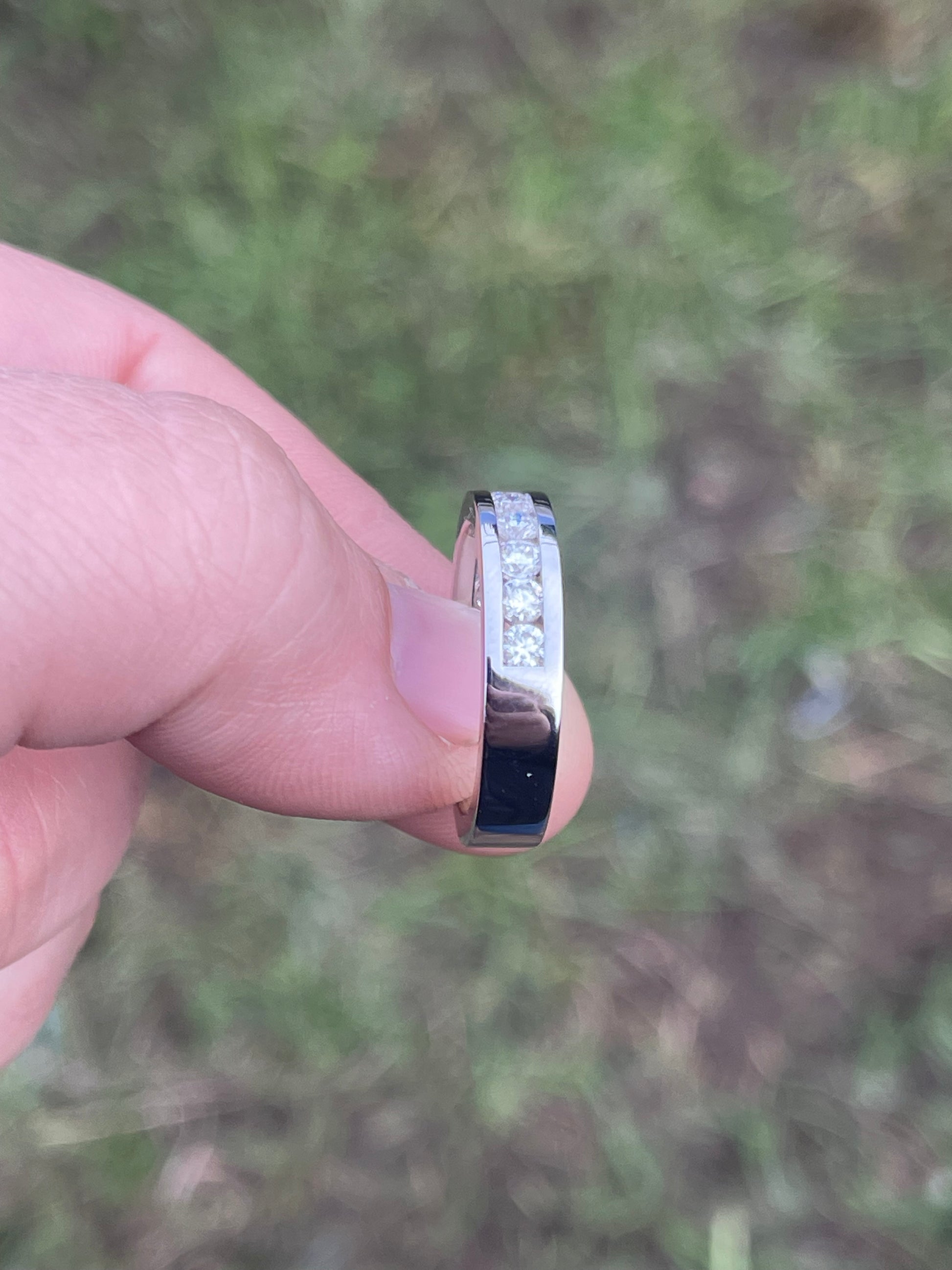 **Sterling Silver can react with chemicals found in air and produce tarnish and oxidize; high moisture levels, exposure to sunlight and contaminants such as salt water increase this reaction. Properly care for ring by polishing with polish & a clean cotton cloth.