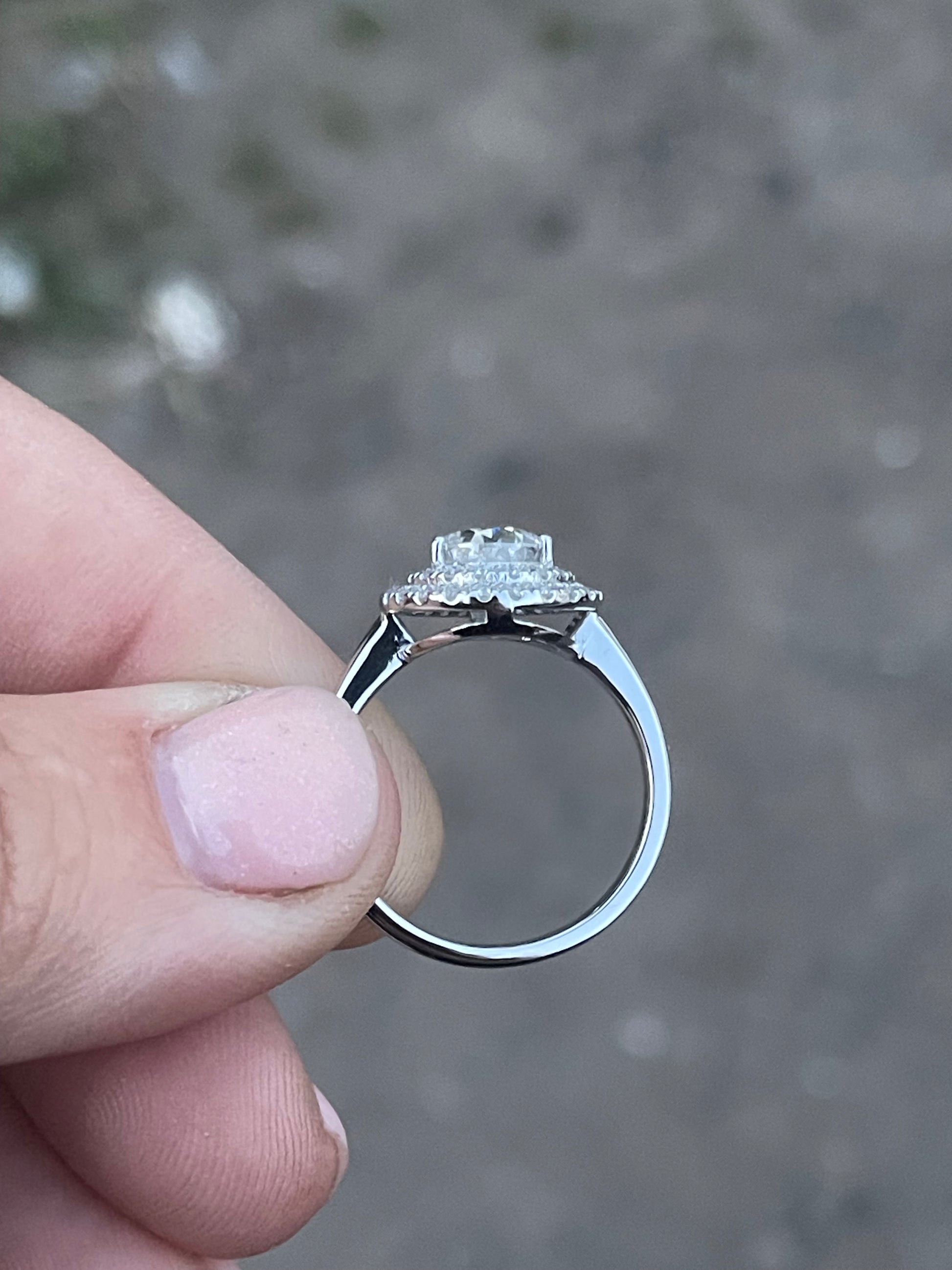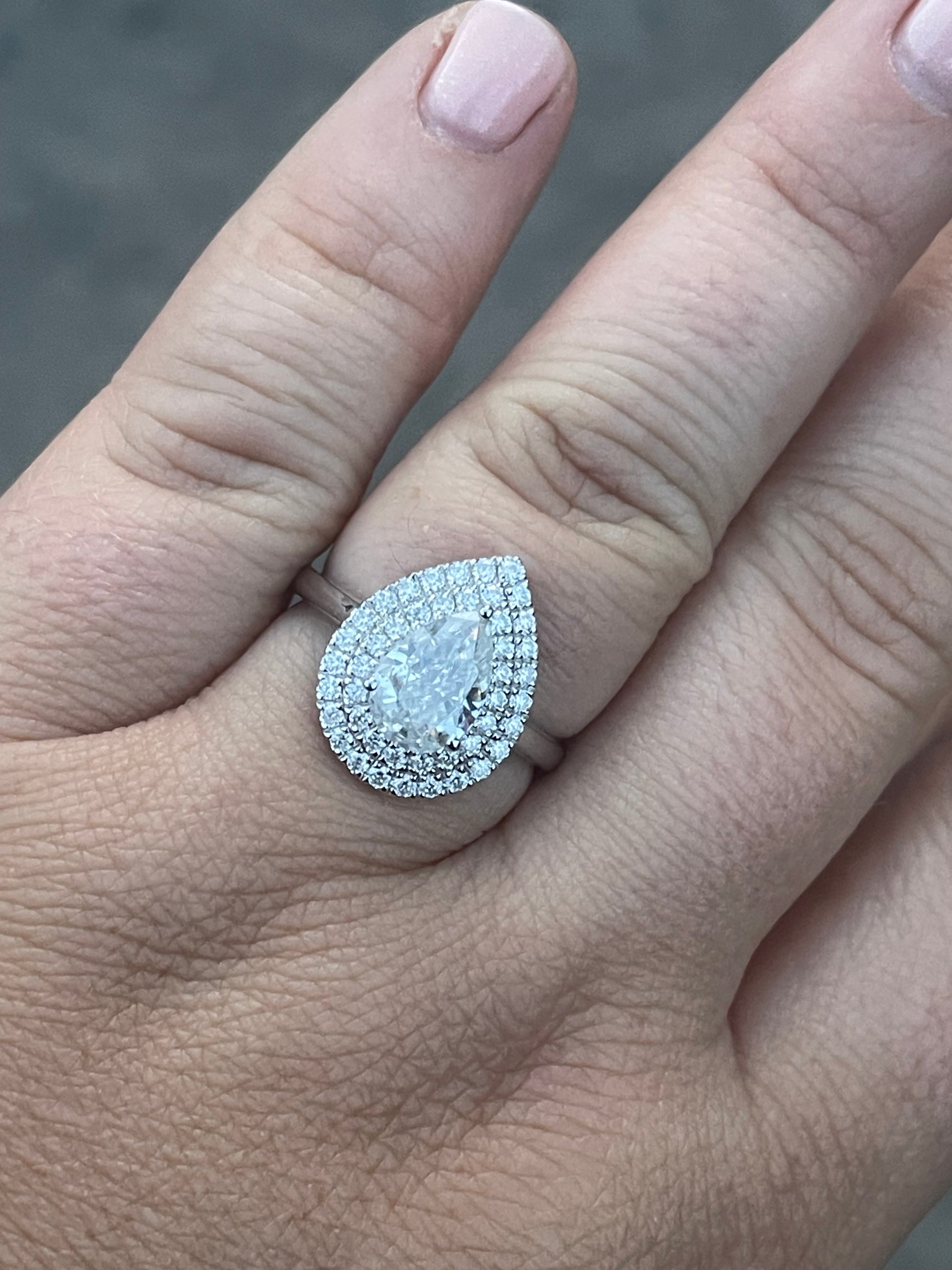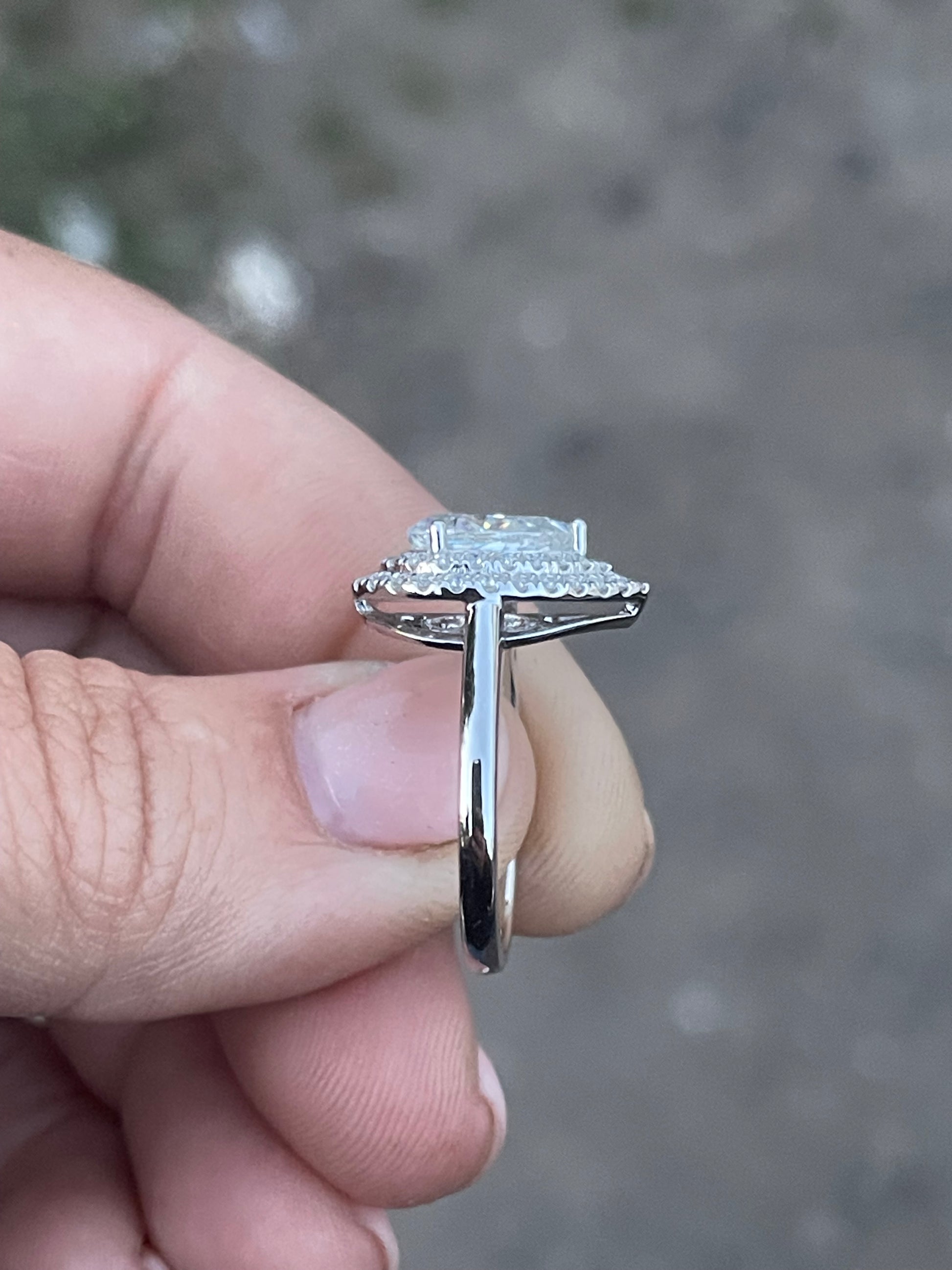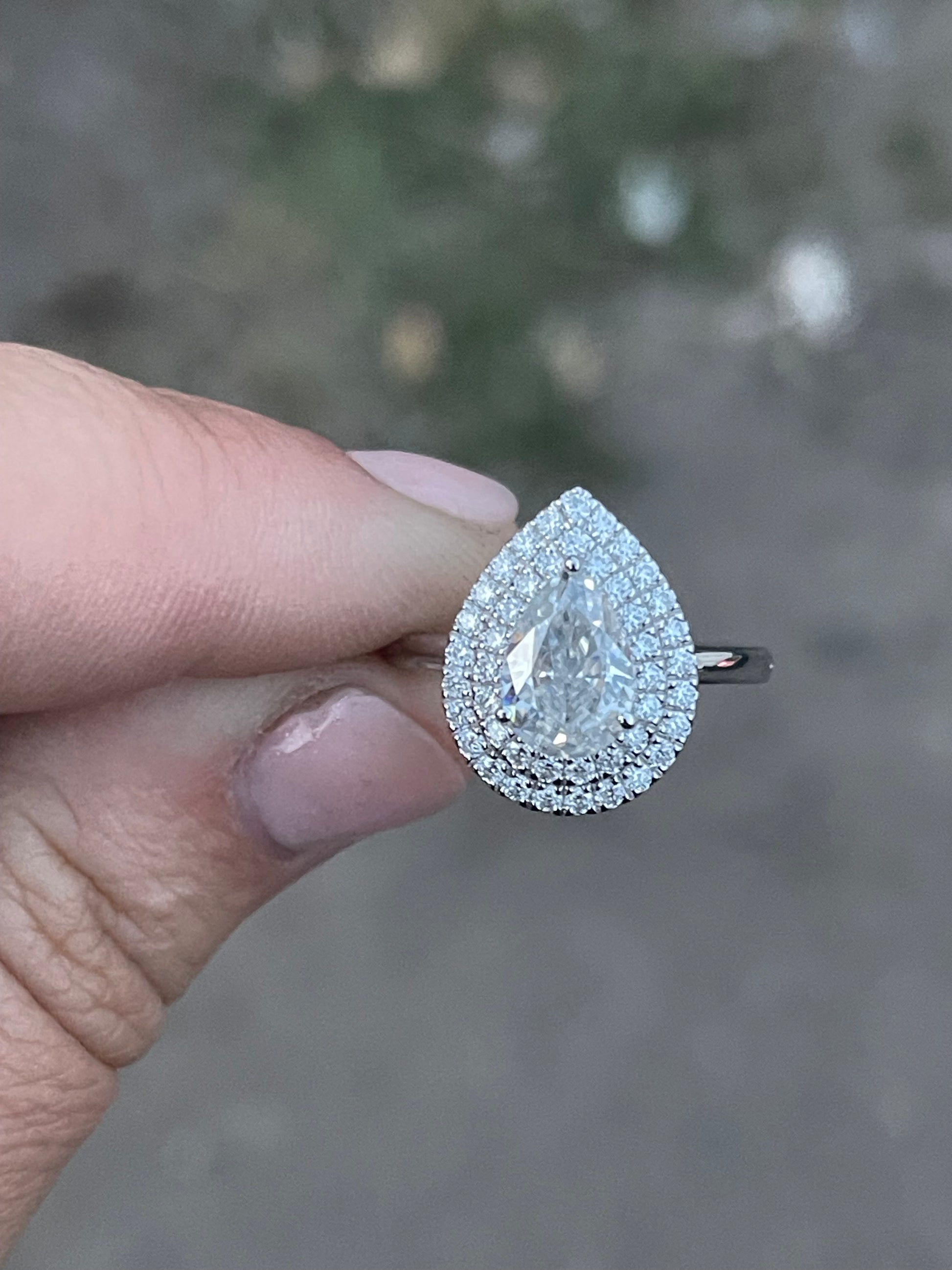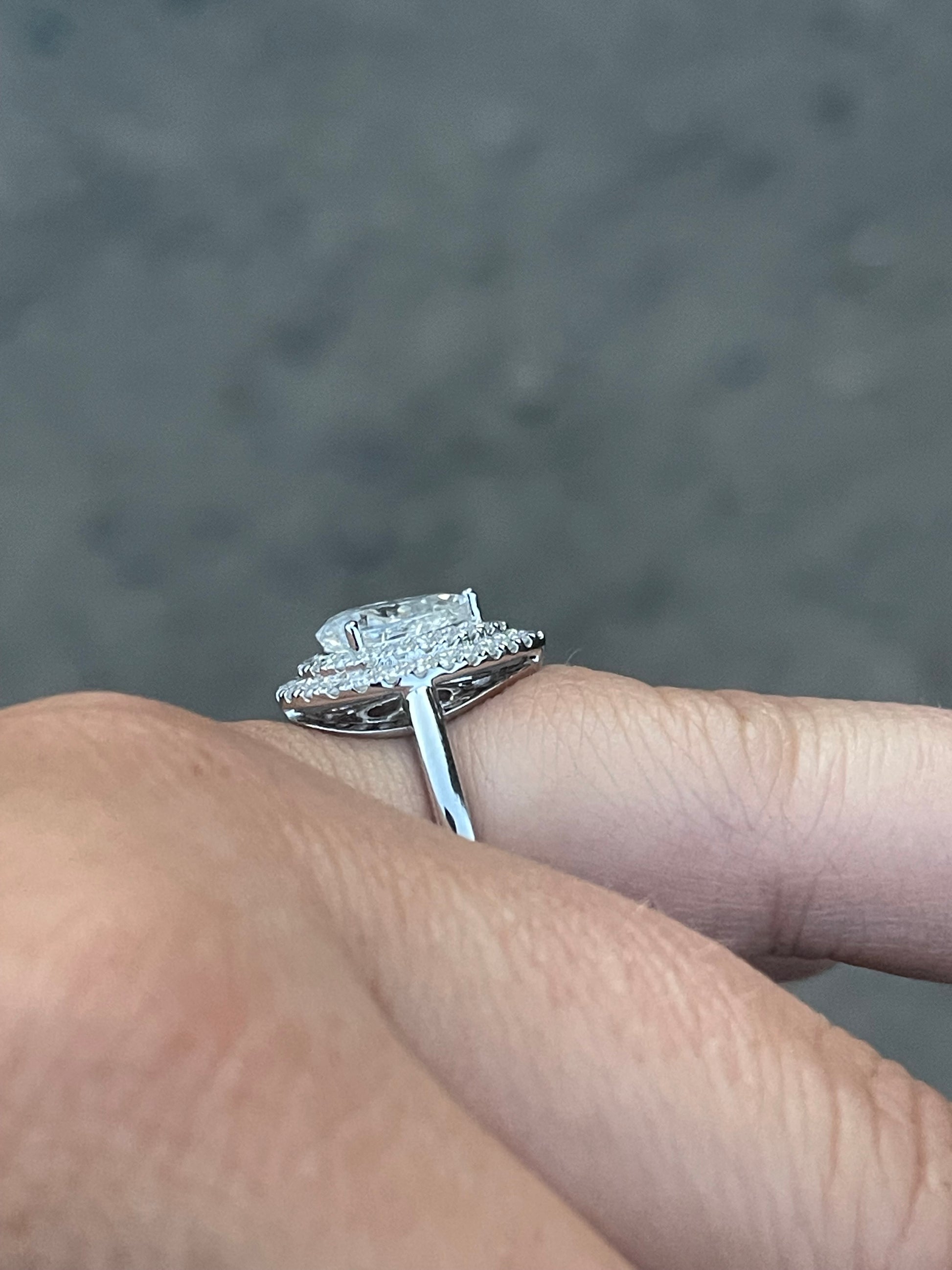 3ct Pear Cut Moissanite Center Stone with Halo and 3mm Band