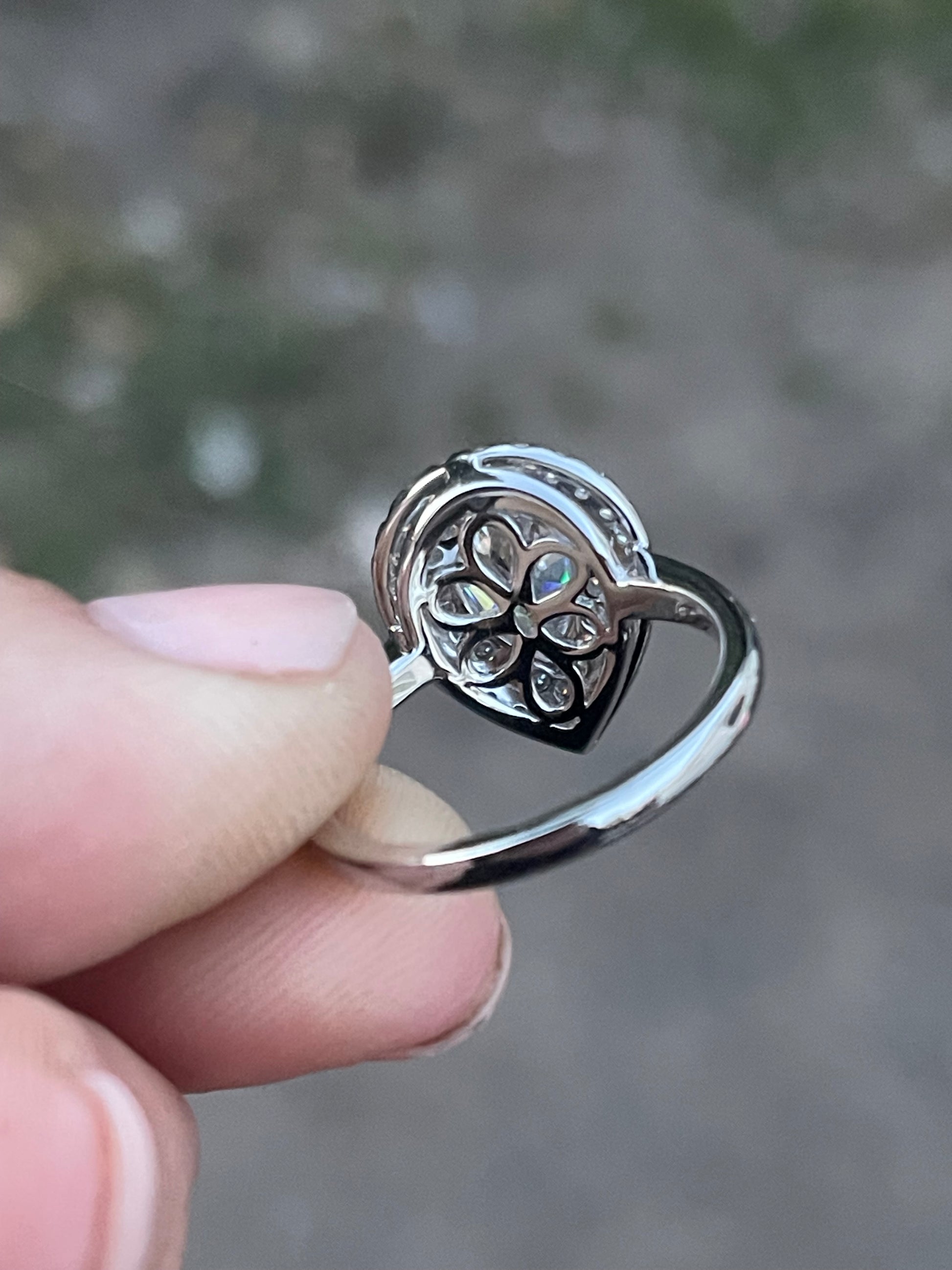 **Sterling Silver can react with chemicals found in air and produce tarnish and oxidize; high moisture levels, exposure to sunlight and contaminants such as salt water increase this reaction. Properly care for ring by polishing with polish & a clean cotton cloth.