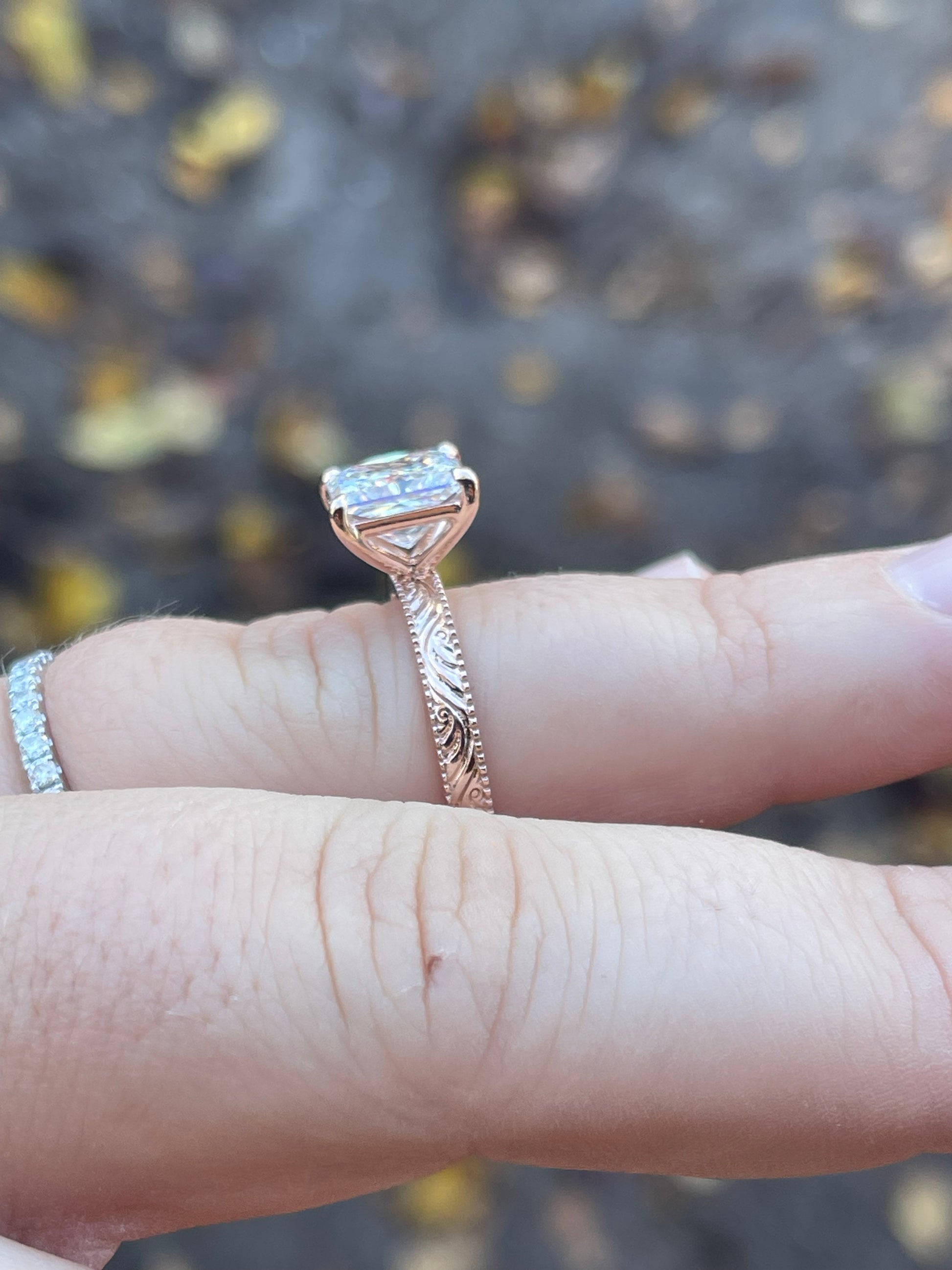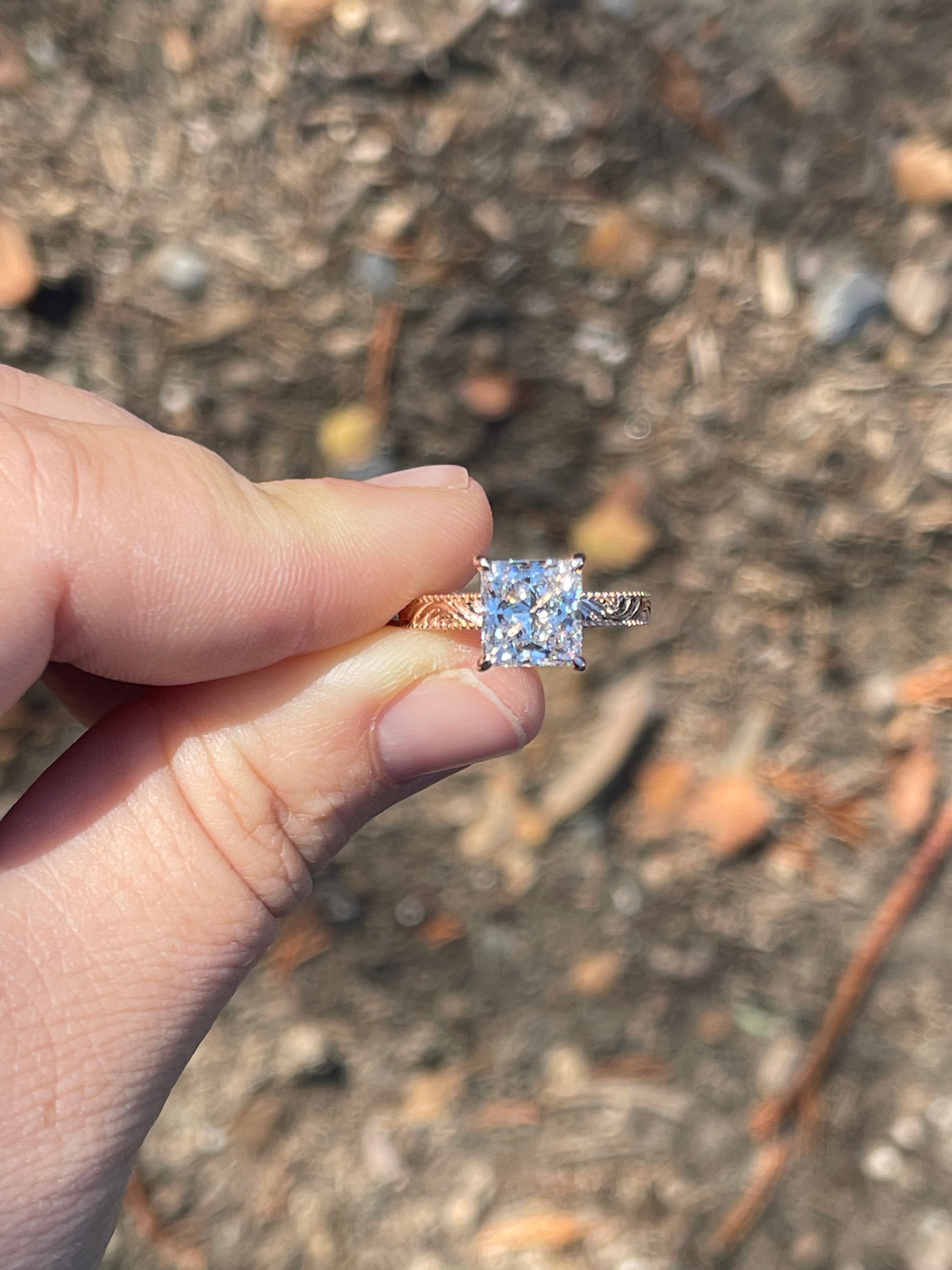 3ct Princess Cut Lab Diamond with Pattern Band