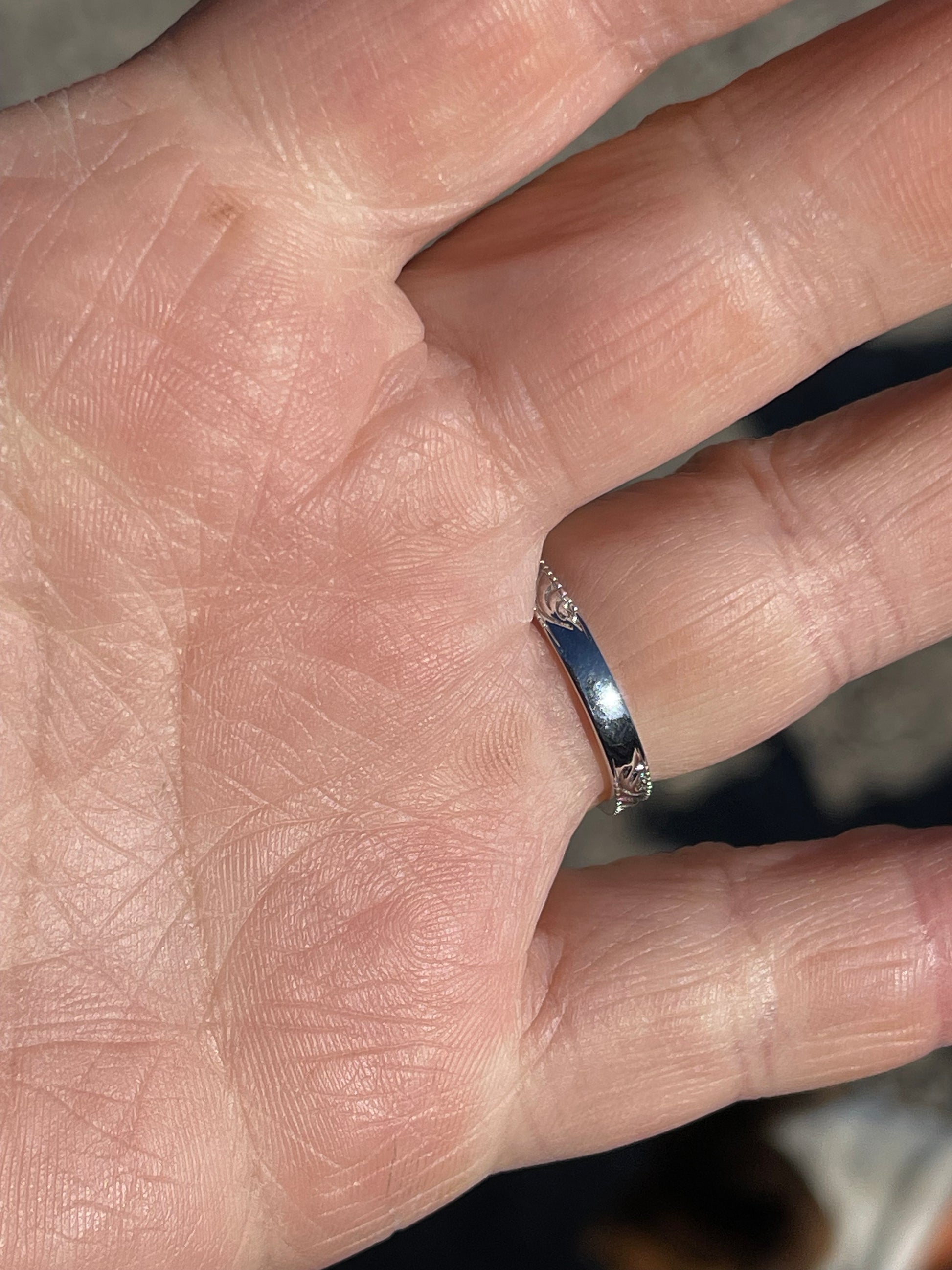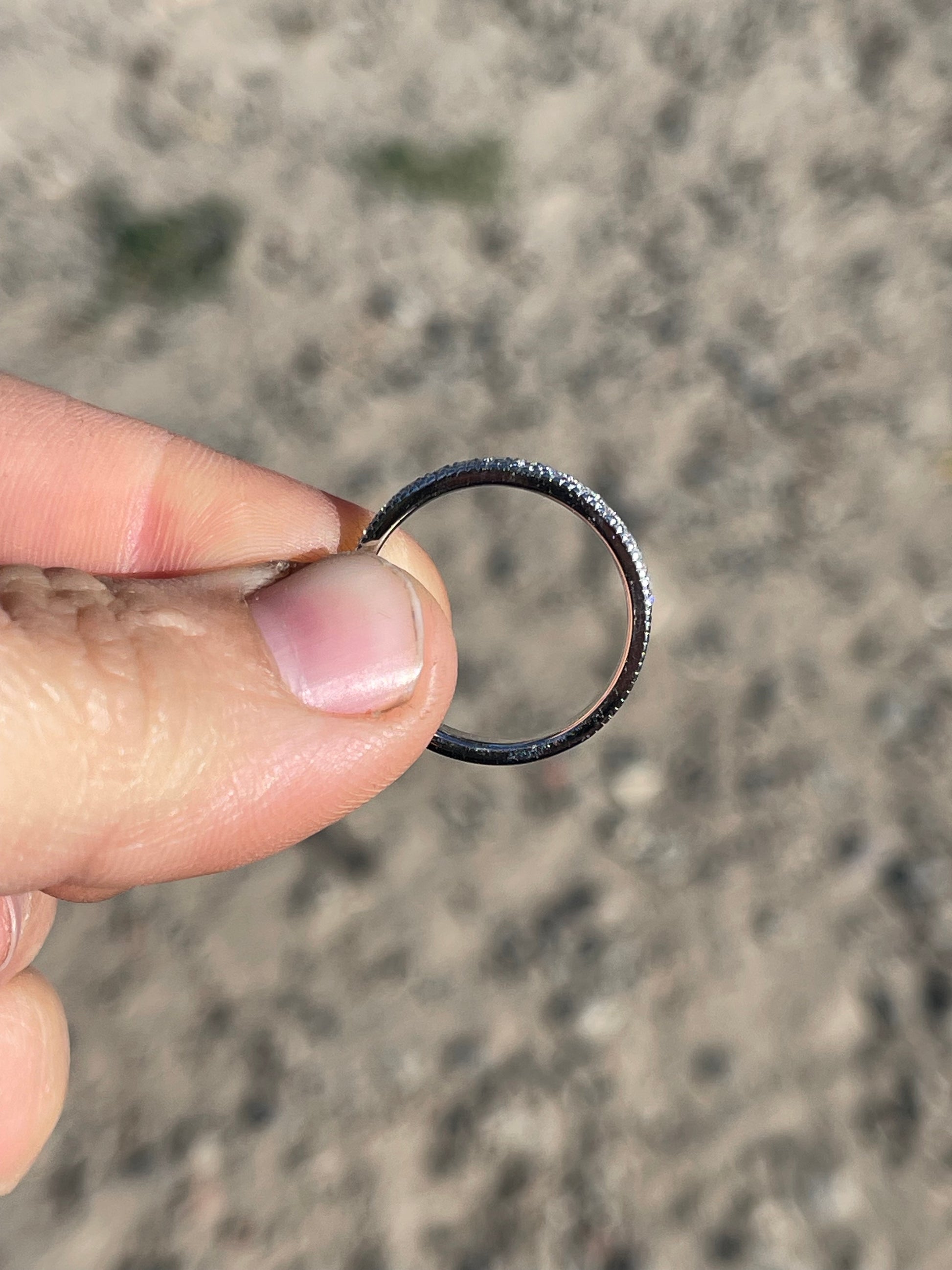 **Gold can react with chemicals found in air and produce tarnish; high moisture levels, exposure to sunlight and contaminants such as salt water increase this reaction. Properly care for ring by polishing with sterling silver polish & a clean cotton cloth.