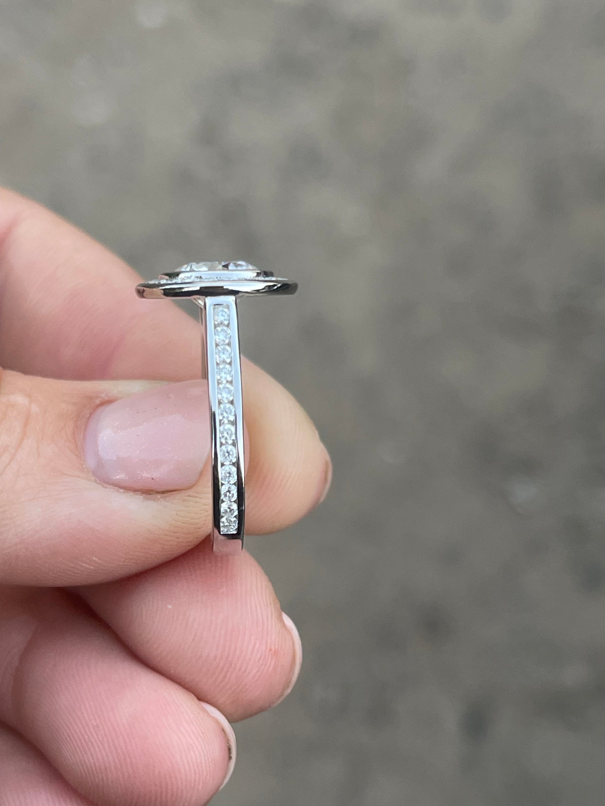 3ct Round Cut Moissanite Halo with 3mm Channel Setting and 3mm Band