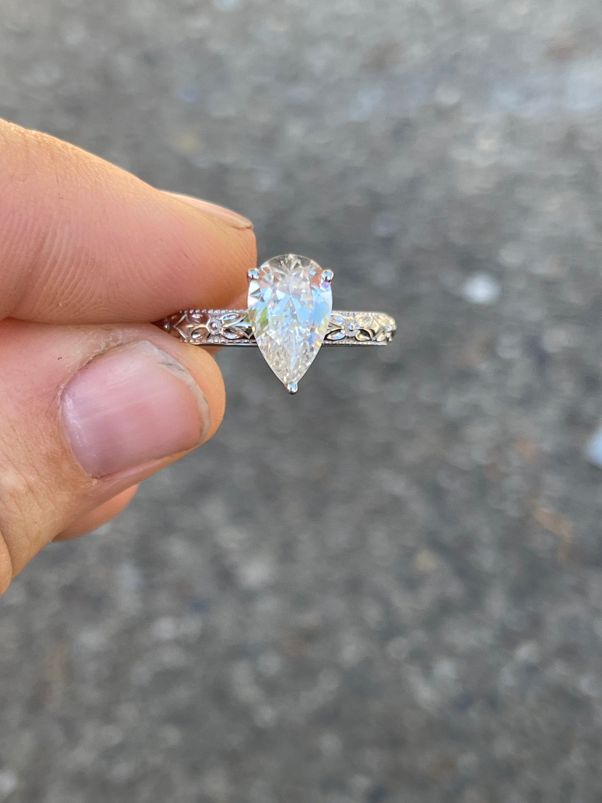 2.5ct Pear Cut Moissanite with 3mm Pattern Band