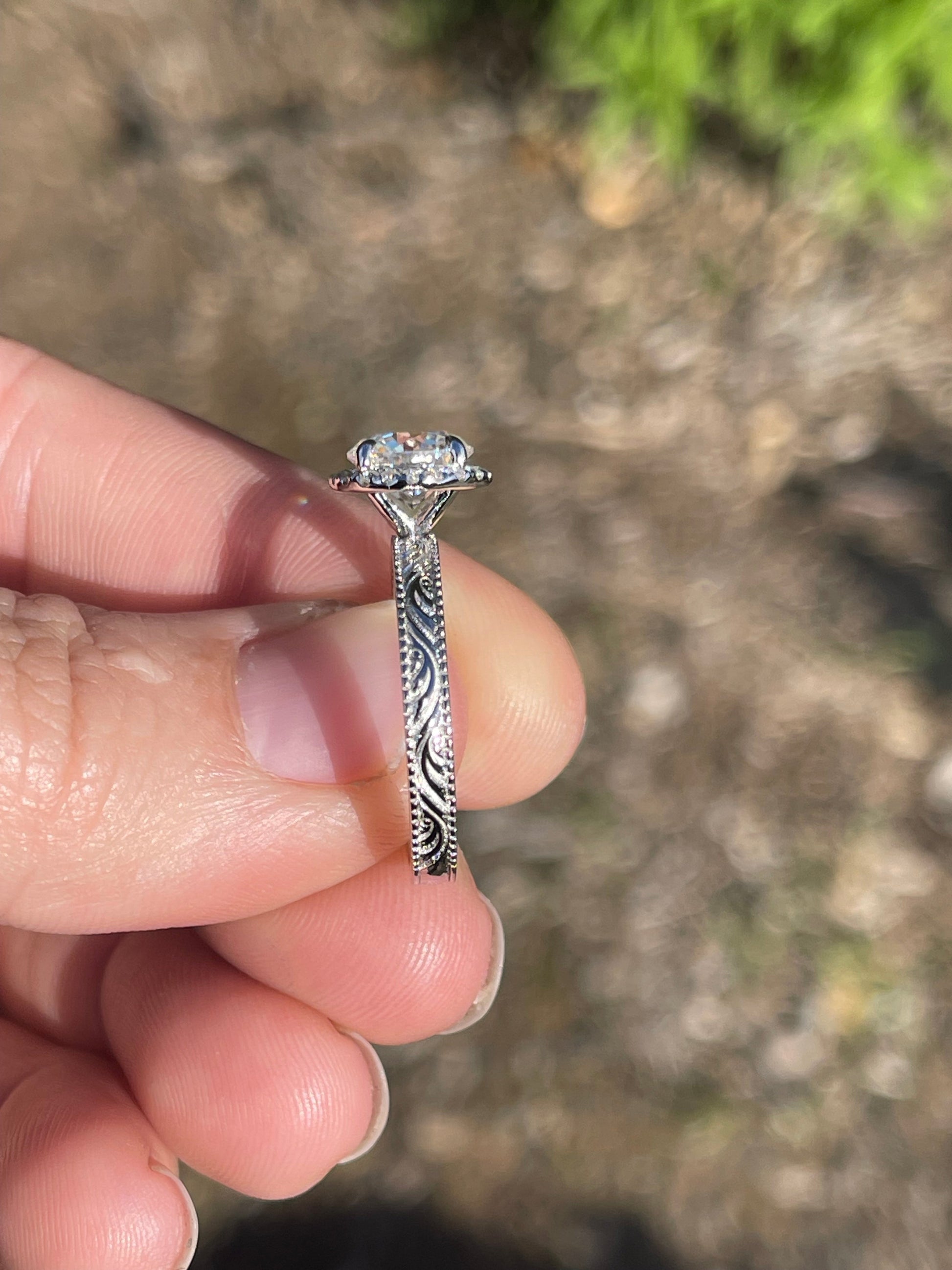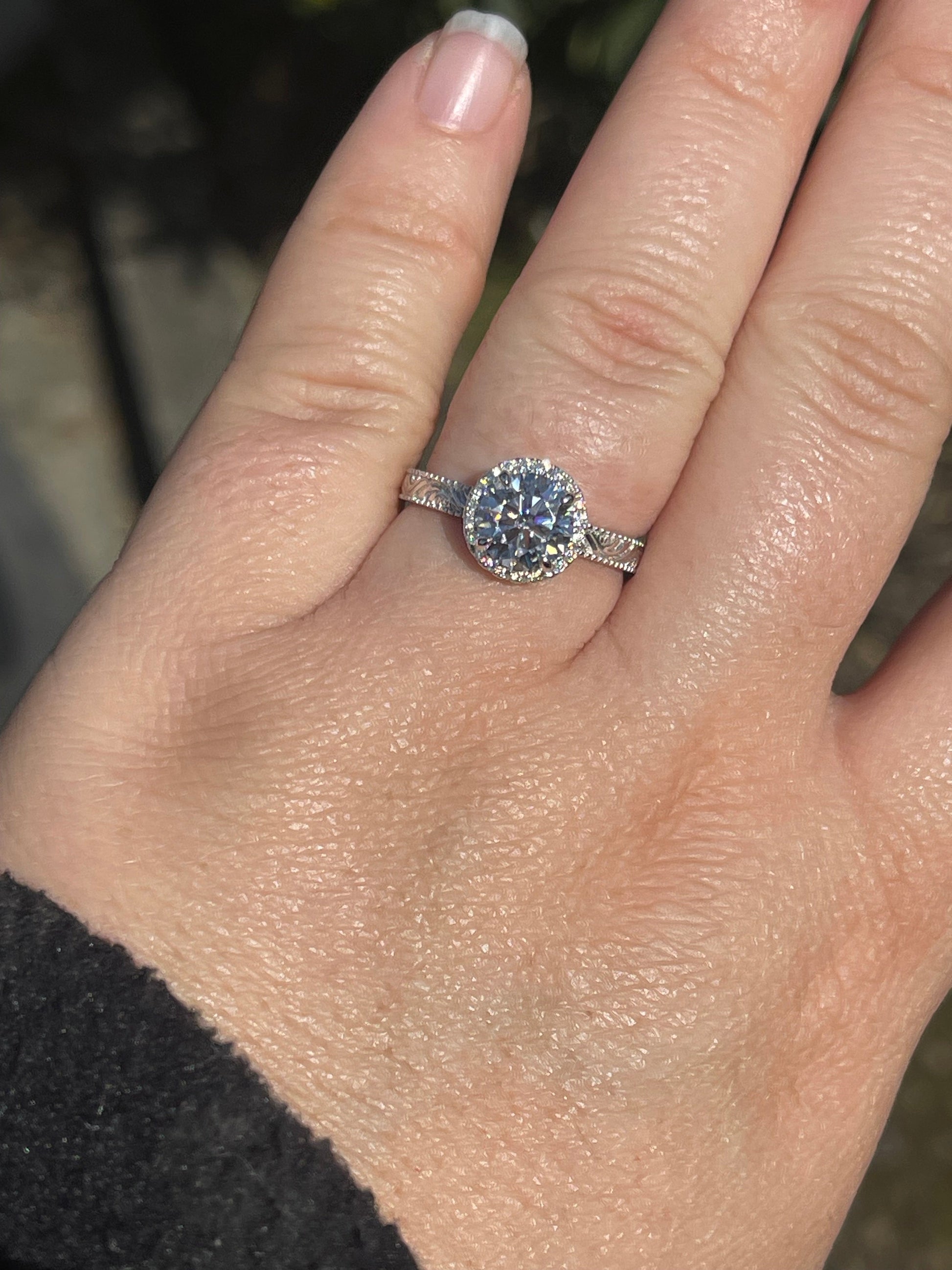 Center Stone: 2ct Moissanite 8mm (GRA Certified)