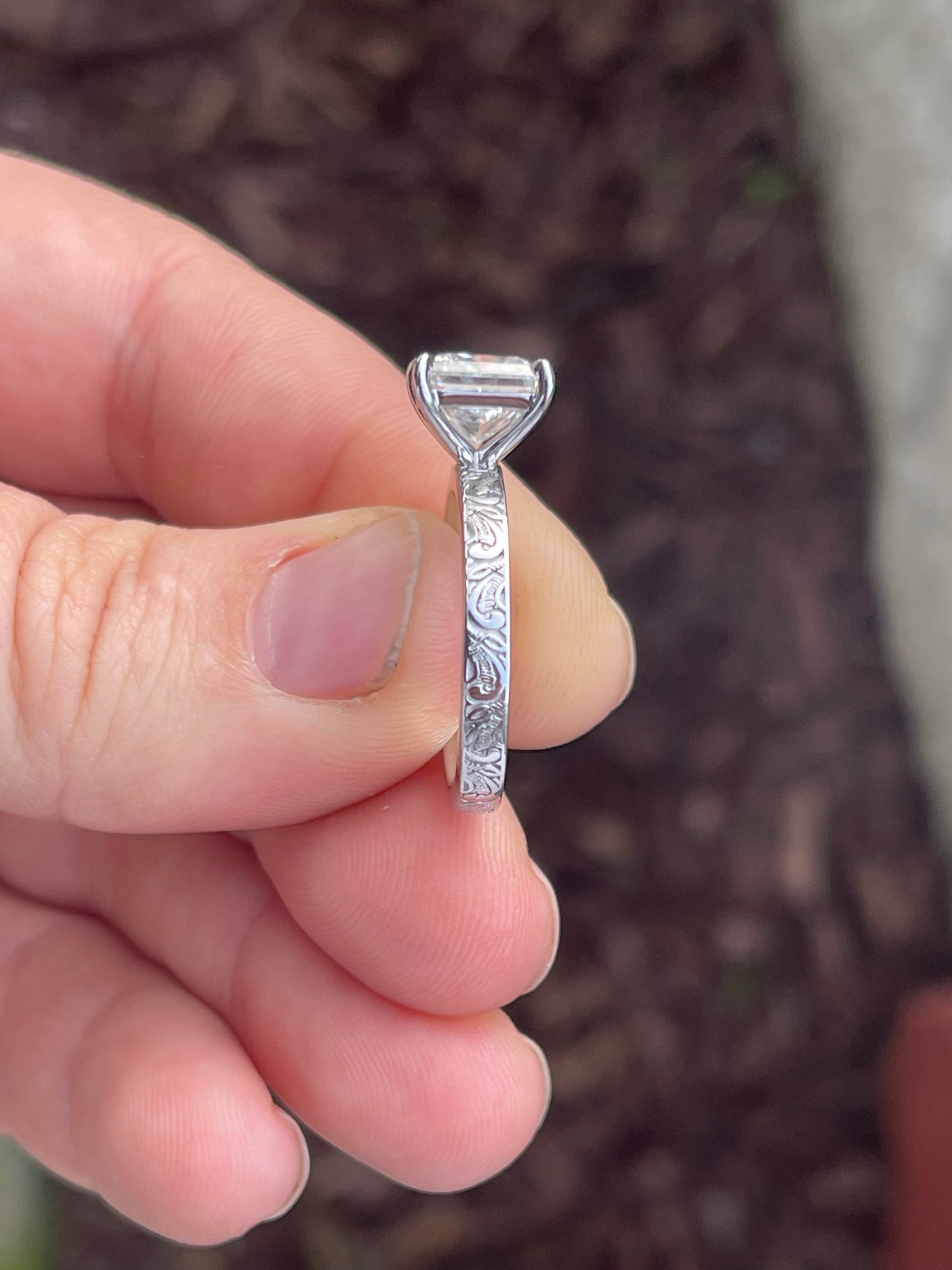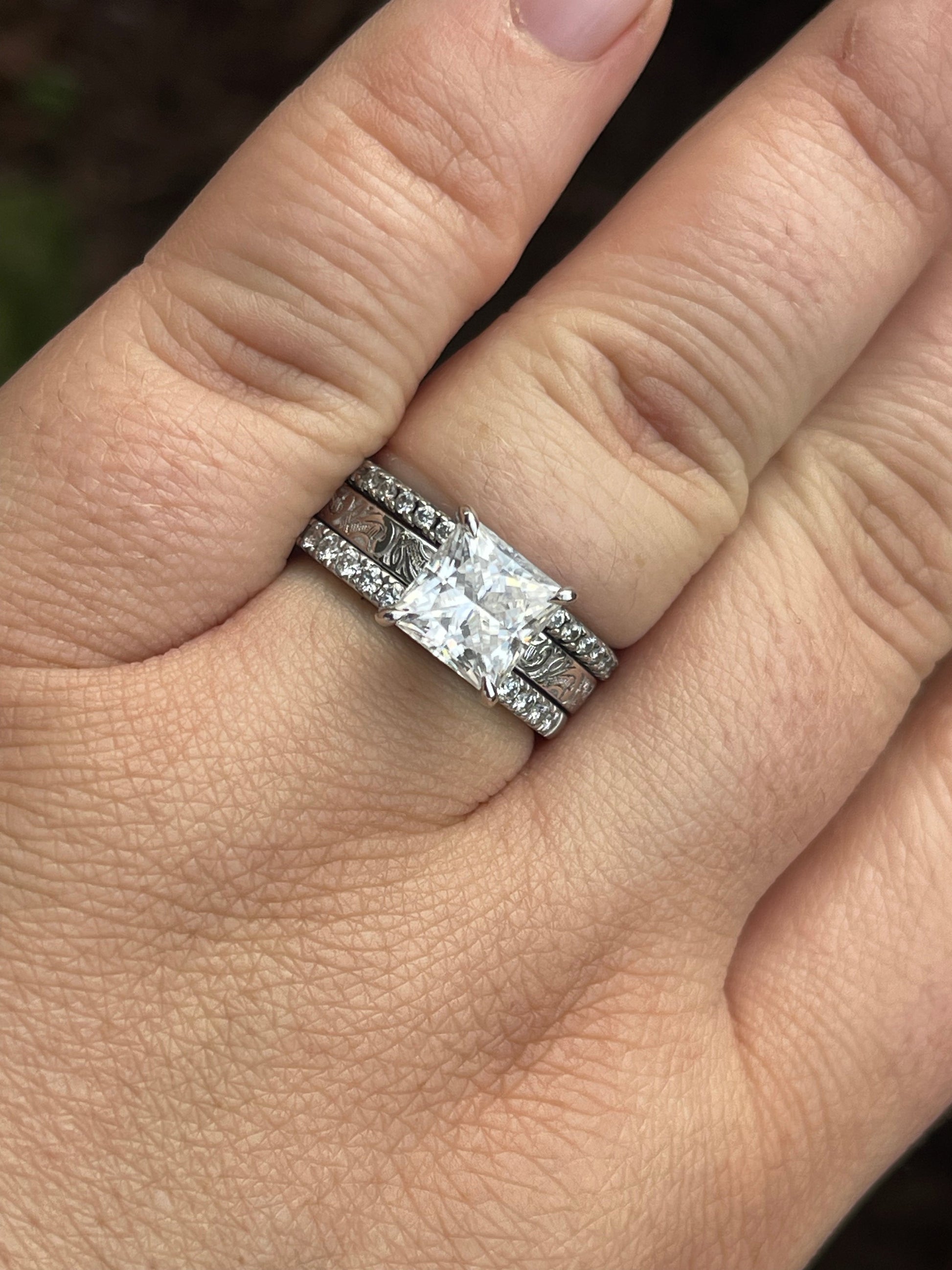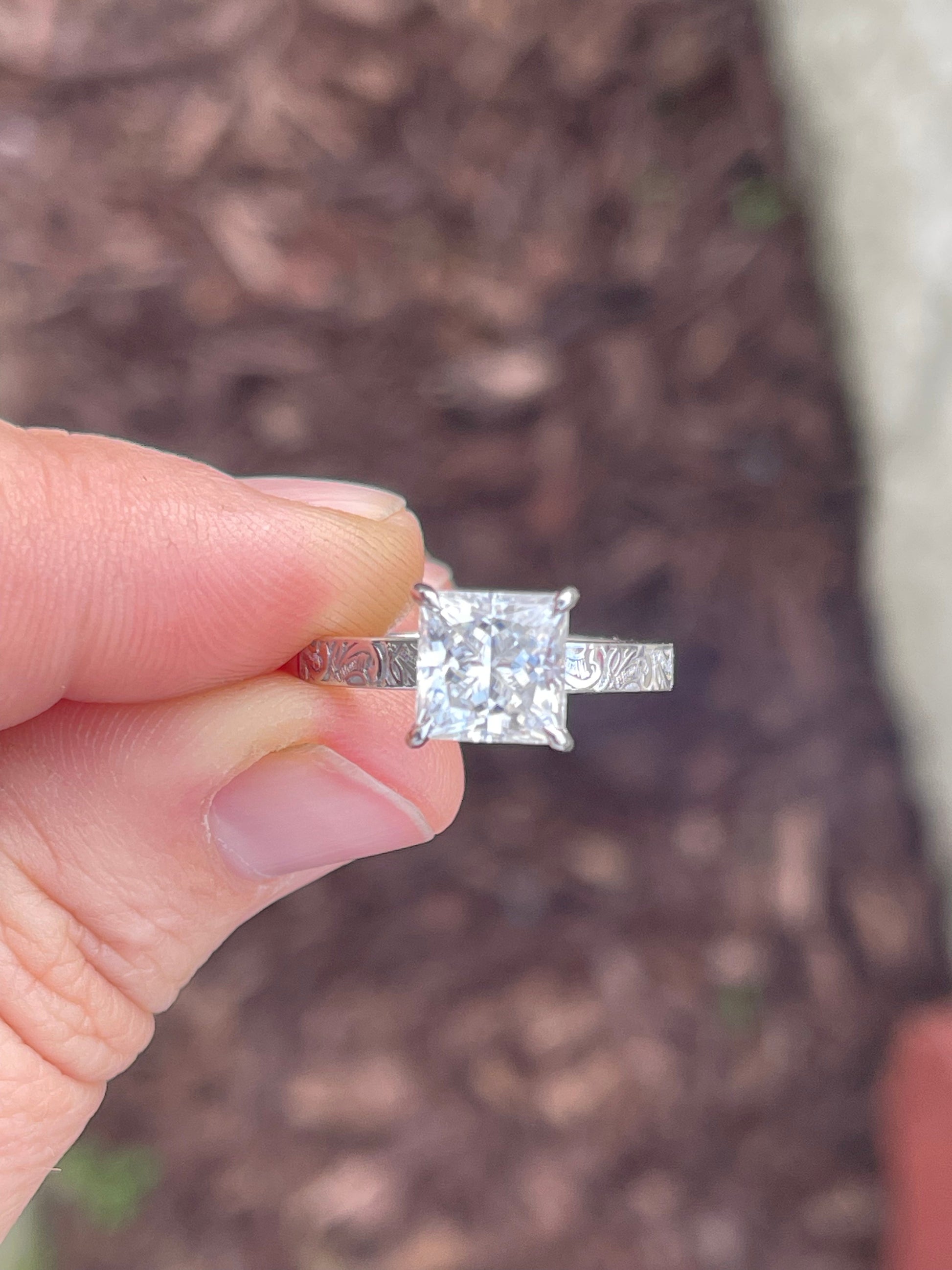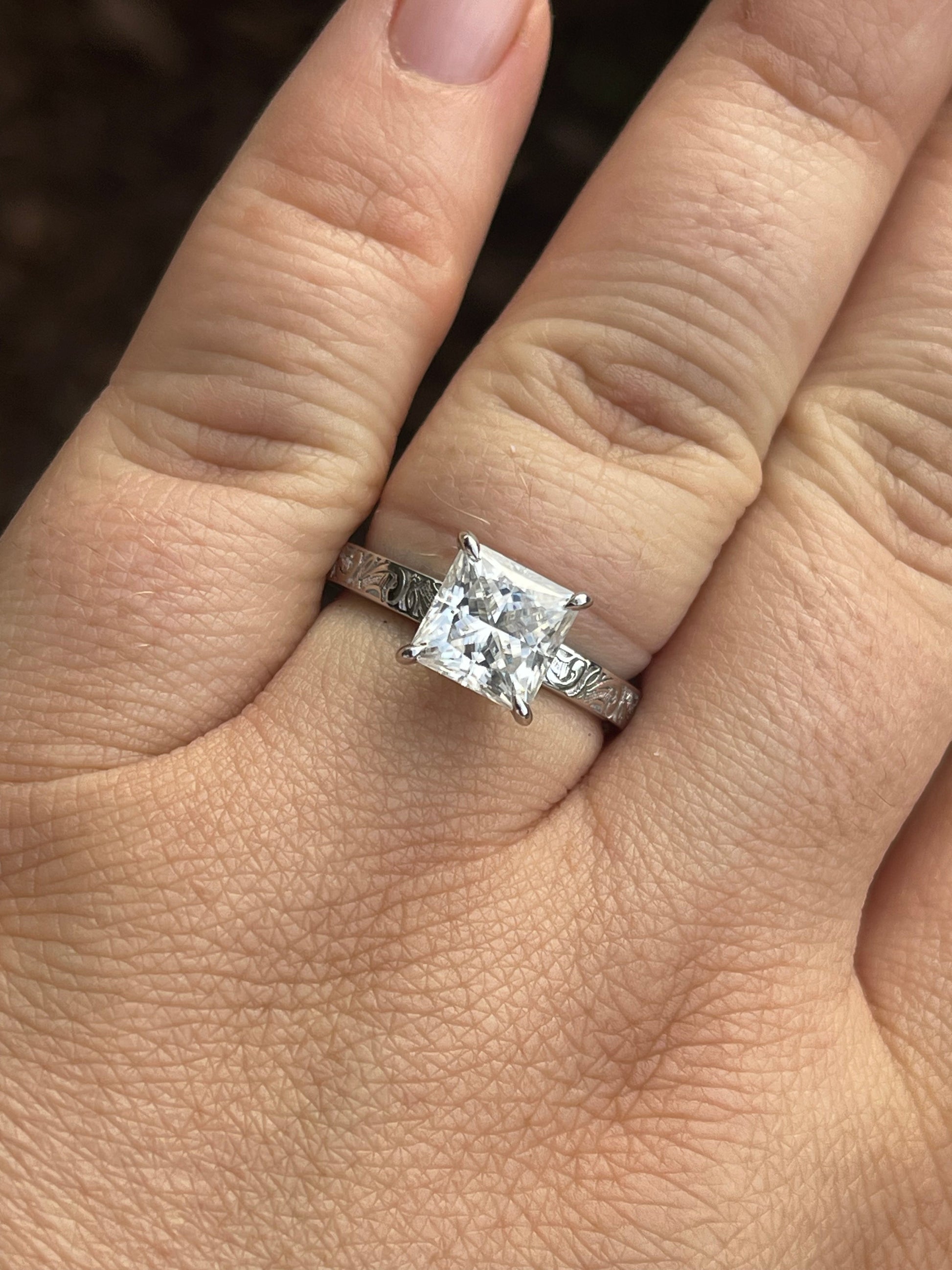 3ct Princess Cut Moissanite 8*8mm with 3mm Pattern Band