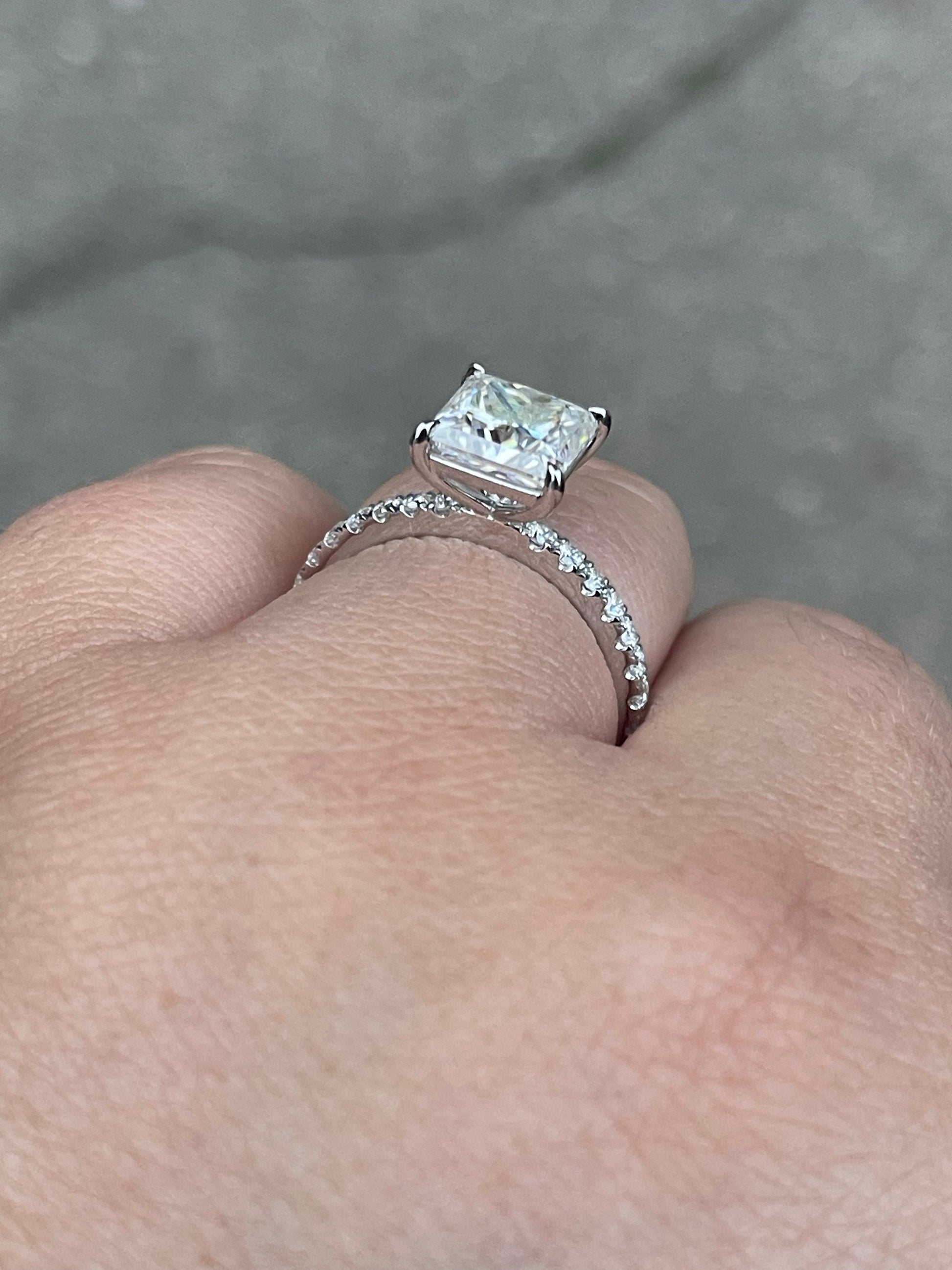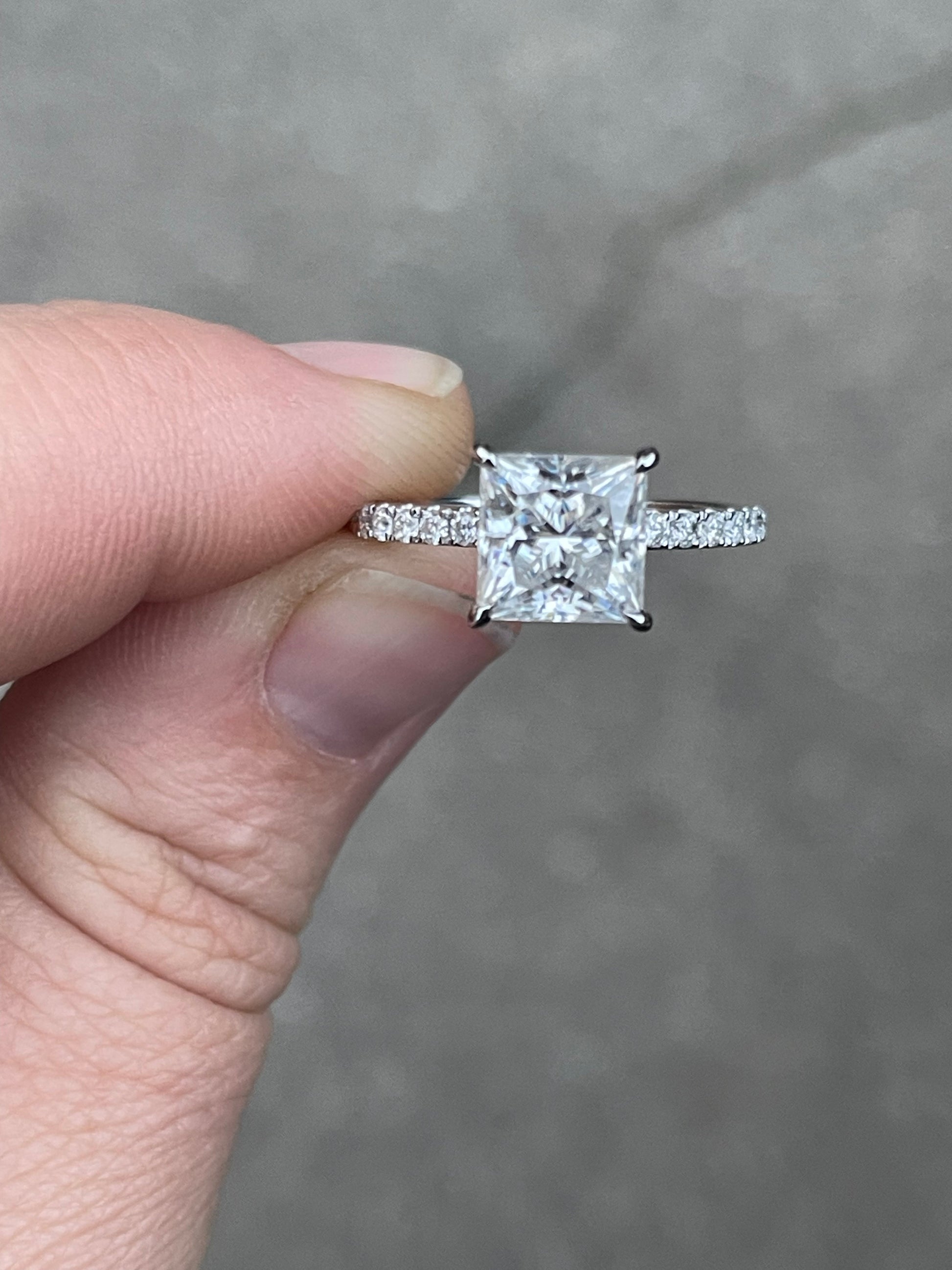 3Ct Princess Cut Moissanite 8*8mm with Moissanite Pave Setting 2mm Band
