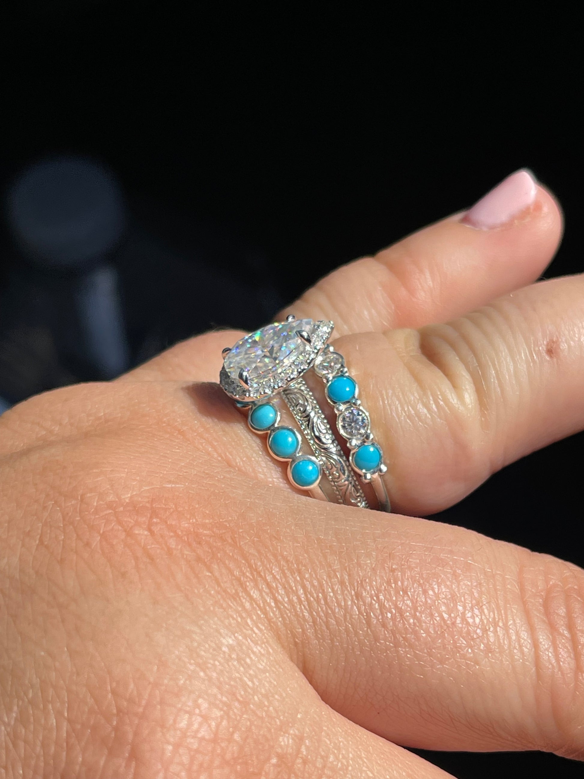 Stone: 3MM Turquoise Stones and 3mm Moissanite
