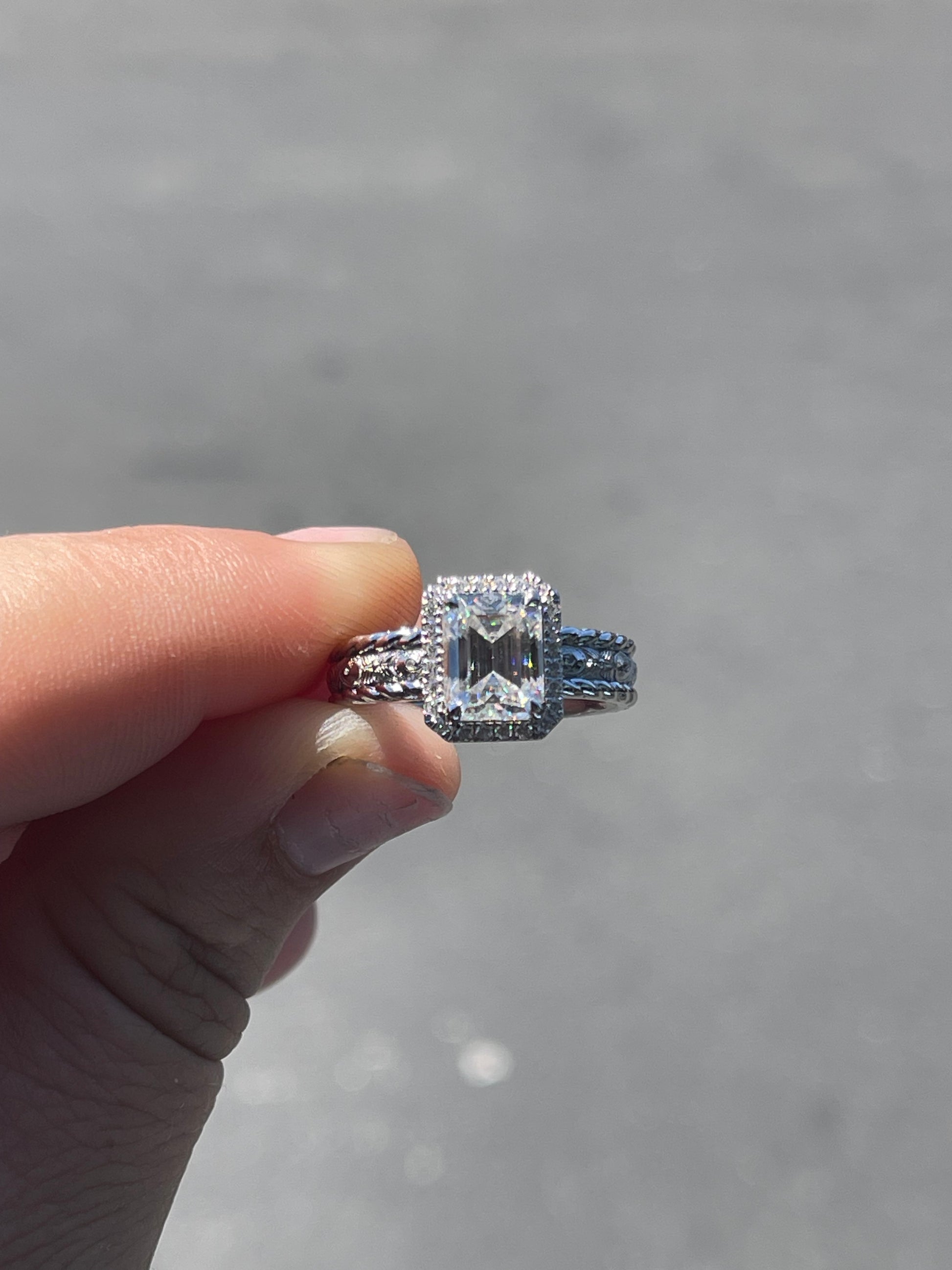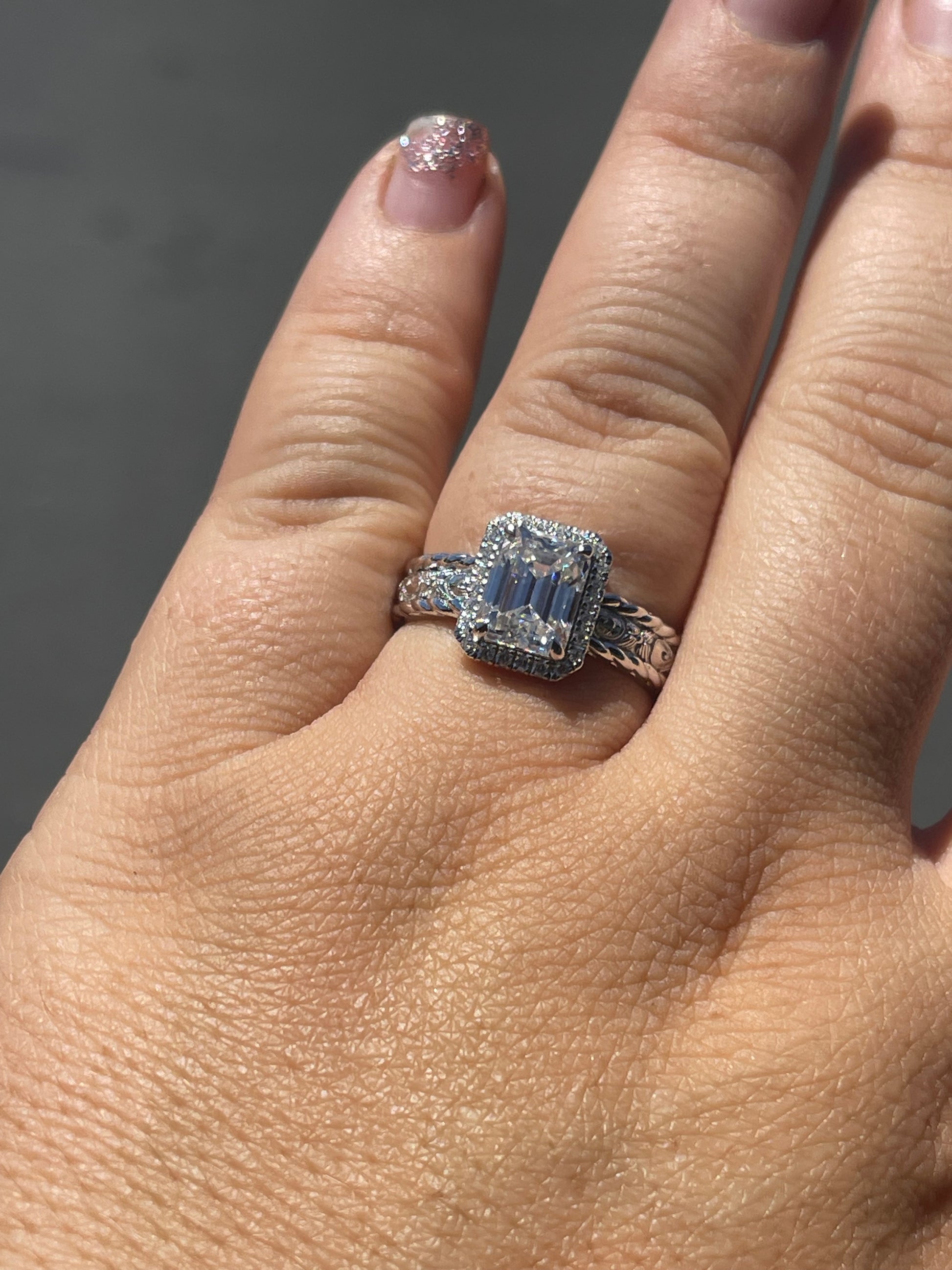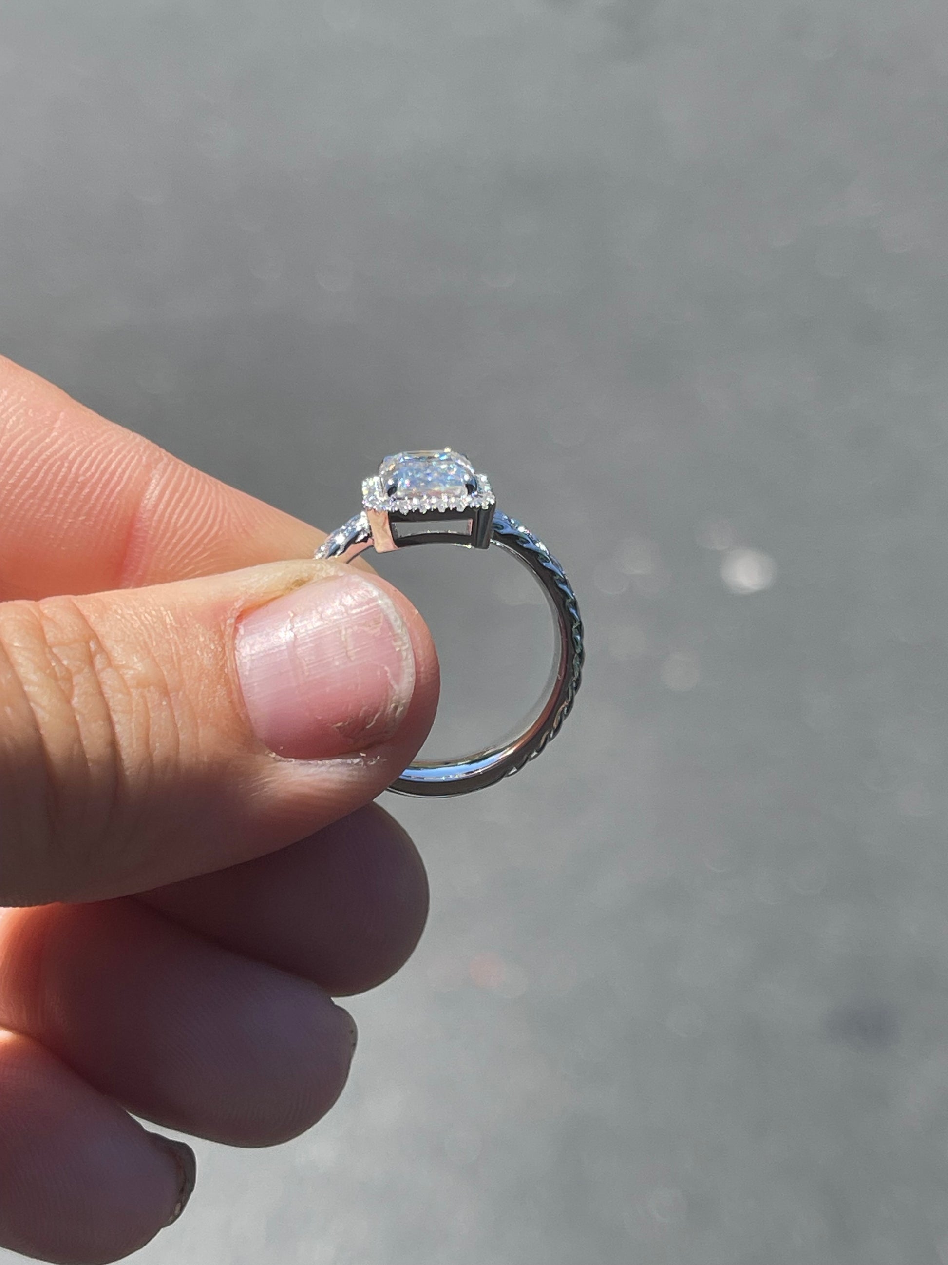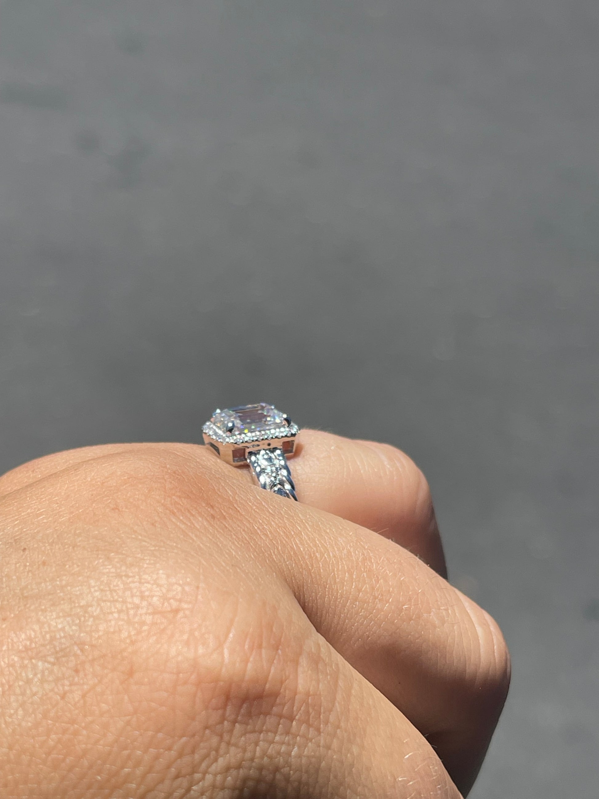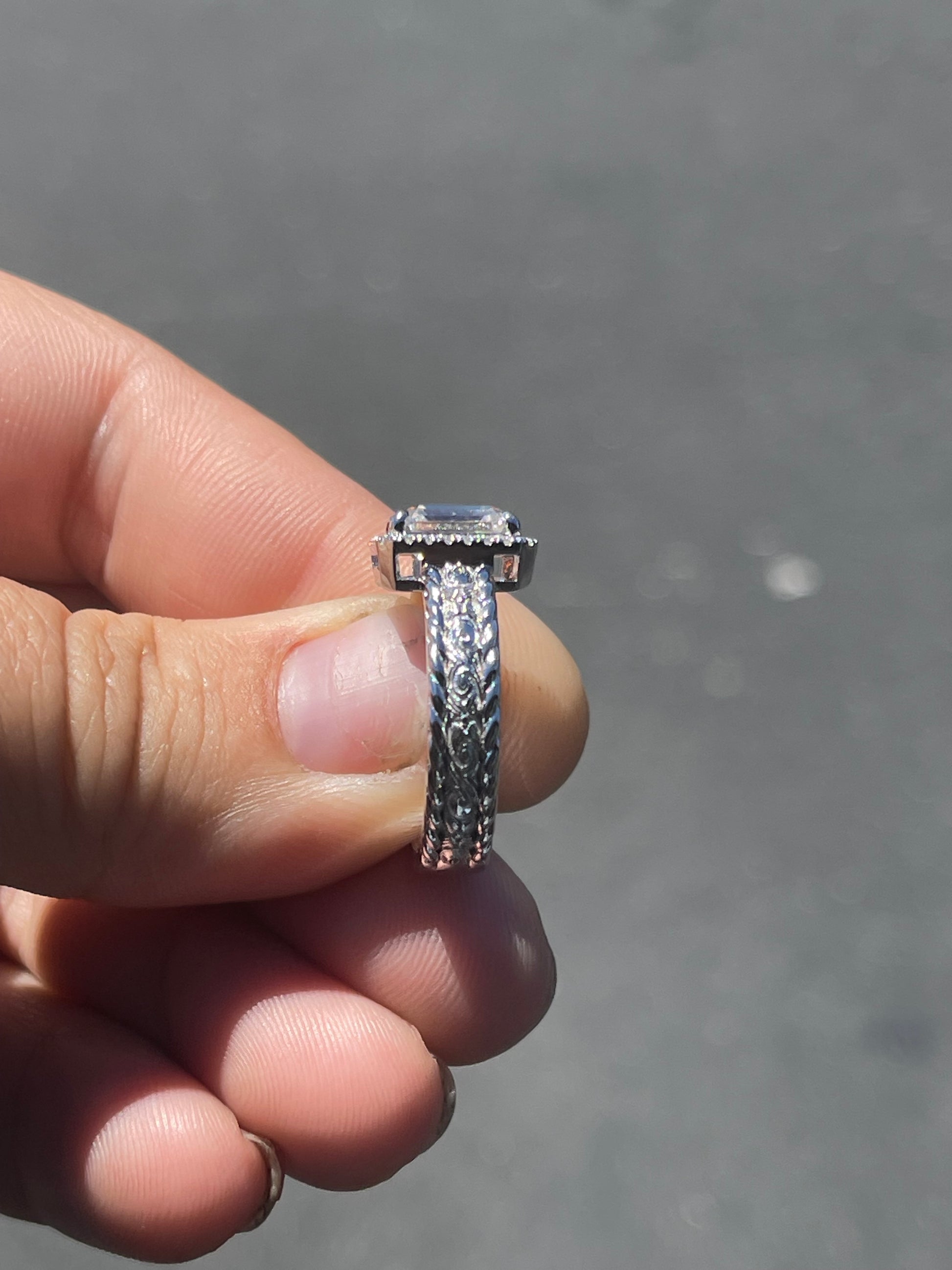 3ct Princess Cut Moissanite with Halo and 5mm Pave Pattern Band