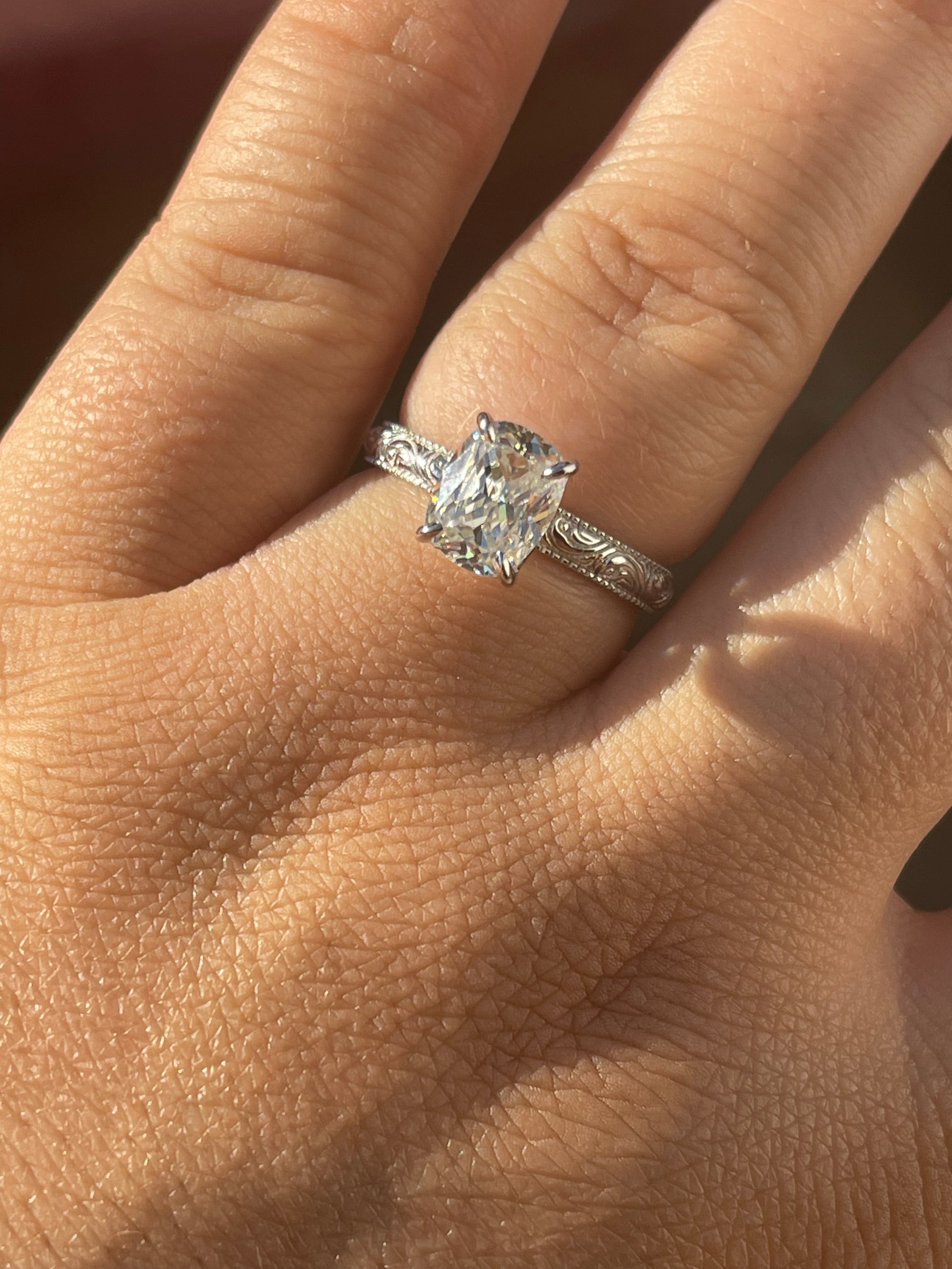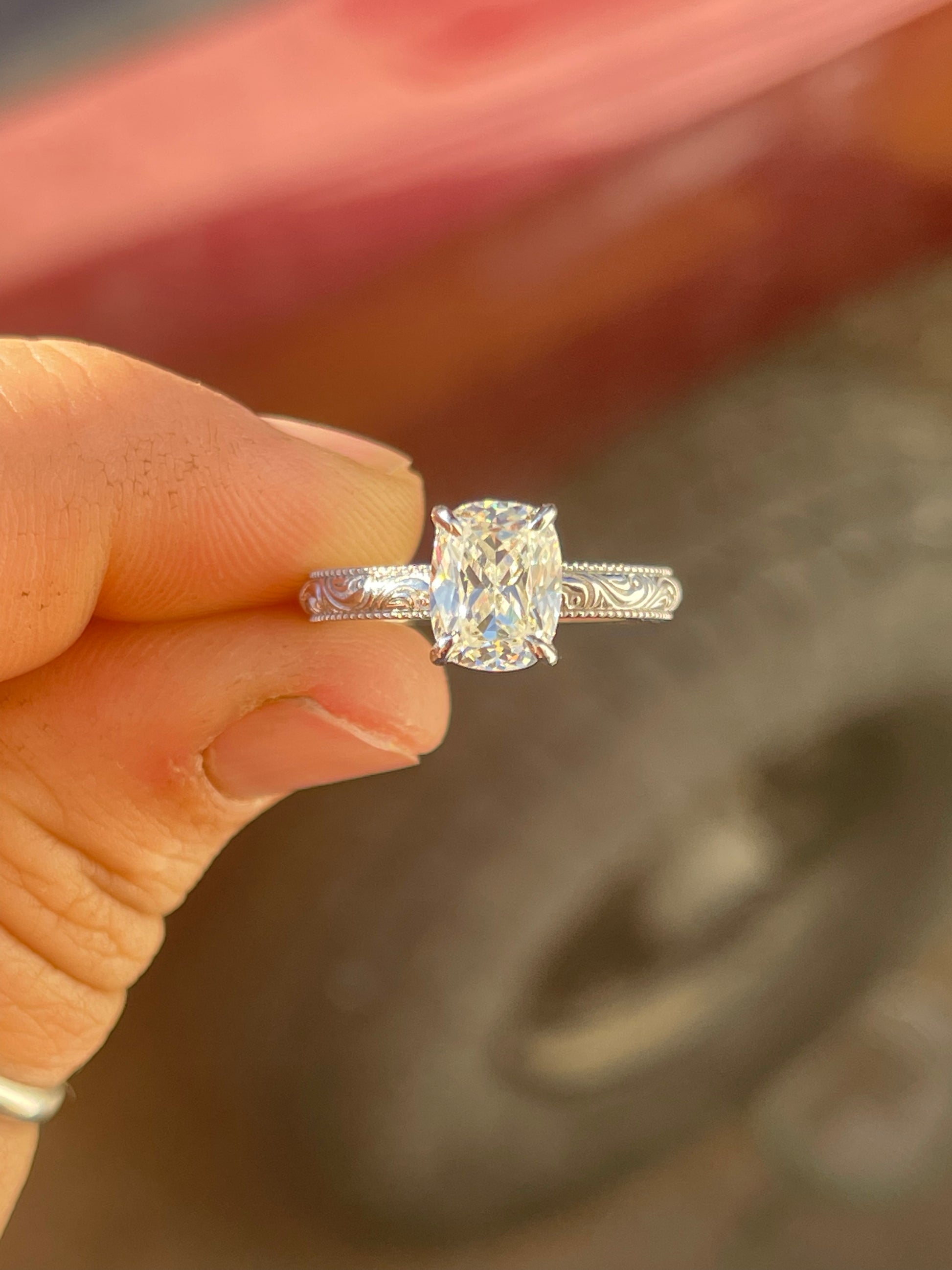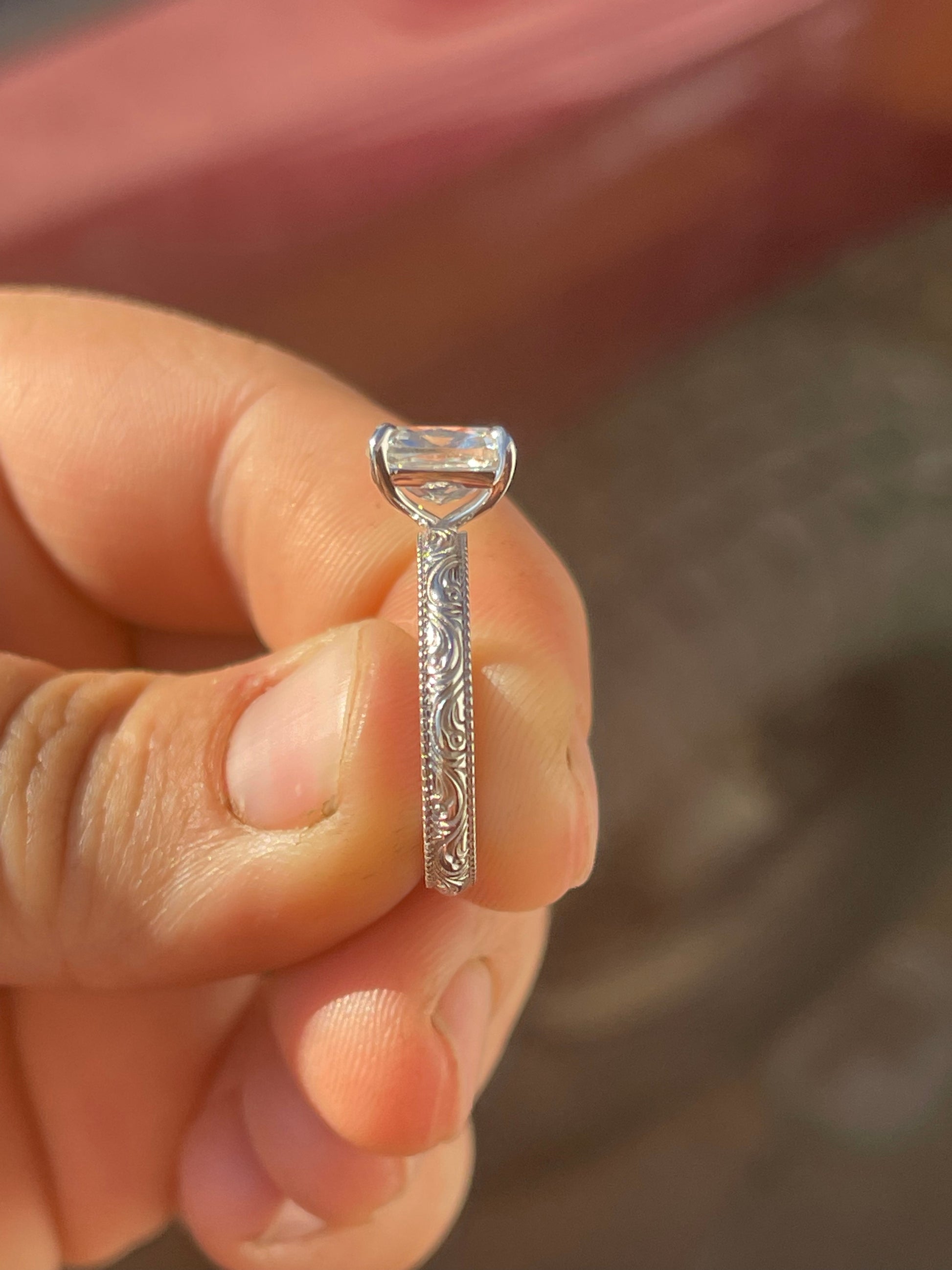 3ct Elongated Cushion Cut Moissanite 7*9mm with 3mm Pattern Band