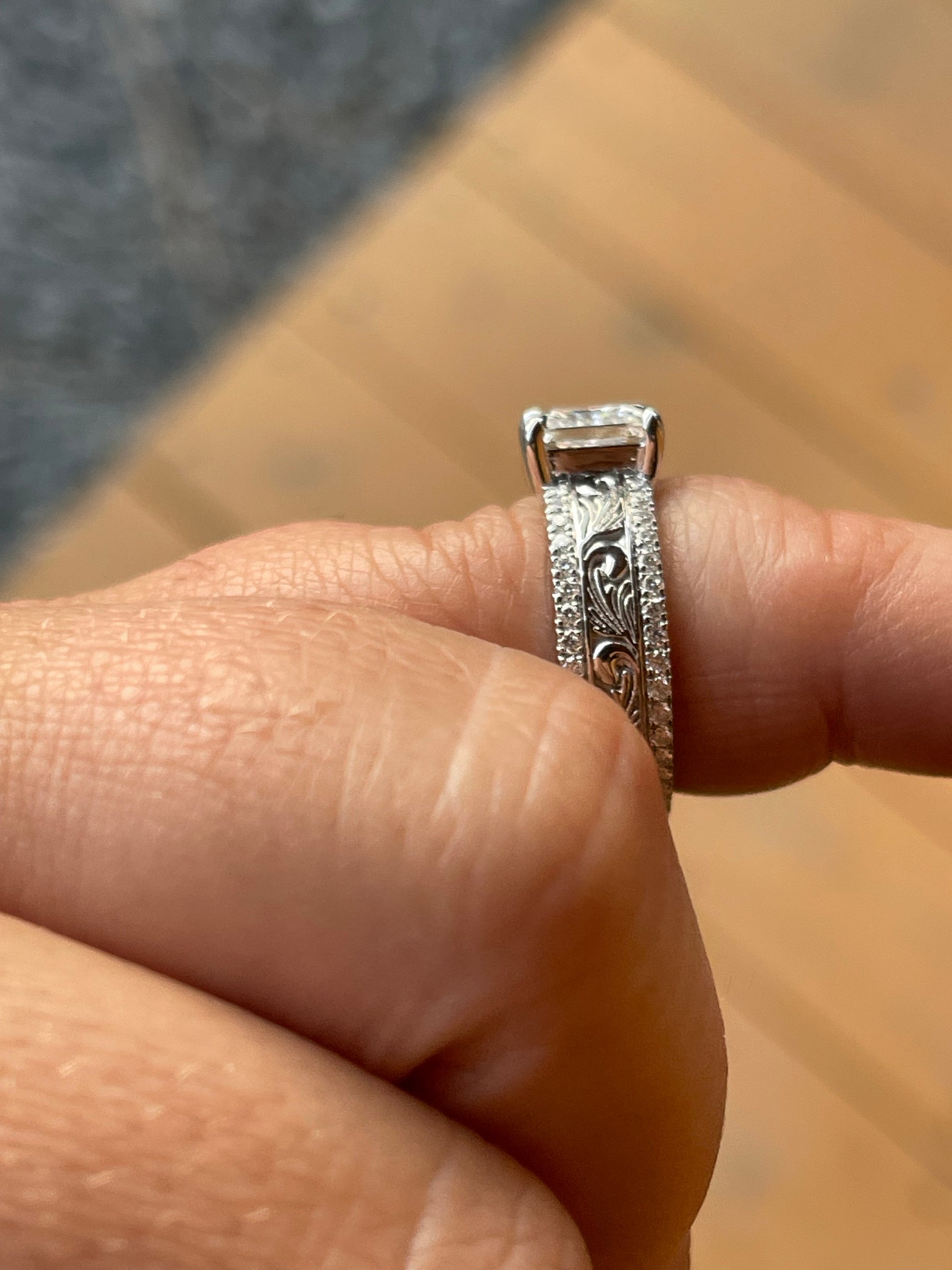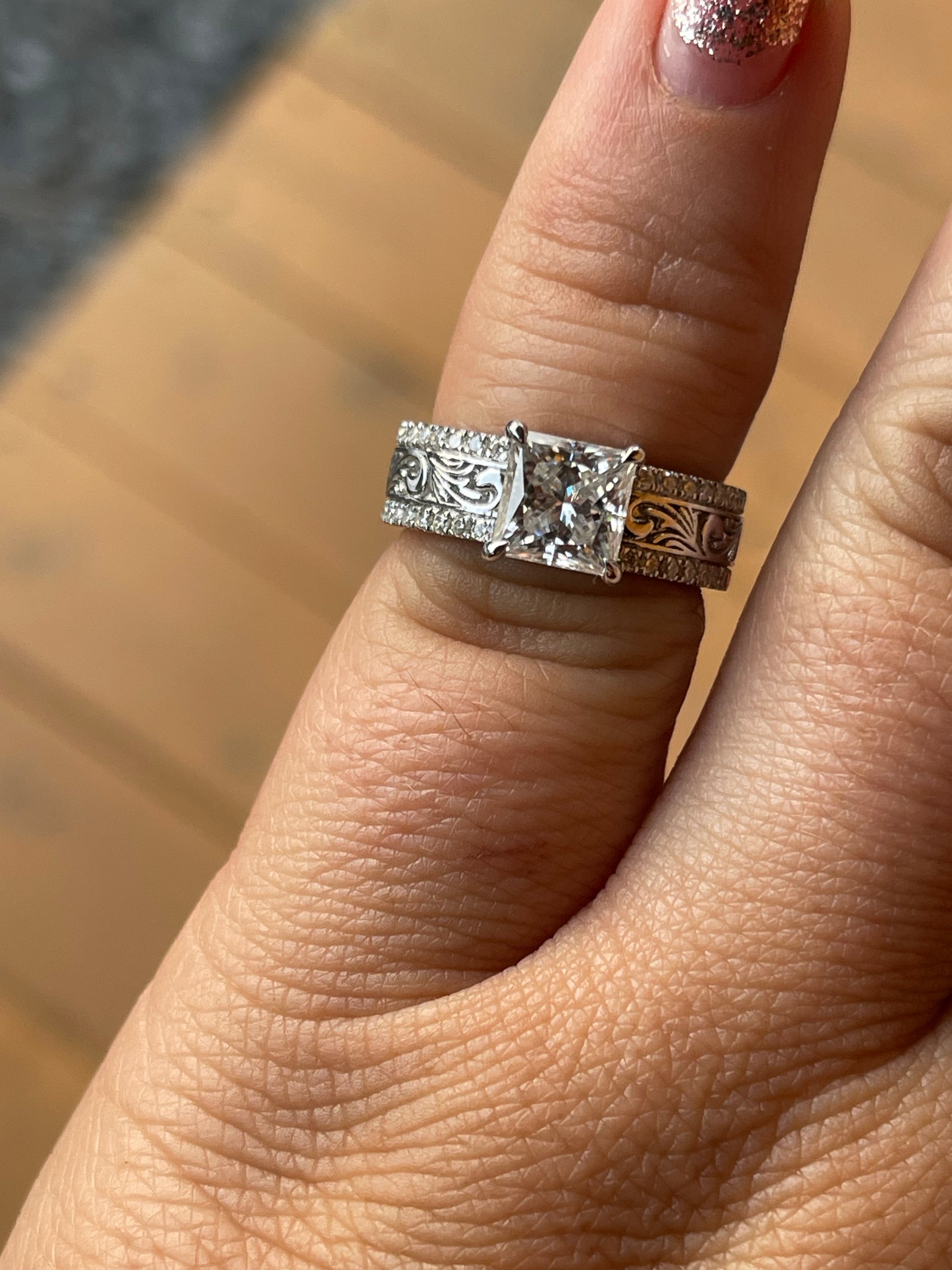 1.5ct Princess Cut Lab Diamond 6.5mm*6.5mm with 6.6mm to 5mm Tapered Pattern Band with Pave Lab Diamond Set On Band