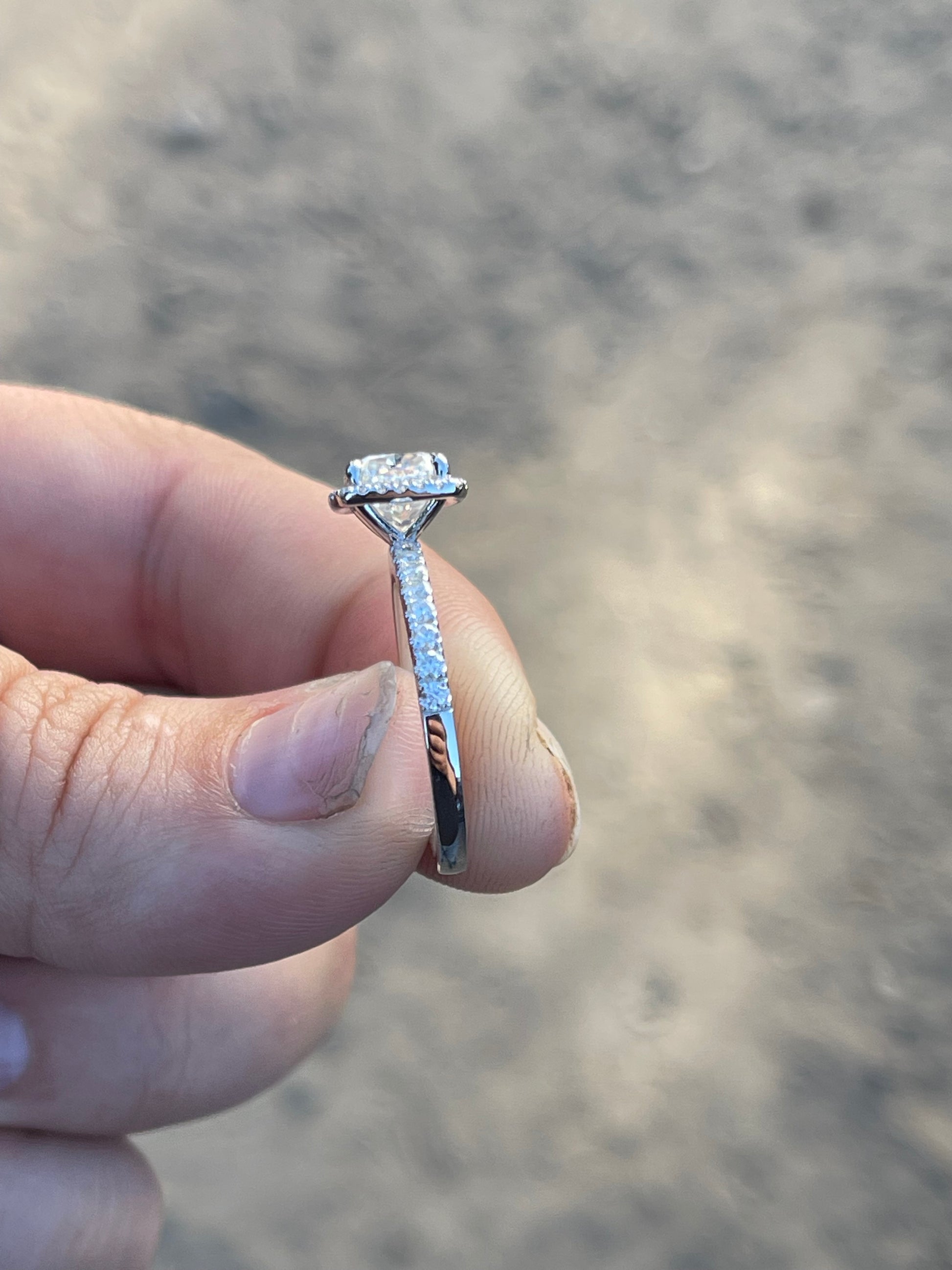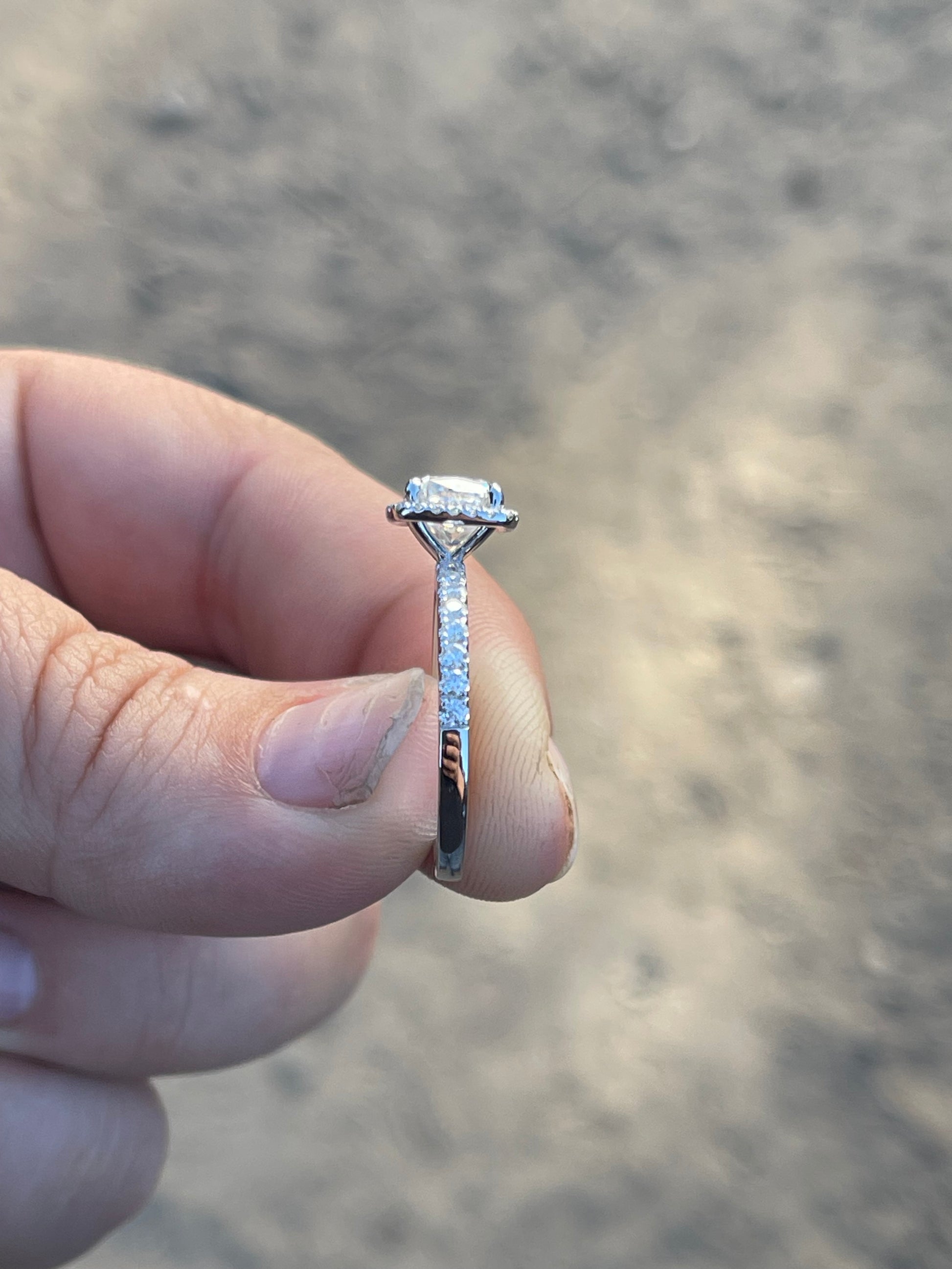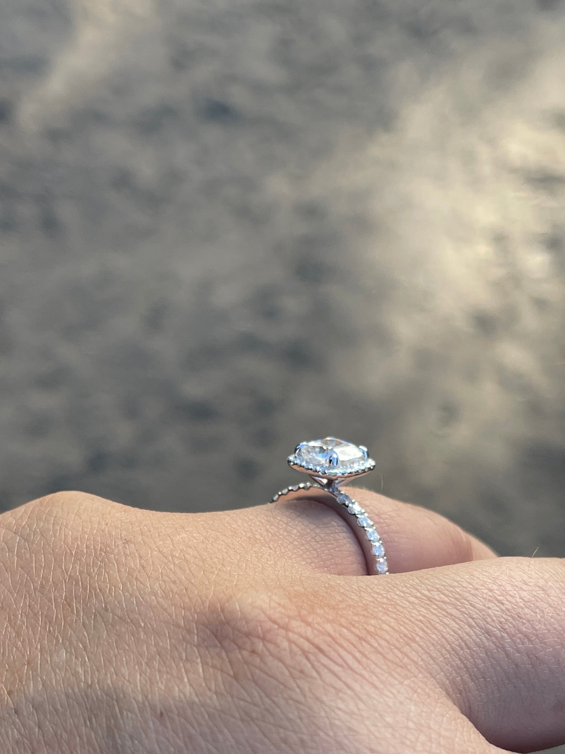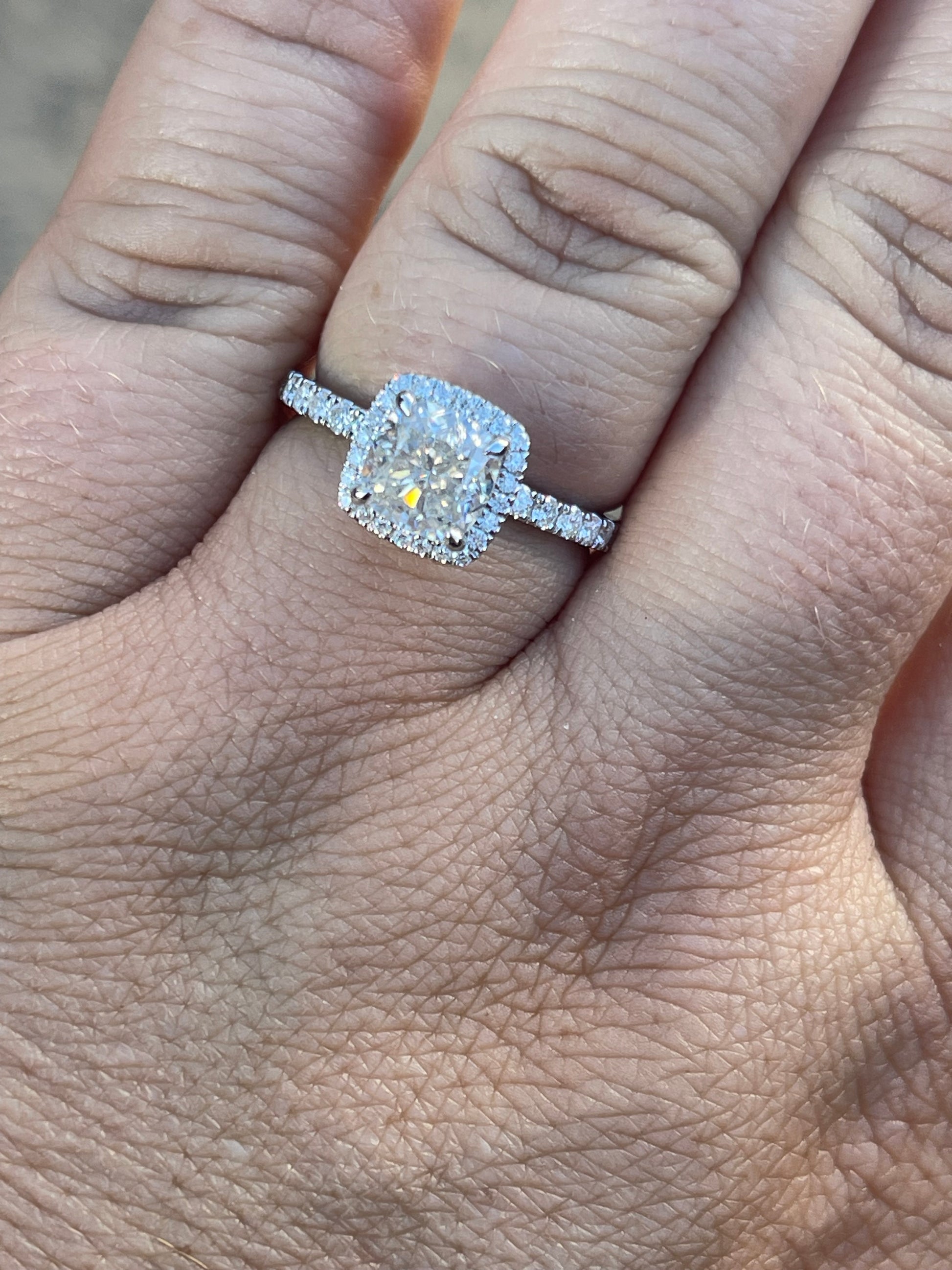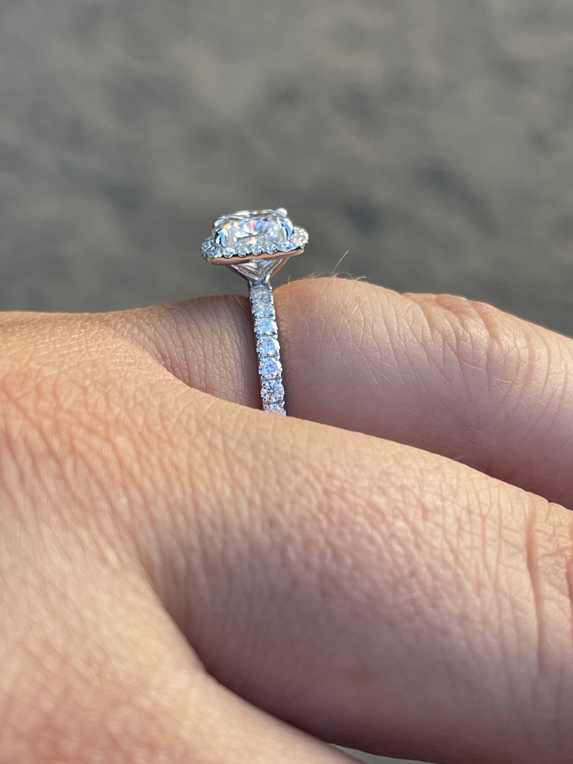 2ct Cushion Cut Moissaite with Halo Moissanite Stones on 2mm Pave Band