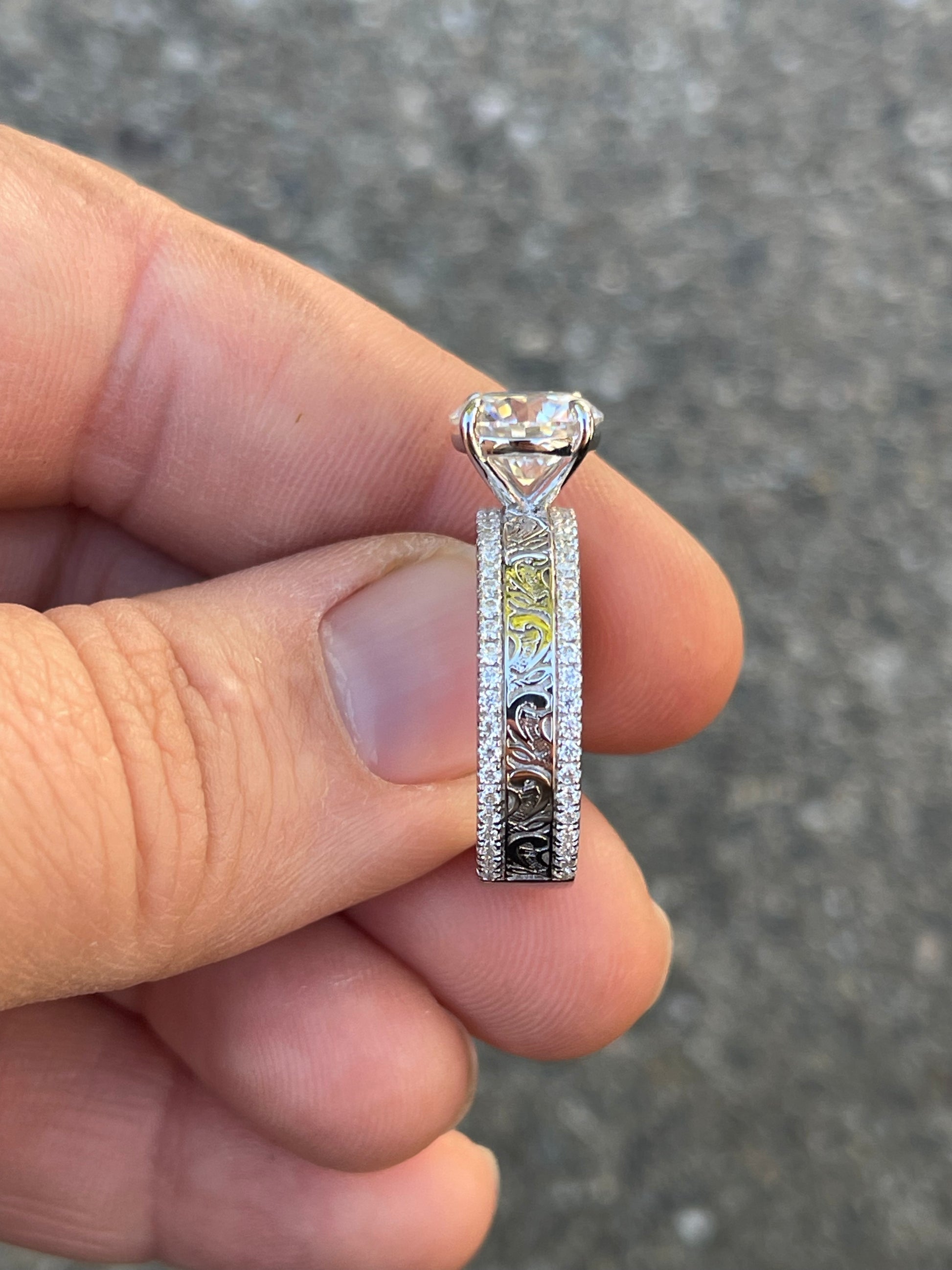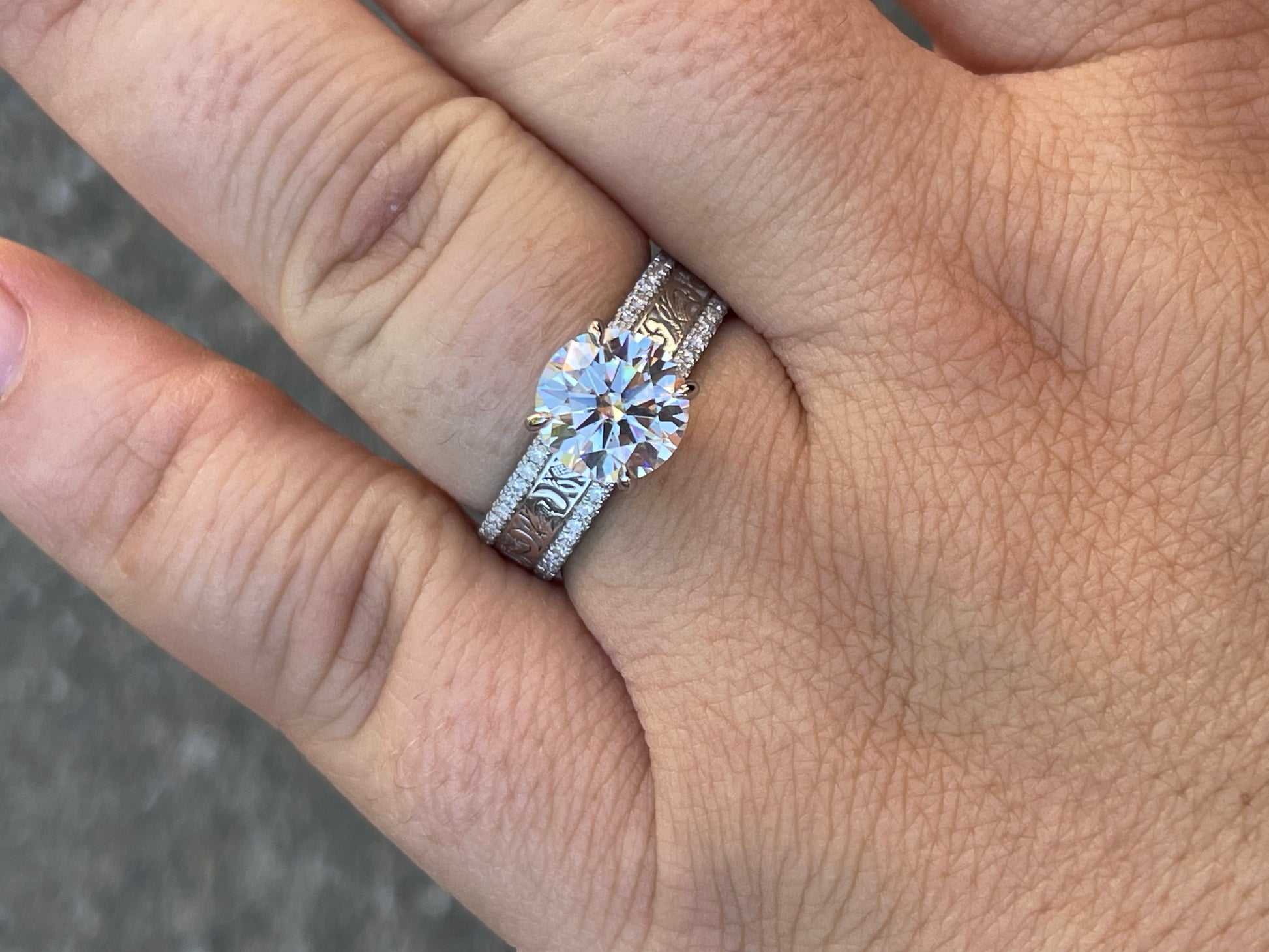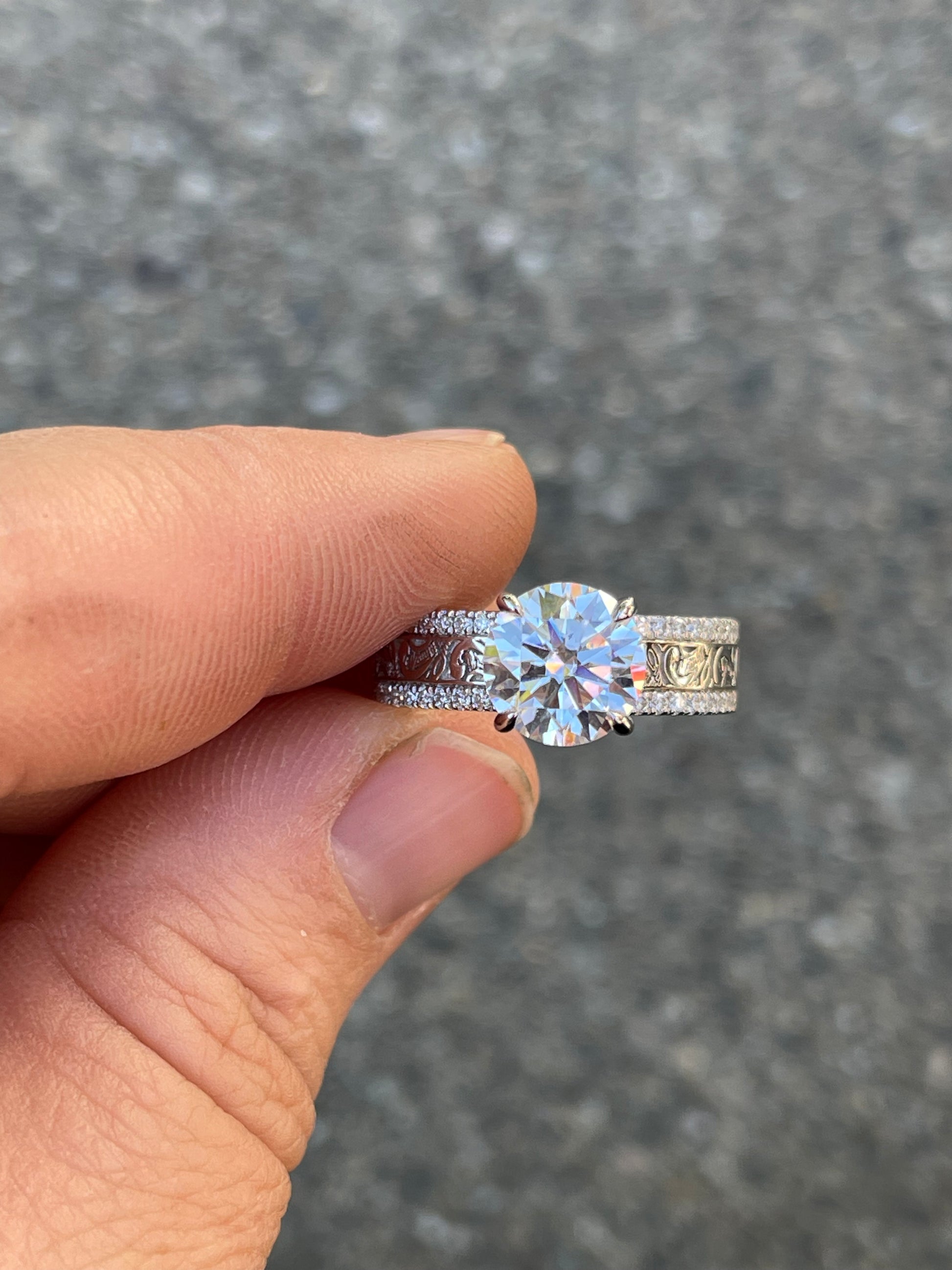 3ct Round Cut Moissanite 9mm with 5.8mm Pattern Band