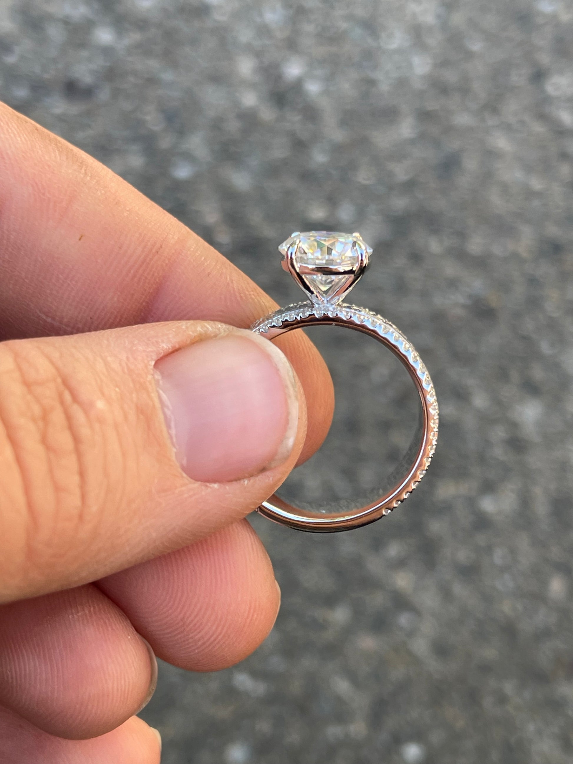 Center Stone: 3ct Moissanite 9mm (GRA Certified)
