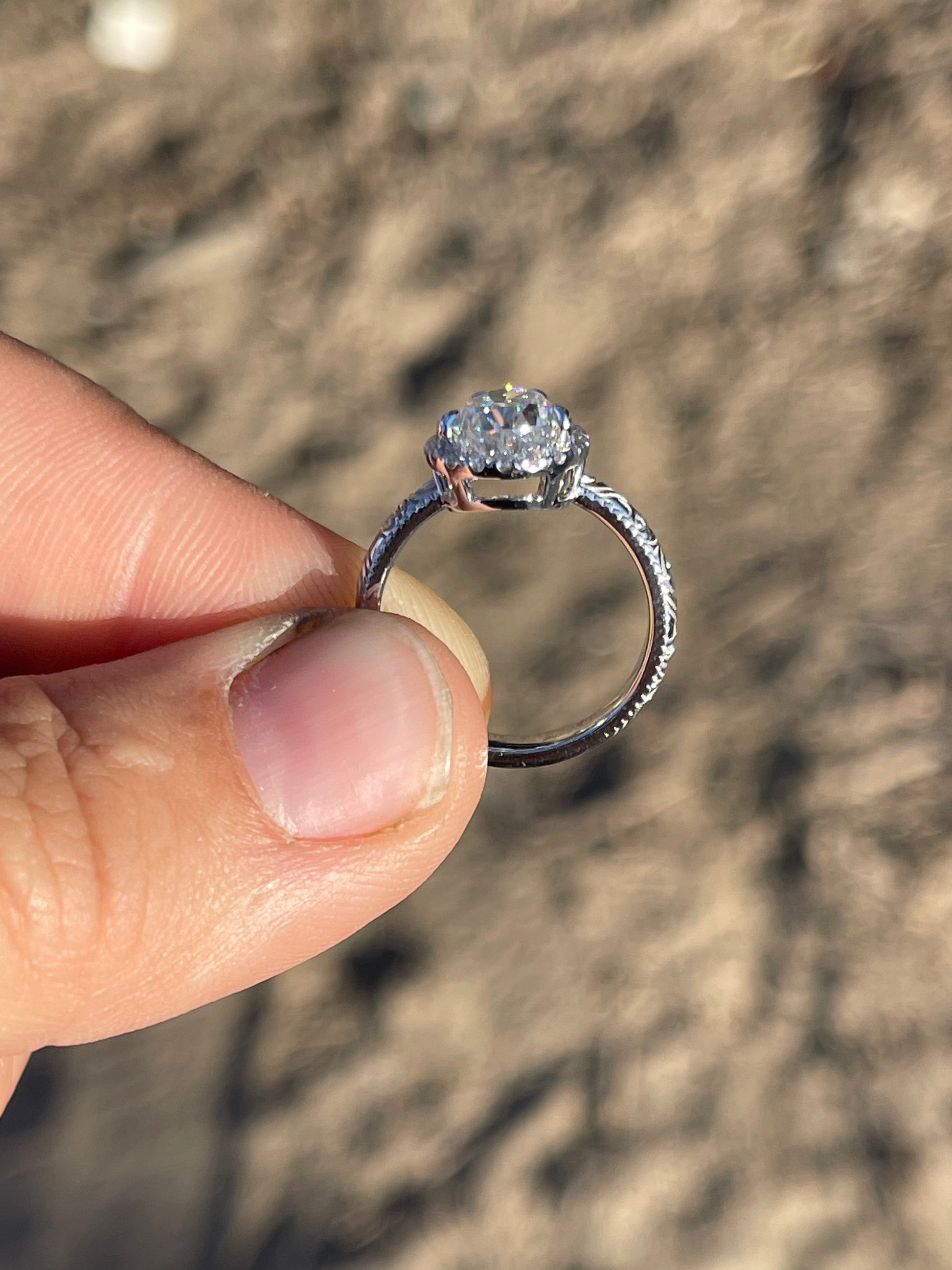 Center Stone: 3ct Moissanite 7*10mm (GRA Certified)