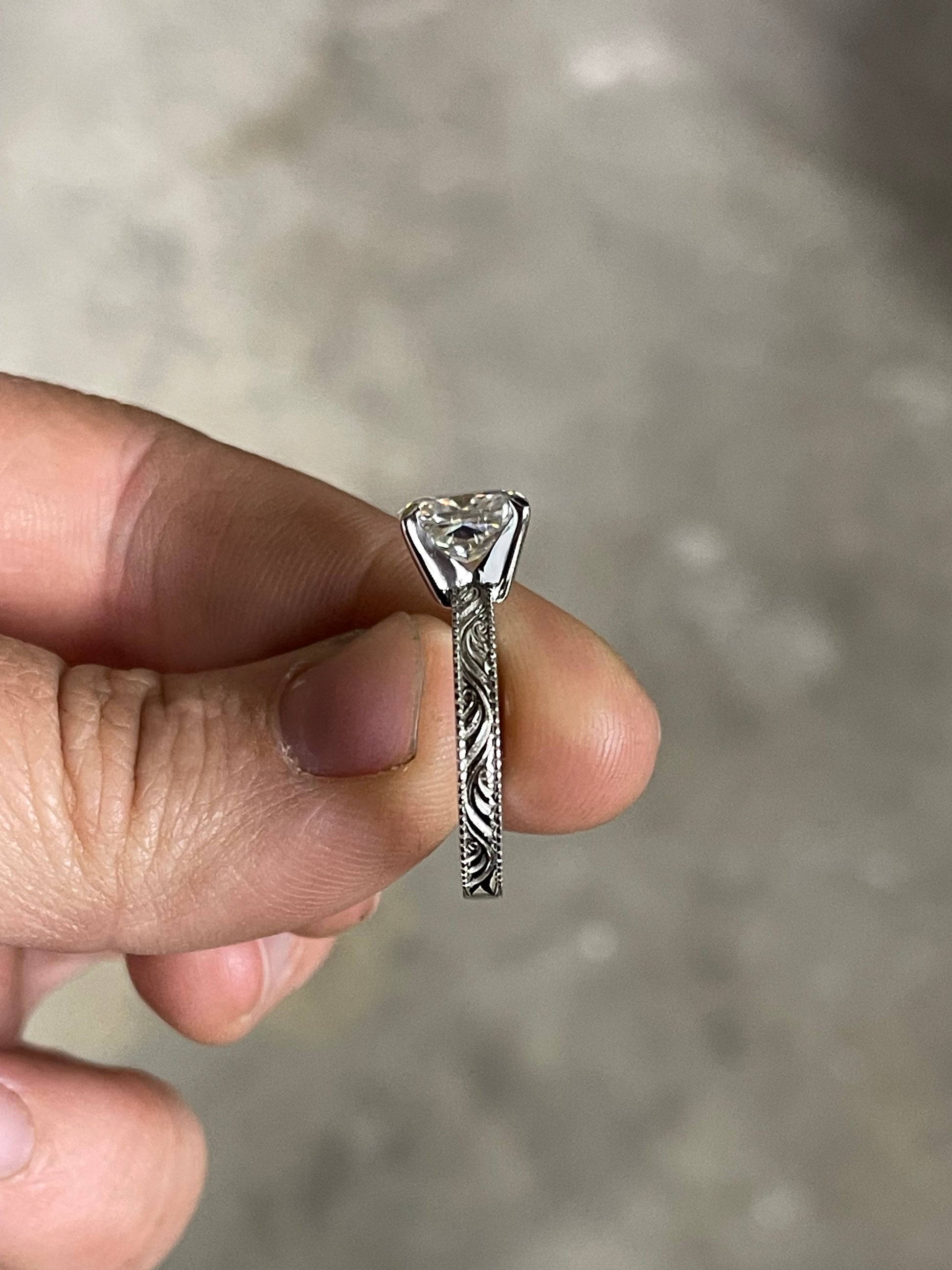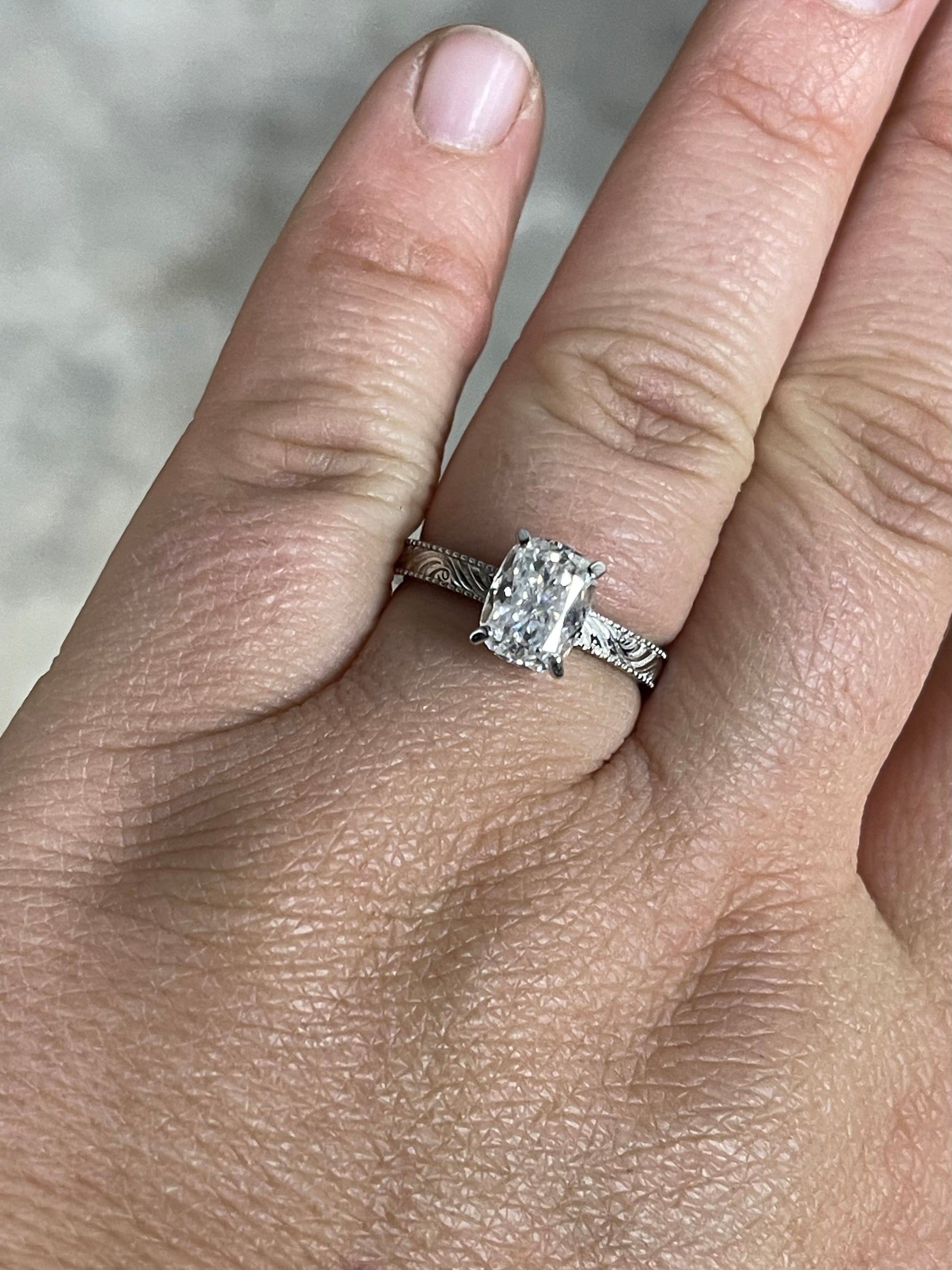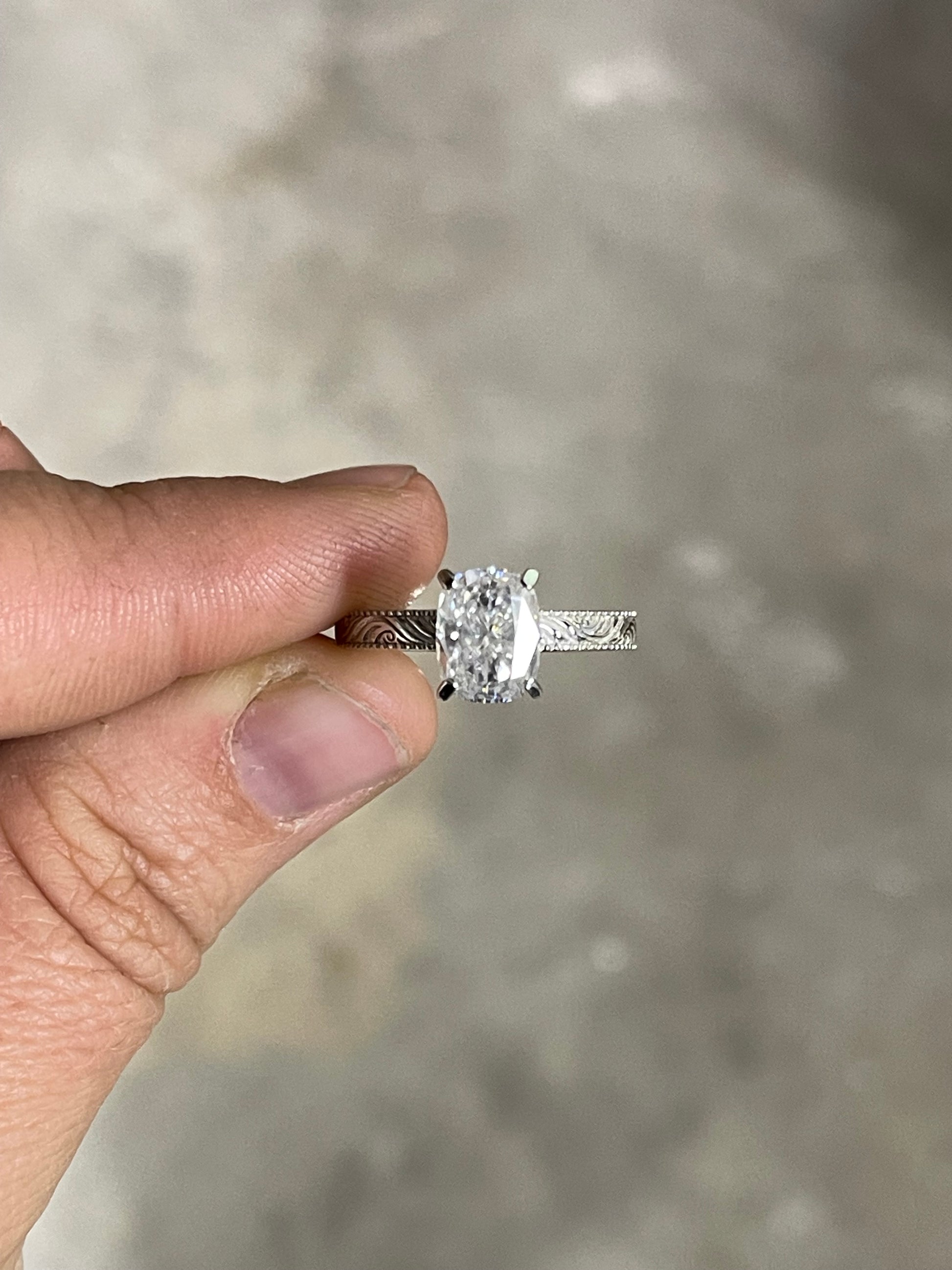 3ct Elongated Cushion Cut Lab Diamond with 3mm Pattern Band