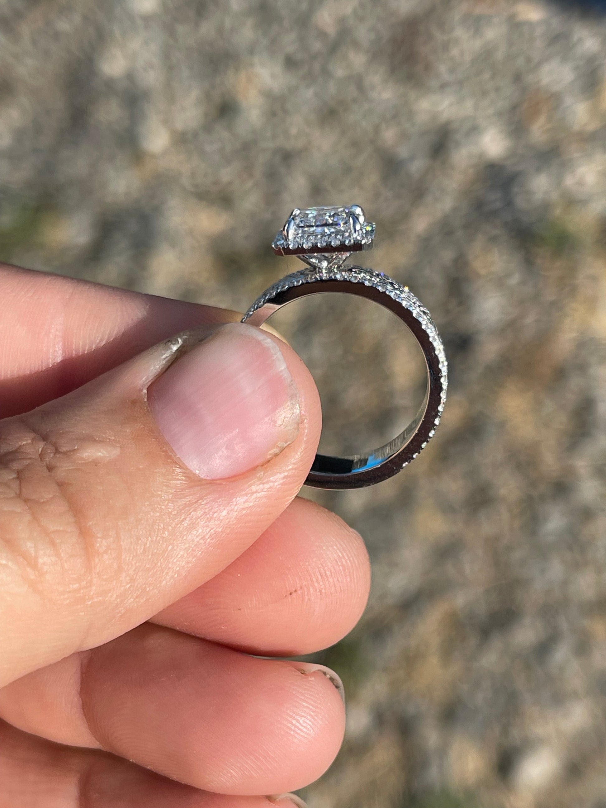 3ct Princess Cut Moissanite with Halo and 5mm Pave Pattern Band
