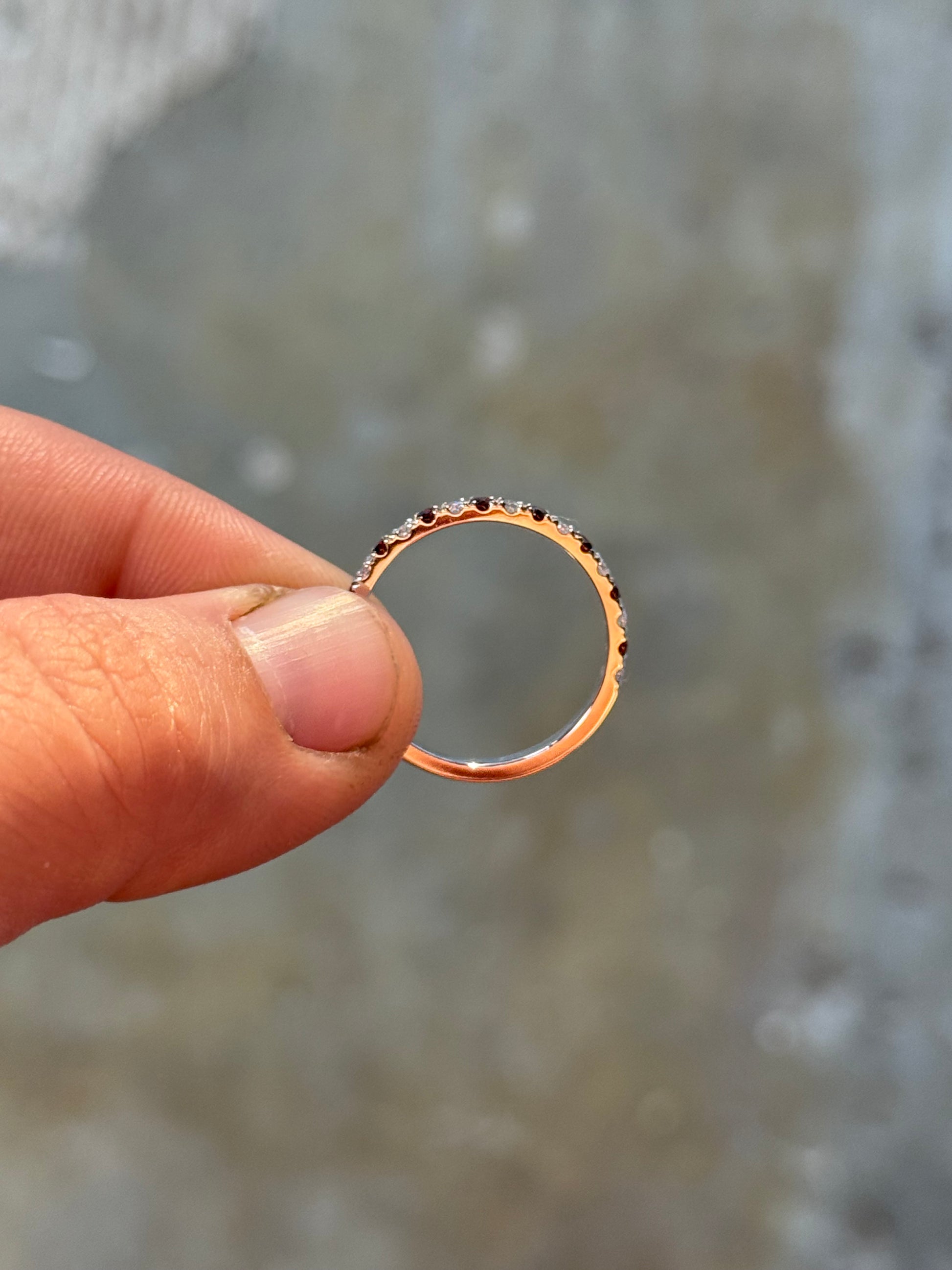 .48CTW Moissanite and Natural Garnet Stones Alternating Ring in 10K and 14K Solid White, Yellow or Rose Gold on 2.2mm Band