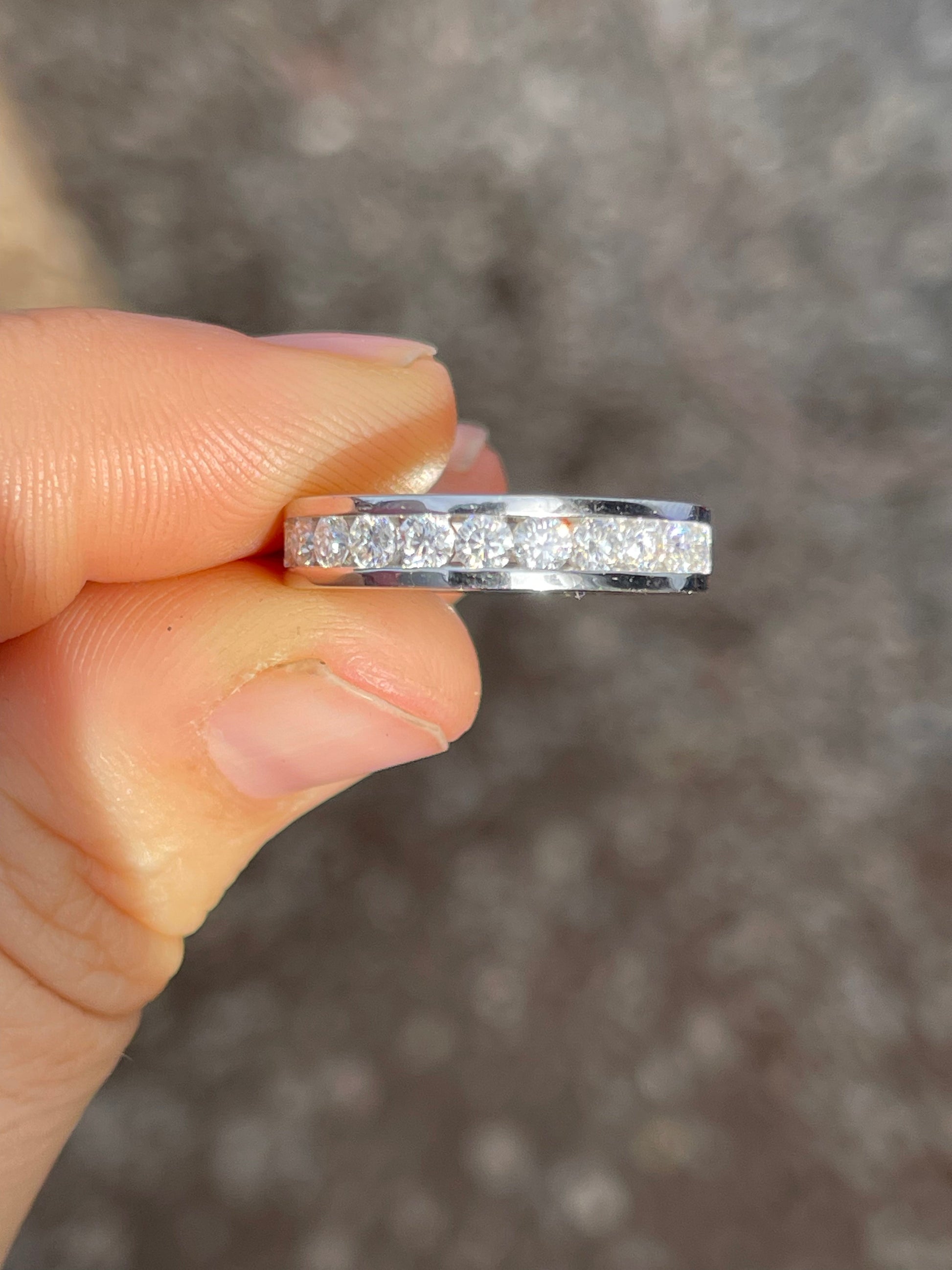 5MM Wedding Band with 3mm Lab Diamonds in 10K and 14K Solid Yellow, Rose or White Gold.